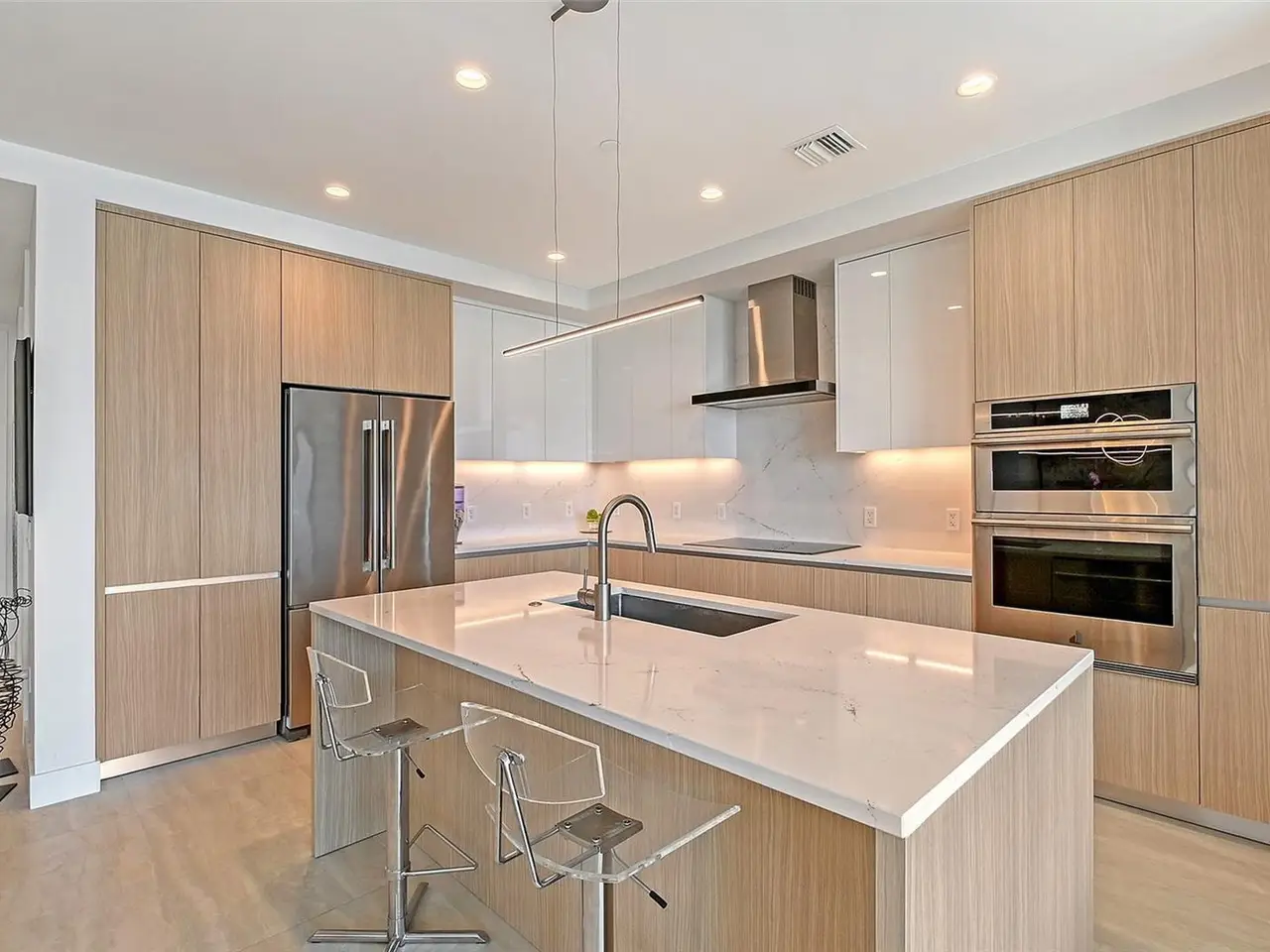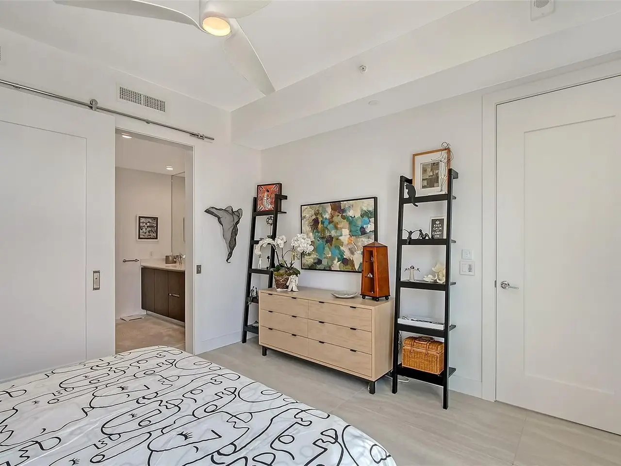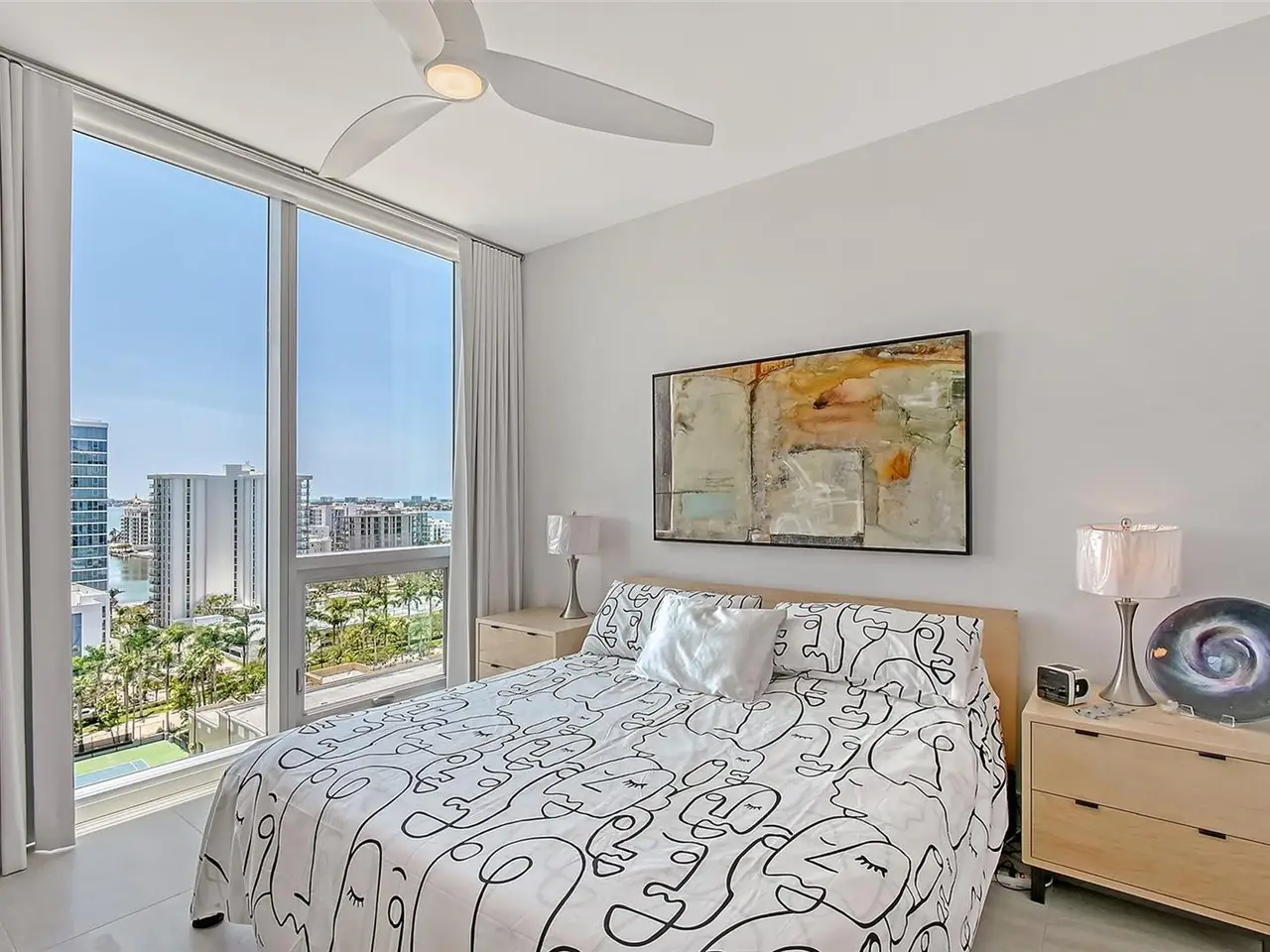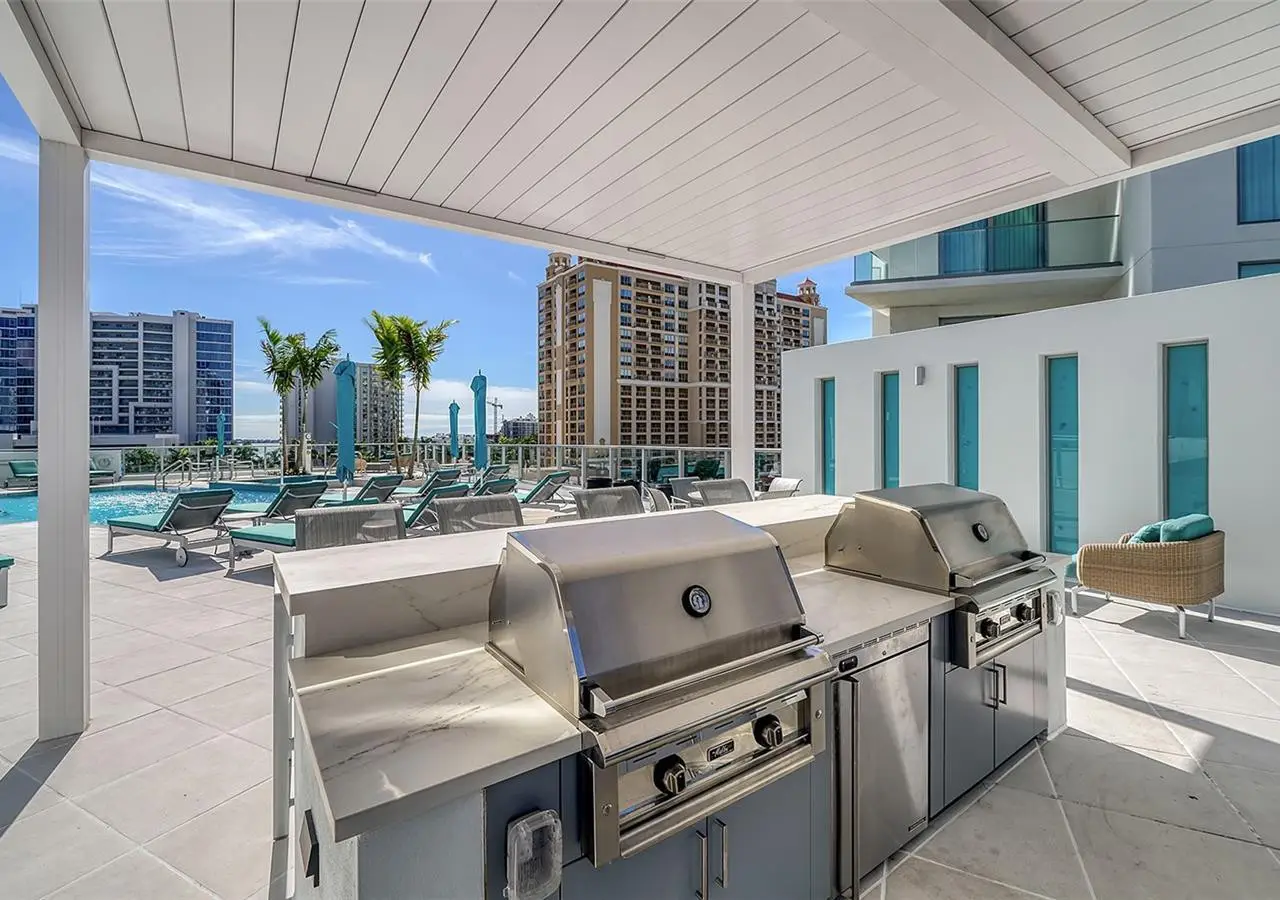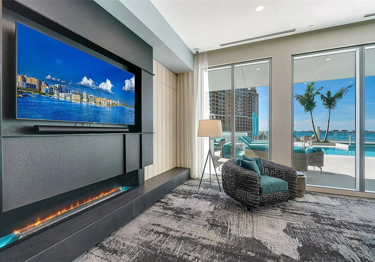 Prepare to be captivated by this absolutely stunning,12th-floor residence at Bayso, Sarasota’s most sought-after luxury tower at The Quay. With postcard worthy southern views of Sarasota Bay and the sparkling downtown skyline from every room, this extraordinary 2-bedroom plus den, 2.5-bath home offers nearly 1,600 square feet of refined sophistication and comfort. The moment you step inside, you’re greeted by a flood of natural light pouring through floor-to-ceiling glass, immediately drawing your eye to panoramic views that stretch endlessly across the bay and city. The elevated 20+ foot above sea level lobby sets the tone for the elegance that awaits above. Soaring 10-foot ceilings, porcelain tile flooring, and tastefully upgraded designer light fixtures throughout the home create a sleek and luxurious atmosphere. The spacious great room and dining area are the heart of the home; perfectly suited for entertaining, relaxing, or simply soaking in the view with your morning coffee or evening glass of wine. This is where everyday living transforms into something exceptional. Step outside to your oversized private terrace with glass railings and indulge in the beauty of Sarasota’s ever-changing skyline. The kitchen is a true showpiece, featuring European-inspired Italkraft cabinetry, glistening quartz countertops, a large center island with rollout drawers, premium Jenn-Air stainless steel appliances including an induction cooktop and double oven; making it ideal for both the everyday chef and the culinary enthusiast. The owner’s suite is a tranquil retreat, offering a spacious walk-in closet with custom built-ins and a spa-like bath complete with Grohe fixtures, double vanity with Robern recessed medicine cabinets, a separate water closet, and a glass-enclosed walk-in shower. The guest suite enjoys its own spectacular views, generous closet space, and a beautifully designed en-suite bath. A versatile den is outfitted with a custom wall unit with a queen-size Murphy bed, offering flexibility as a third bedroom, office, or private media space. A stylish powder room and an oversized utility room with full-size washer and dryer and abundant storage complete this perfectly designed residence. Bayso offers an unmatched array of resort-style amenities. Residents enjoy a 24/7 attended lobby, on-site management, and access-controlled security. The fifth floor is your personal oasis; featuring an elevated pool and spa deck over 60 feet above sea level, outdoor entertainment lounges, kitchen and grilling areas, the serene Splash Lounge, a state-of-the-art fitness center, movement studio, and a private dog park. There's even a formal club room with catering kitchen, co-working spaces, a boardroom for business meetings, secured Wi-Fi throughout all amenity spaces, and a mail room with package storage. The residence includes a premium assigned parking space in the private garage, climate-controlled storage, and there is also separate bicycle storage for the residents. All of this just steps from Sarasota’s thriving arts scene, award-winning dining, boutique shopping, and cultural venues; with the white sands of Lido Key, Longboat Key, and Siesta Key just minutes away. Whether you're seeking an elegant year-round home, a chic pied-à -terre, or a lock-and-leave retreat in one of Florida’s most desirable cities, this residence is your invitation to live the dream. Schedule your private tour today and experience the very best of luxury living at Bayso.