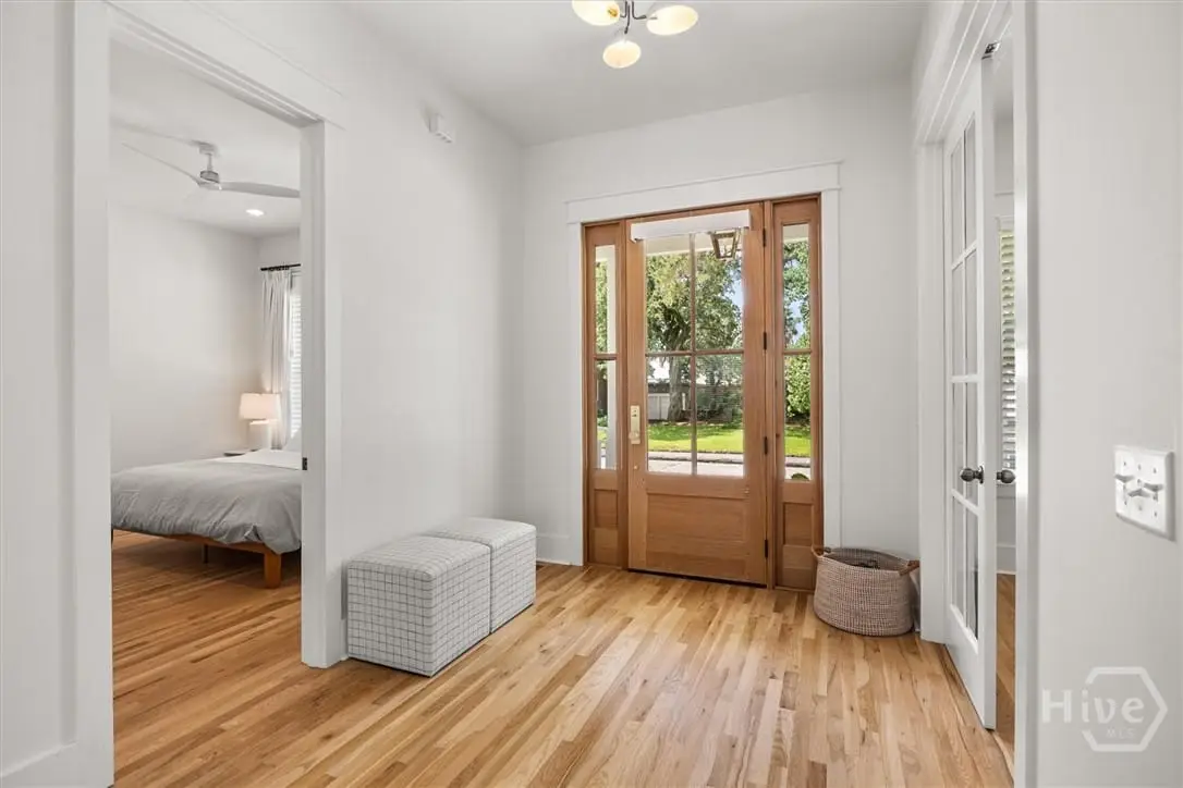 Conveniently located in coveted Ardsley Park, this 2023 build offers 5 bedrooms, 5.5 baths, and 3,509 sq ft of modern living. The inviting front porch with gas lantern opens to light-filled interiors with 10 ceilings, white oak hardwoods, and custom millwork. A chef's kitchen and prep kitchen with quartz counters, oversized island, and premium appliances connect to open living and dining areas. The main floor includes a private suite, bonus room, and half bath, while upstairs offers 4 spacious bedrooms with ensuite baths plus a serene primary retreat with his and hers closets. Outdoor living features a covered porch, built-in grill, fans, and fenced backyard with raised organic garden beds. Energy-efficient upgrades include Rockwool insulation, dehumidifiers, sealed crawlspace, tankless water heater, irrigation, and CAT 8 wiring. A one-car garage with alley access and walk-up attic storage complete this rare opportunity in one of Savannah's most desirable neighborhoods.