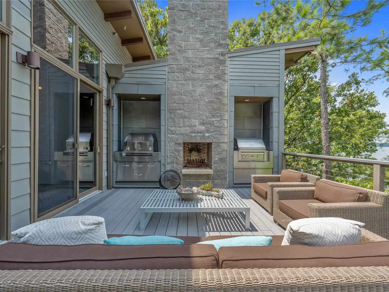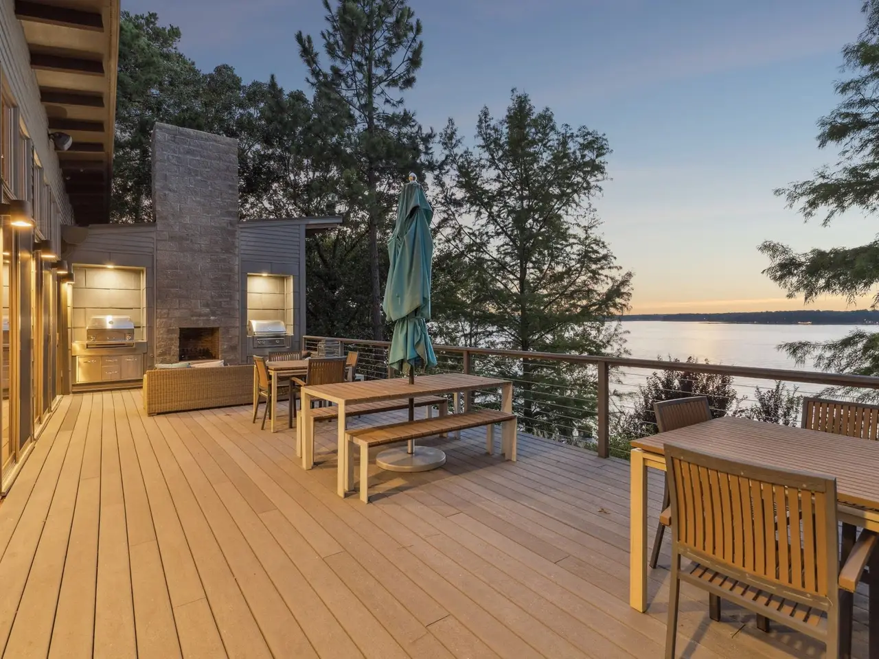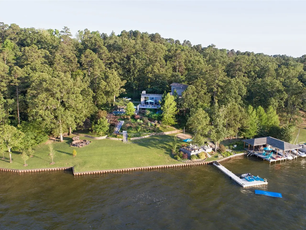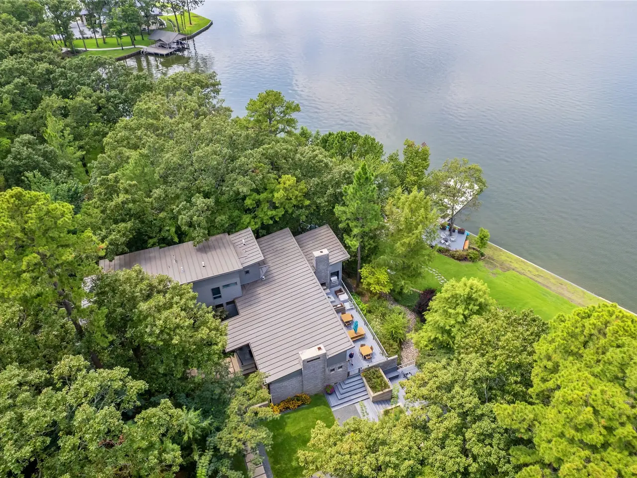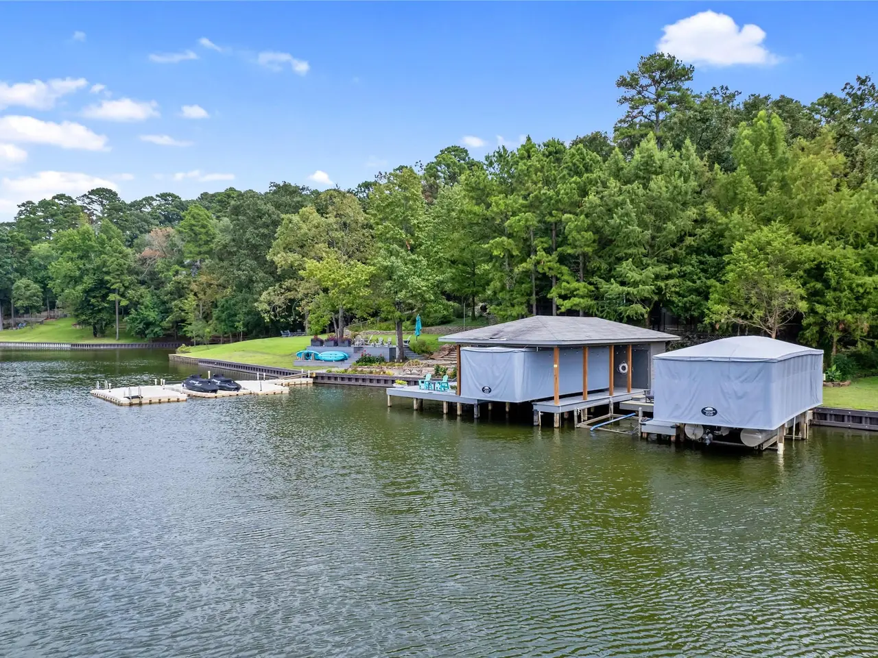 This beautiful compound on Lake Cypress Springs includes the rare opportunity to own a contemporary home in a private setting with over 12 acres. The private gated entrance leads you to one of the largest lots on the lake that has a contemporary custom home designed by the well-known architectural firm of Barry Bull Ballas. An expertly designed 4 bedroom and 5 and a half bath home with an exterior combination of stone, zinc, and hardy produce a timeless home nestled among the towering trees and perfectly oriented on the land to maximize the views of the lake with over 450 ft of lake frontage. The property boasts all the recreational options you can imagine. Sport court ideal for pickleball, basketball, foursquare, shuffleboard and badminton. Multiple boat docks including automatic lift and cover for a ski boat and pontoon boat and additional slip for a sailboat and floating dock for swimming and additional watercraft. There is a beautifully designed firepit that overlooks the beach area. The expert landscaping surrounds the home and lakefront with additional features including a Hot tub, fishing dock and tetherball. The Listing Price includes the following: 2011 Sun Tracker Pontoon Boat w.150 Mercury 4-stock engine and covered lift, Kawasaki UTV 4.4 Mule, two 2021 Sea-Doo Jet Skis, Three kayaks and one paddleboard. This sophisticated contemporary lake house is ready to enjoy and includes countless recreational options in this uniquely private setting on beautiful Lake Cypress Springs.