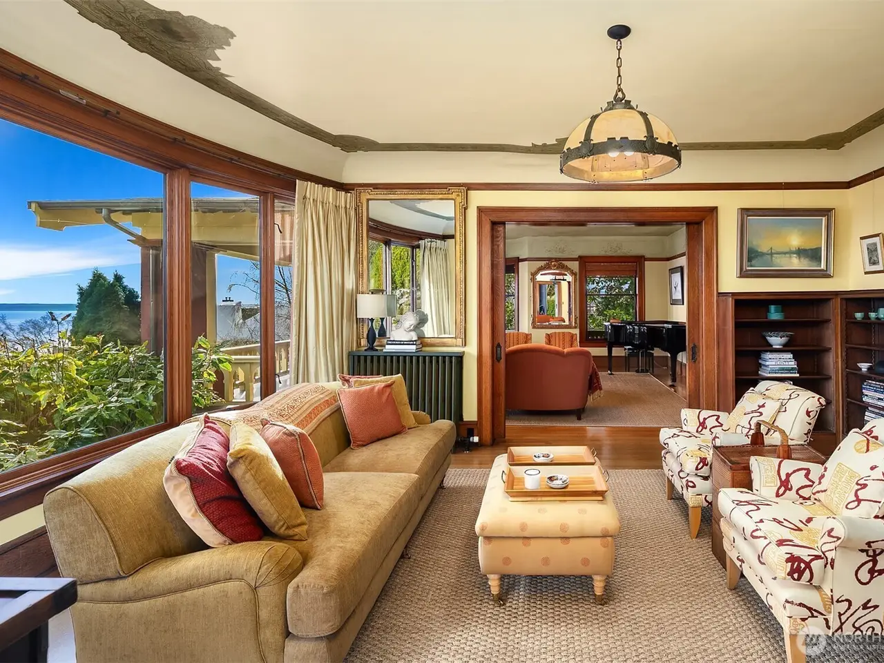 Experience elevated city living in this masterfully restored Craftsman, where timeless architecture and elegant style meet contemporary luxury. Perched above Elliott Bay with commanding views of the Space Needle, Mt. Rainier, and the Olympic Mountains, this home offers an unforgettable backdrop from nearly every room. Four expansive levels flow effortlessly with open living spaces, a gourmet chef's kitchen, and flexible layouts for work, play, and relaxation. Step outside to lush gardens, grassy level lawns, sun-drenched patios, and covered terraces designed for year-round enjoyment. Private yet perfectly positioned to take advantage of Seattle's best dining, arts, events, shopping and outdoor recreation - the best of refined living!