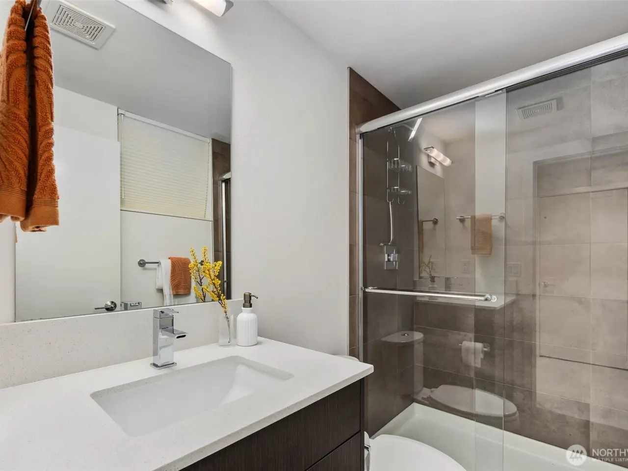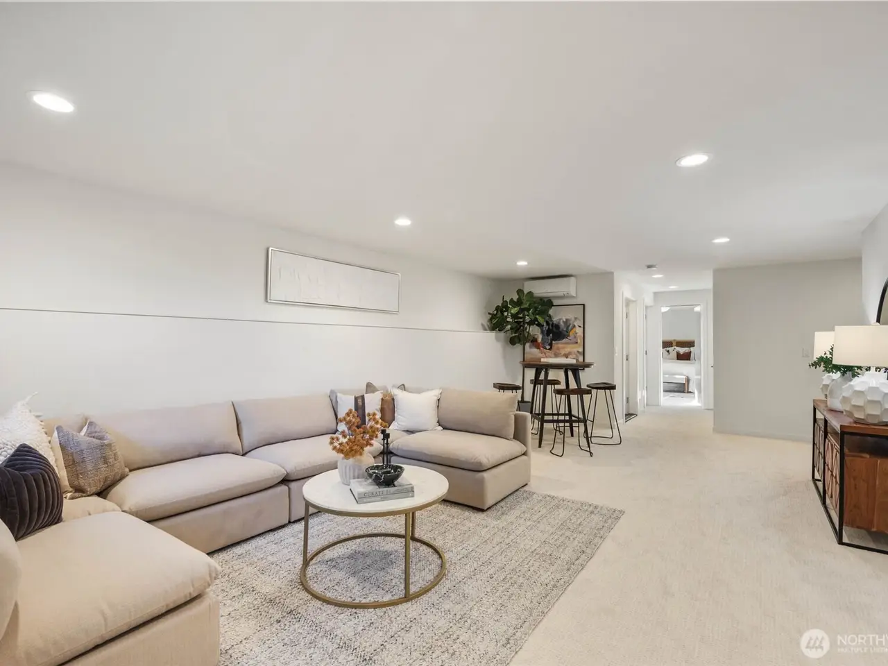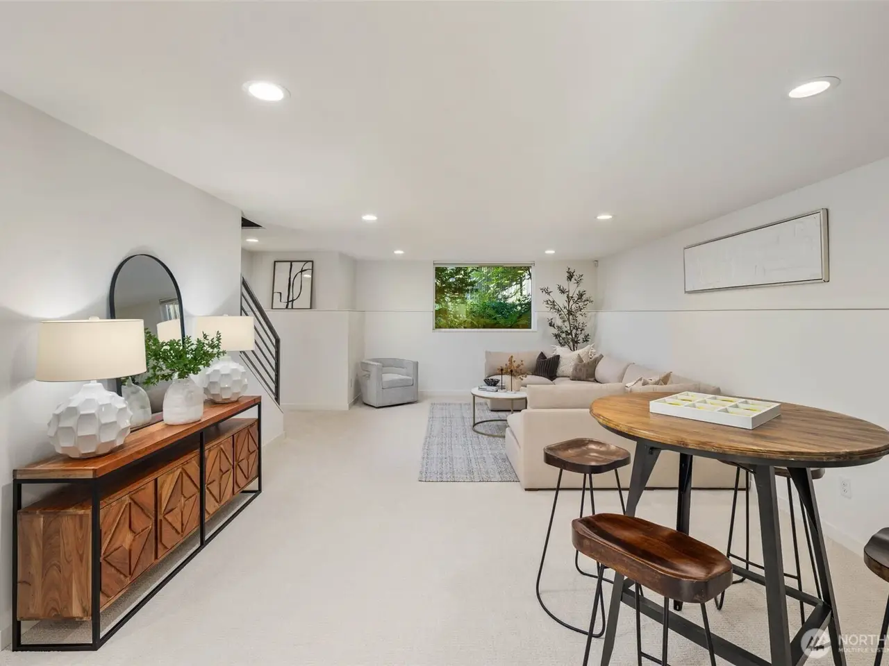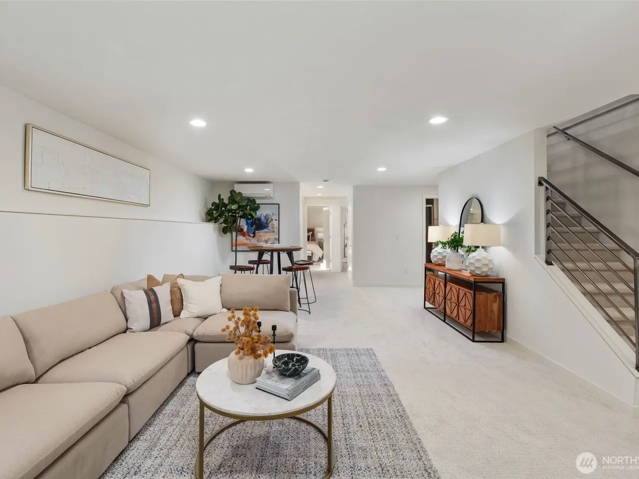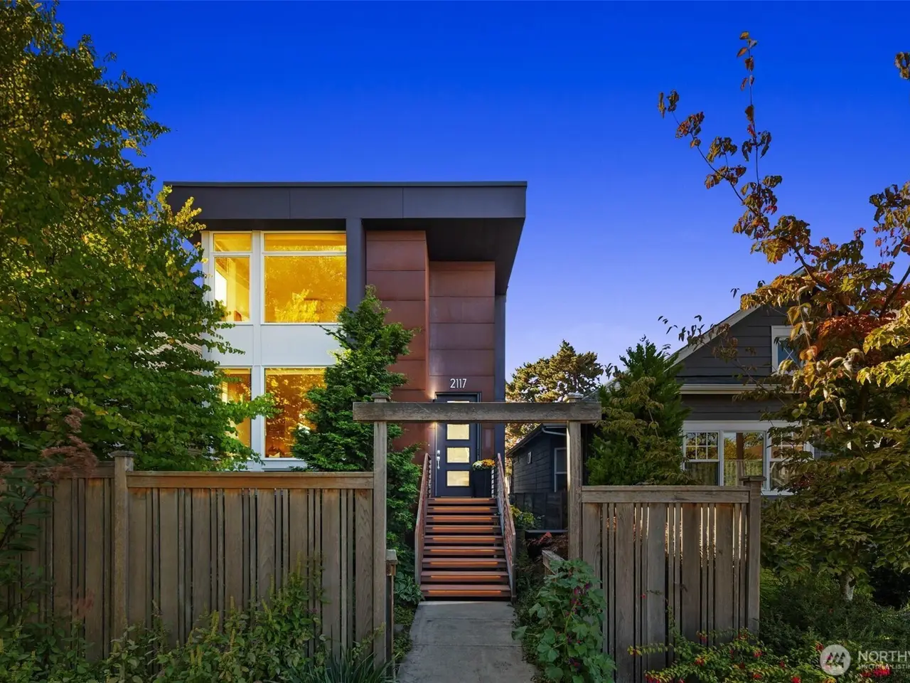 Modern industrial design meets prime top of Queen Anne living in this stunning home. The main floor boasts an open-concept great room with a beautiful gas fireplace, flowing seamlessly into a chef's kitchen with premium appliances and a striking 13ft island. A dining/family area opens to a west-facing deck, perfect for entertaining. Upstairs, the spacious primary suite features a spa-inspired bath, addt'l two bedrooms plus a full bath, and laundry. The daylight lower level offers a versatile media/playroom, two more bedrooms, and ¾ bath. Enjoy the mature native plant garden year round. Single car garage w EV ready wiring + 1 addt'l park space complete this rare find in one of Seattle's most sought-after neighborhoods.