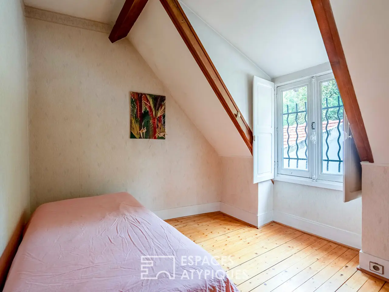 Nestled in the heart of the Monesse-Croix Bosset district, one of the most popular in Sevres, this beautiful house from 1927 covers 114 m2 of living space, supplemented by a garden level offering development possibilities. Built on a plot of 500 m2, this house with great potential will benefit from renovation work to give it back the charm it deserves. The ground floor opens onto a large entrance serving on one side, an independent kitchen and on the other, a beautiful living room of 33 m2 having retained all the charm of the old with its fireplace and its period parquet flooring. The latter gives access to a terrace overlooking the garden, and offering a breathtaking view of the surrounding area. Upstairs, the sleeping area consists of two large bedrooms of 16 m2, one with its own bathroom. A third bedroom of 9 m2 and a bathroom complete this level. The garden level, partially furnished, has a bedroom of 9 m2, a wine cellar, a storage space, and a room of 20 m2 to be exploited, thus offering expansion potential with direct access to the garden to create a harmonious connection between inside and outside. A closed garage completes the services of this charming house, which only asks to find a second life in its green envelope: Sevres-Ville-d'Avray station: 1km School map : Croix Bosset nursery and elementary school College of Sevres REF. 9613 Additional information * 6 rooms * 4 bedrooms * 1 bathroom * 1 bathroom * 2 floors in the building * Outdoor space : 496 SQM * Parking : 1 parking space * Property tax : 1 312 € Energy Performance Certificate Primary energy consumption e : 319 kWh/m2.year High performance housing