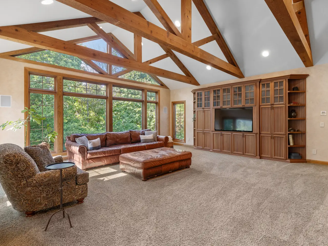 This owner has cared extensively for this quality craft-built home. Rare to find features: striking stone entry, gorgeous stone fireplaces, curved staircase, gables, walls of light filled windows, unparalleled Ann Sacks tile + beamed, wooded, vaulted, & tray ceilings throughout. Walking in is like a magazine! You'll love the design, the feel in the sunroom, the space, gourmet kitchen, architecture, screened porch, multi-level decking, brick patio, mature landscape, motif, and how it's set magnificently on a .9 acre wooded lot. Privacy w/ conservation behind + a short walk to the Pigeon River or pathway to Pine Hills Country Club/Golf. Please call for a showing & list of recent upgrades not limited to roof, skylights, gutters, hardwoods, Wolf/Bosch/Sub-Zero appliances, new bedroom & MORE!!