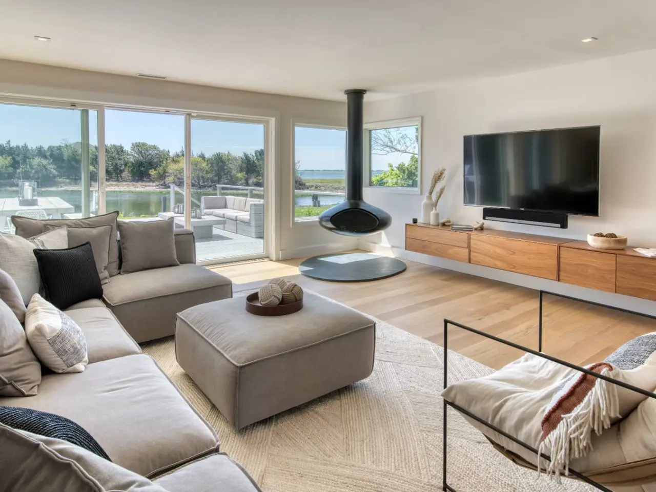 Completely renovated chic modern classic perfect for a Summer getaway. Situated at the end of quiet road with a beach and endless water views, this 4 Bedroom, 4 Bath summer home boasts 2 large master suites each with private decks (perfect for morning coffee) and jaw dropping views of Far Pond and Shinnecock Bay. The open floor plan living areas have wonderful light and include a completely renovated kitchen with Bosch appliances, dining area, breakfast area and living room with fireplace. All have easy access to the wonderful deck which is set up for a zen like calm and incredible waterfront entertaining. Garage that doubles as gym/ping pong room, sauna, and attached shed (ideal for kayaks etc.) for a summer to remember.