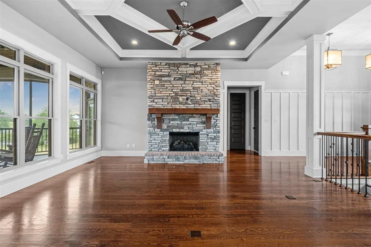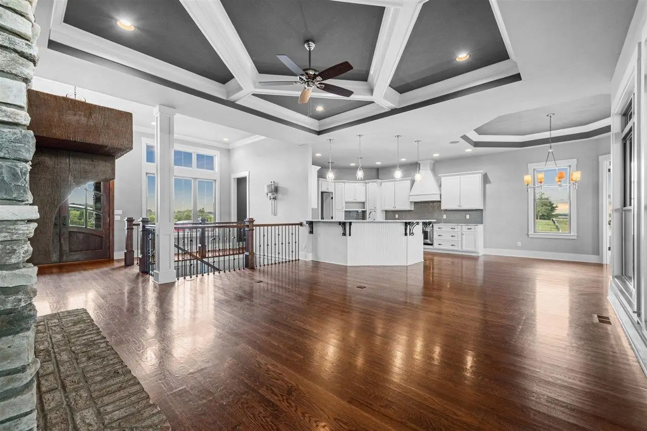 Nestled on seven beautiful acres, this stunning four-bedroom, four and a half-bath custom built home offers elegance, comfort, and functionality. A sweeping, spacious yard welcomes you to the property, providing plenty of room for outdoor activities, gardening, or simply enjoying the serene surroundings. Inside, the open-concept floor plan is filled with natural light and enhanced by thoughtful details such as coffered ceilings, designer selections and a cozy fireplace, creating a warm and inviting atmosphere. The kitchen is designed for both everyday living and entertaining, featuring a large walk-in pantry and easy flow to the dining and living spaces. The primary suite is a true retreat, complete with dual closets, a soaking tub, and a beautifully tiled shower. The fully finished walk-out basement expands the living space, offering a second kitchen, whole home surround sound system, and abundant storage. Perfect for gatherings or private guest quarters, this level provides flexibility for a variety of needs. Additionally the basement offers an extra finished space that can serve as a home gym, office or a secondary garage with exterior garage door access. Outdoor living is equally enjoyable with a screened porch ideal for relaxing evenings. Additional highlights include a three-car garage, tankless water heater, and thoughtful upgrades throughout. With its expansive acreage, modern amenities, and luxurious touches, this home combines peaceful country living with upscale comfort truly a must-see property.