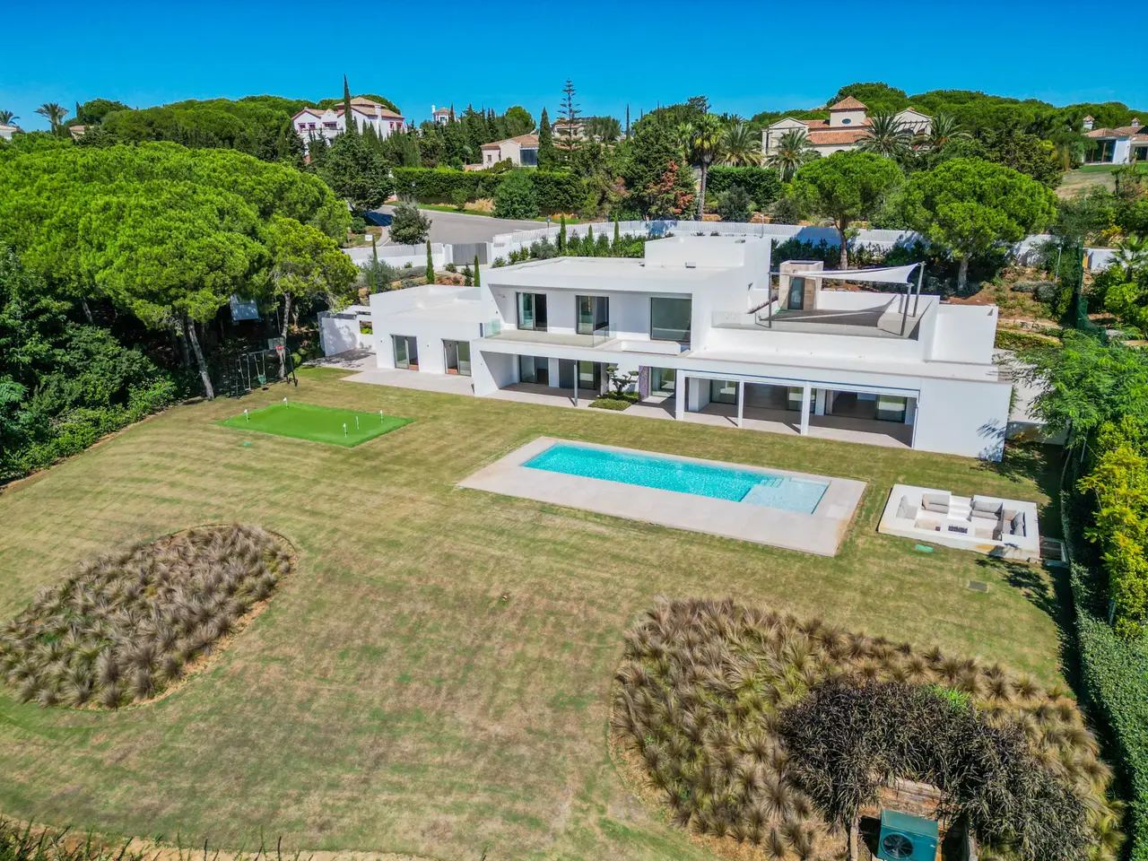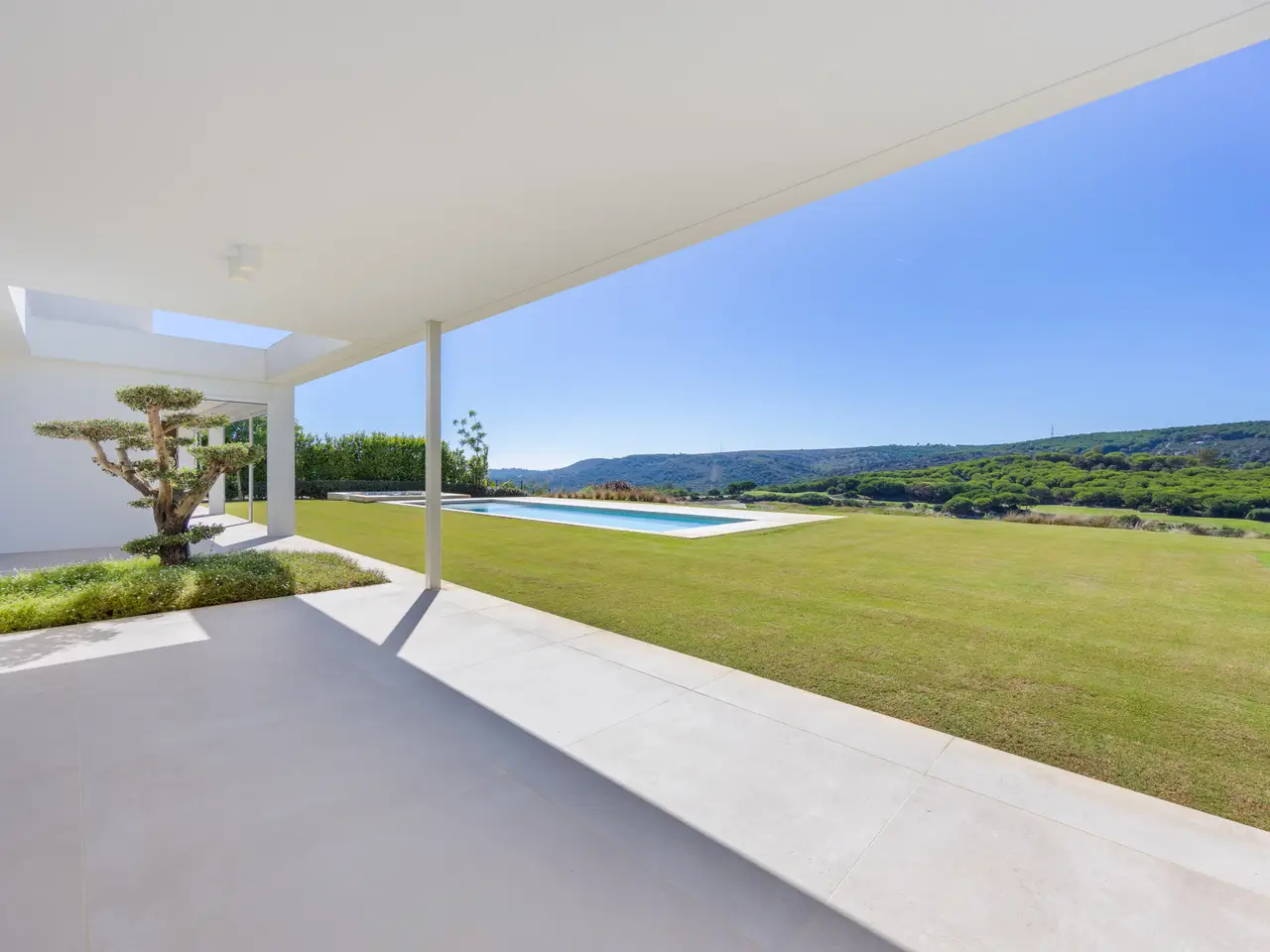 There are places that are not just inhabited, but truly lived in. This villa in Sotogrande Alto is one of them. Located on the front line of one of the area’s most prestigious golf courses, the property opens onto a serene lake, offering panoramic views that invite relaxation and contemplation. Here, life moves at a different pace, defined by the harmony between architecture, landscape, and well-being. Designed with a contemporary language and noble materials, the residence achieves a perfect balance between elegance and functionality. The spacious living room, bathed in natural light, becomes the heart of the home, seamlessly connecting with the landscaped outdoor areas. Each of the five bedrooms has been conceived as a private, tranquil, and sophisticated space, ideal for disconnecting from the outside world. The kitchen and dining room, located in separate areas, are equipped with high-end technology and finishes that reflect exquisite taste, ready to serve as the setting for both intimate gatherings and memorable events. But this villa goes beyond the conventional. On its lower floor, it houses a true wellness and leisure center: sauna, cold plunge area, fully equipped laundry, and pre-installation for a golf simulator with Trackman technology, ideal for training at home without sacrificing professional performance. This level is completed by additional storage spaces, a technical room, and a garage with capacity for several vehicles. The exterior is an extension of the lifestyle this residence offers: a pool integrated into the surroundings, a fire pit area for evenings under the stars, and a putting green to perfect your swing, all surrounded by meticulously maintained landscaping. And as expected in a property of this caliber, security has been intelligently and discreetly integrated: sensors, advanced surveillance, and state-of-the-art access systems provide peace of mind without disrupting the overall aesthetic. This villa is not just a house: it is a statement of style, a commitment to effortless comfort, a setting designed for those seeking the best of Sotogrande with a contemporary and sophisticated perspective. Contact us for more information.