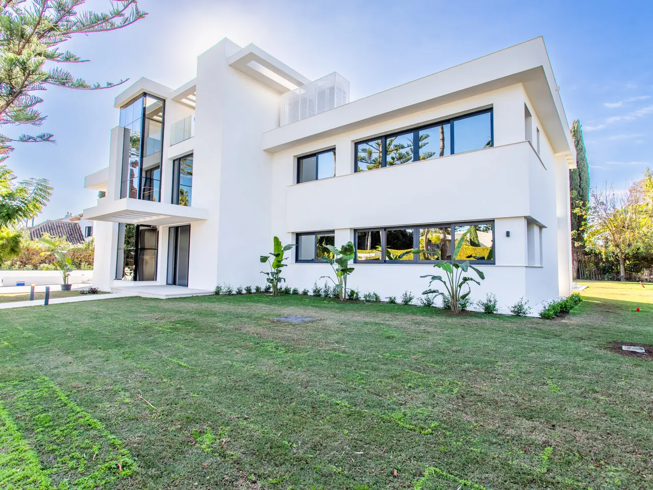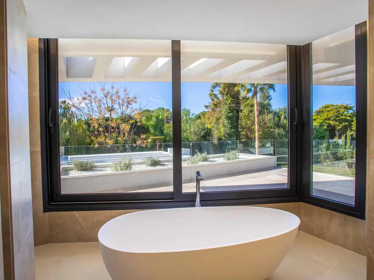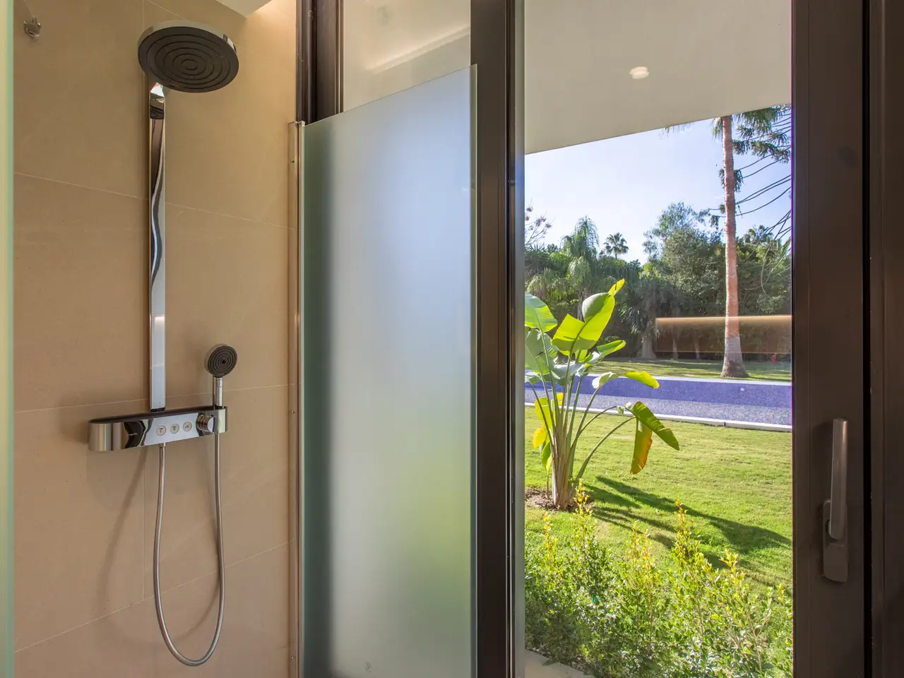 Located on a plot of over 2,000 square meters in one of the most exclusive areas of Sotogrande Costa, this magnificent villa combines modern and elegant style with its vertical lines and sober colors. The house is surrounded by large windows, maximizing natural light and energy efficiency. It features 5 bedrooms, 5 bathrooms, and 2 guest toilets. The ground floor consists of a beautiful entrance hall that separates the two bedrooms, both with ensuite bathrooms, from the spacious living-dining area with an open kitchen and a fantastic island. There is also a guest toilet and an elevator connecting all floors. From the living room, you can access the garden through a lovely terrace with pergolas, perfect for enjoying unforgettable moments under the moonlight with a drink or al fresco dining, taking advantage of the excellent climate of the area. Next to this terrace, there is a 14x6m infinity pool with LED lighting, offering both a swimming area and a relaxation area with sun loungers. The pool also has pre-installation for heating, so you can enjoy a swim after a long day of work. On the first floor, you will find an impressive master bedroom with an ensuite bathroom, a dressing room, and a private sitting area. The master bedroom also has access to a covered porch with stunning views. On the other side of the first floor, there are two more bedrooms, both with ensuite bathrooms. On the next floor, there is an uncovered terrace of 150 square meters. Can you imagine it? Finally, the basement offers endless possibilities. In addition to a covered garage of almost 50 square meters, a laundry room, and a toilet, there is a spacious open area of 149 square meters that can be used as a playroom for children, additional bedrooms, a gym, a wine cellar, a spa, or a magnificent home cinema! As for the quality of the materials, this spectacular villa is equipped with a reinforced door and energy-efficient VRF air conditioning system, as well as ventilation systems with heat recovery for increased comfort and energy savings. It also has underfloor heating and an aerothermal system. The villa is pre-installed for solar panels and an electric car charging point. The kitchen is furnished and equipped by Modulnova, with appliances from the Gaggenau brand. This is the perfect villa in the perfect location. Call us to arrange a viewing!