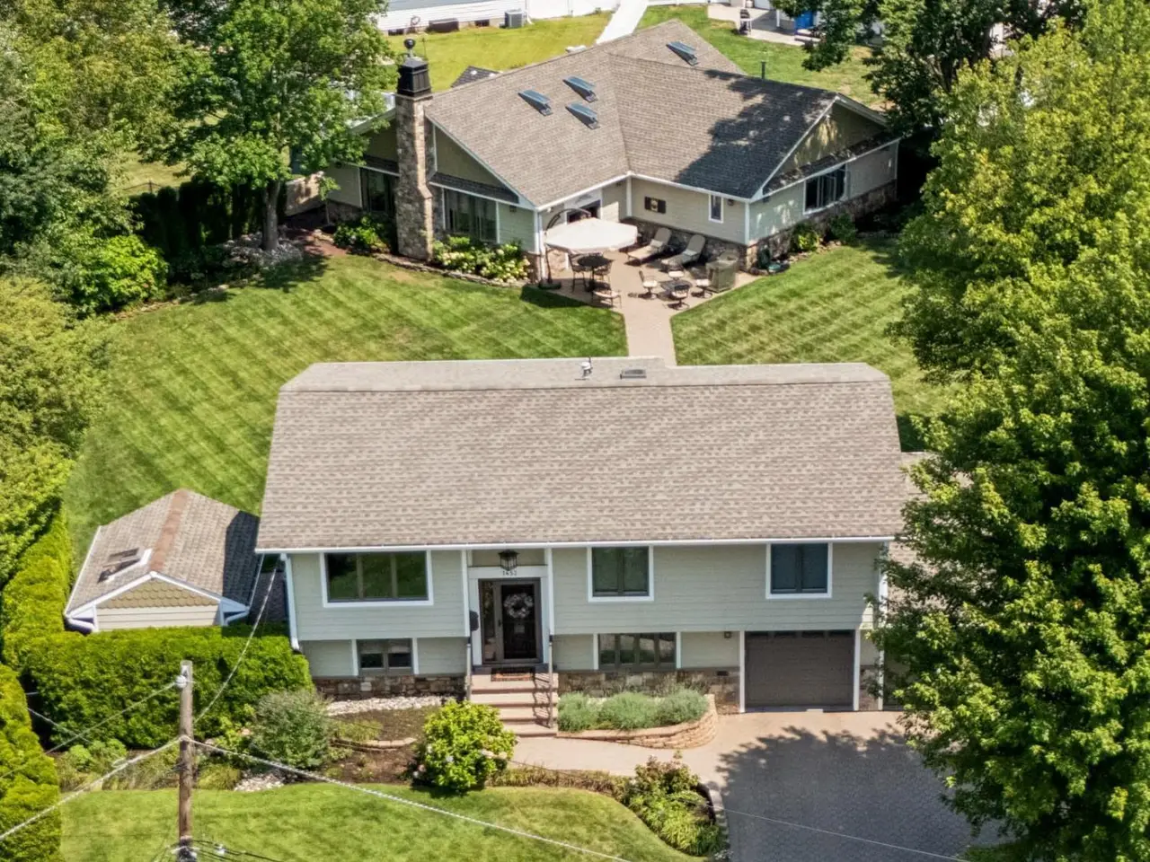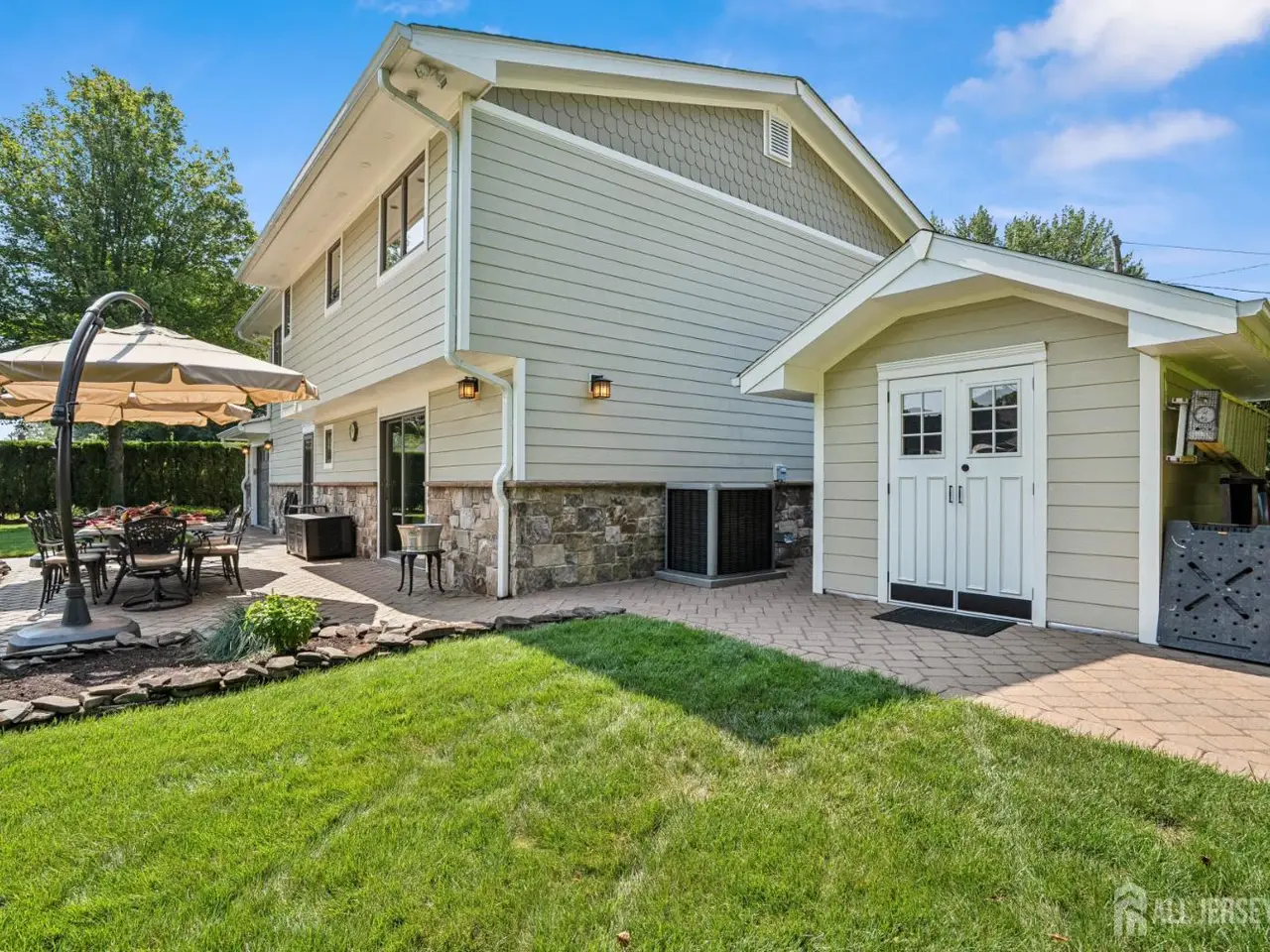 Your Private Poolside Paradise Awaits! At the heart of this property lies a one-of-a-kind all-season pool house retreat-a true destination in itself with over 2,000 sq. ft. of resort-style living. Enjoy a 16' x 32' in-ground pool, framed by elegant finishes and anchored by a floor-to-ceiling stone fireplace that brings warmth and ambiance year-round. A dedicated game room with pool table ensures endless entertainment, while the fully equipped kitchenette is perfect for cocktails, snacks, and poolside dining. A full bathroom with washer/dryer and large soundproof windows make the space as practical as it is luxurious. Whether you're hosting lively gatherings, unwinding with family, or enjoying a private swim, this pool house is designed for unforgettable entertaining and total relaxation. Complementing the pool house is a beautifully maintained 4-bedroom, 3.5-bath home with custom upgrades, Corian countertops, a lower-level family room with wet bar, and a spacious primary suite. Outdoors, professional landscaping with over 300 arborvitae, underground sprinkling system, multiple patios with pavers, and accent lighting create an ideal setting for both privacy and entertainment. Close to shopping, to New Jersey Transit, and major highways. This property is more than a home-it's a lifestyle.