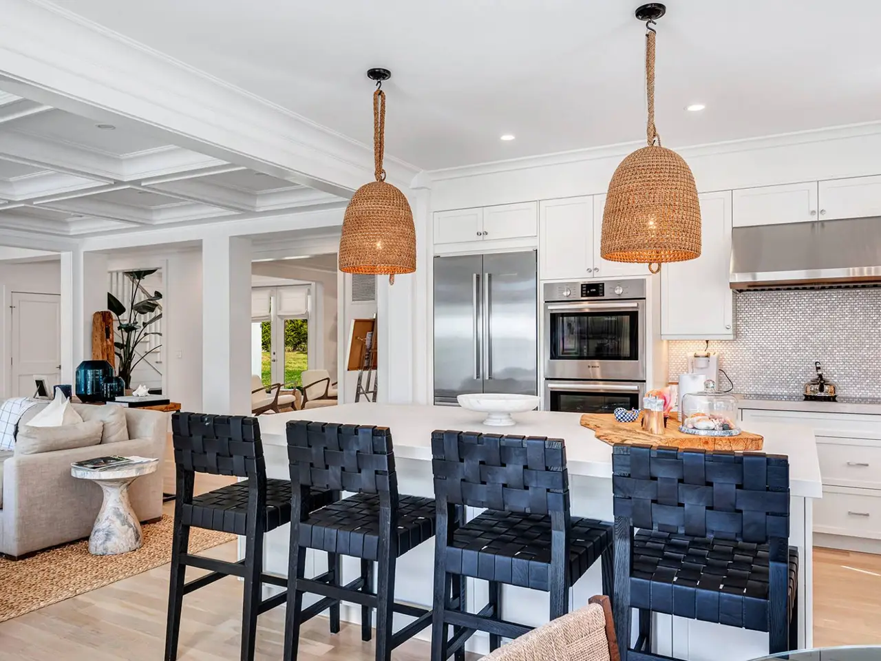 Located in Bayview Oaks, a Southampton waterfront community with its own access to Peconic Bay. Bright and airy with an open floor plan, this custom-built home with high-end designer furnishings offers four bedrooms, plus a large bunk room and 3.5 bathrooms. Living room with fireplace, dining room and gourmet eat-in kitchen have 13-plus-foot ceilings. With the master bedroom on one side, bunk room and the three guest rooms on the other, the layout is ideal. Amenities include radiant heated floors and an attached 2 car garage. Beautifully-landscaped gardens, outdoor kitchen, multiple patios and entertaining spaces. Just a short stroll to the deeded community beach, boat launch. This is a great place to escape or settle down. Close to the village of Southampton, Sag Harbor, Water Mill and Bridgehampton for restaurants, shopping, movie theaters, art galleries, bay and ocean beaches.