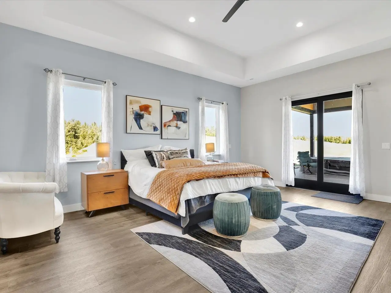 Welcome to Your Dream Home in River Bluff Ranch. Enter into this stunning 5-bed/4-bath ranch-style home, where luxury meets comfort. Spanning 4,000 sq ft, built in 2023, this residence offers a warm and inviting atmosphere. The great room concept features floor-to-ceiling windows that frame picturesque views of rolling hills, creating a serene backdrop for daily living. The commercial-grade gourmet kitchen, adorned with quartz countertops, is a chef's paradise, perfect for entertaining. The primary bedroom and bath, along with a cozy office, are thoughtfully positioned at one end of the house for ultimate privacy. On the opposite end, you'll find three additional bedrooms, 2 with their own private bath, ensuring comfort for all. 2 spacious family rooms provide ample space for relaxation & entertainment, complemented by a fireplace, 12ft ceilings, and elegant 8ft doors. Outside, the expansive back deck invites you to unwind and enjoy the beauty of over 2 acres, this home is complete serenity.