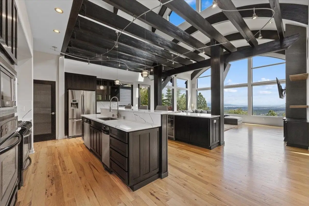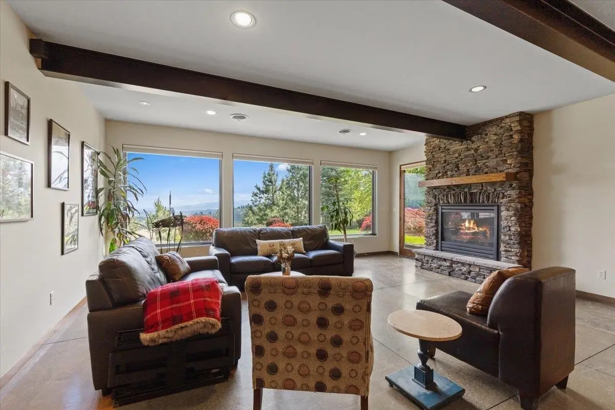 A Pacific Northwest gem built by Fruci Homes, on the market for the very first time. This 6,138 square foot residence sits 1.3 manicured acres with a $2 Million view stretching east and west. Designed for elegance and comfort, the home features 5 bedrooms, five bathrooms and expansive windows that enhance the indoor/outdoor flow. Crafted with natural materials, timeless finishes, and robust stonework, it exudes refined modern luxury. Enjoy radiant heated floors, a chef's kitchen, a spa-like primary bathroom, and a wine cellar, all perfect for entertaining. Backyard has been geo gridded, and ready for an in-ground pool. Nestled in the gated community of Broadmoor Estates, just minutes from downtown Spokane, the airport, and top hospitals. This is a rare opportunity in one of Spokane's most coveted communities.