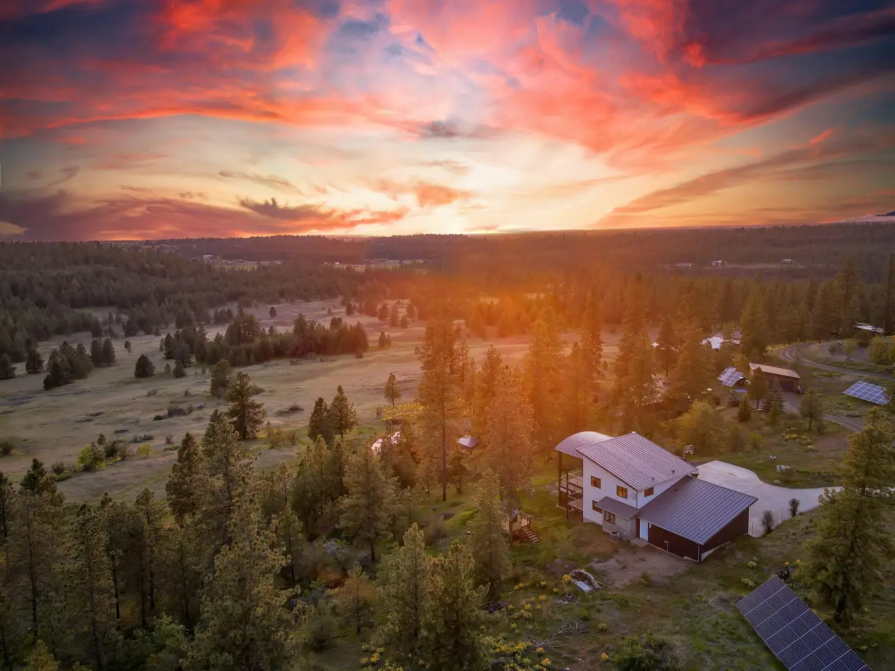 Intentional design of beauty, environment & nature. 85 acre natural area with miles of trails. Amazing property updates include brand new ext paint, new custom garage door & new gutters. Designed for the environment - solar panels, polished radiant heat concrete floors throughout, induction stove, central vac, metal roof, cement hardy board siding, & high efficiency windows & doors. Perfect blend of quality & style w/ a bright & open floor plan. Handcrafted wood & metal work. Spacious kitchen w/ oversized island, flamed granite counter tops, stainless steel appliances & ample cabinet space. Marvelous great room w/ accordion glass doors to full covered deck. Breathtaking views from every room. Main floor primary suite with private covered deck, large bath, walk-in shower, custom tub w/ walk-through closet leading to conveniently located main floor laundry & mud room. Every aspect of home built w/ quality & efficiency! A rare find close to downtown, airport & mother nature!