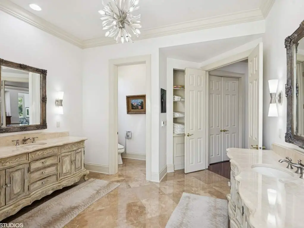 An Architectural Masterpiece in the heart of St. Charles - Step into glamour and sophistication at the illustrious Masco Estate-an exquisite residence envisioned by renowned architect, Scholz Design, and masterfully constructed in 2003, this estate is perfectly positioned just 35 miles west of Chicago, this stately sanctuary is nestled in the storybook landscape of St. Charles, Illinois. Approach via a secluded private lane, crossing a picturesque bridge over the tranquil Ferson Creek, and pass through elegant wrought iron gates into a world of splendor. Set on over 9 lush acres of manicured grounds and flourishing gardens, this distinguished Burr Road estate presents an unmatched lifestyle offering both grandeur and serenity. At the heart of the property lies the principal residence, encompassing over 12,000 square feet of refined living across three impeccably finished levels, including a full walkout lower level. This estate artfully blends old-world craftsmanship with modern luxury. Upon entry, be captivated by a 22-foot soaring great room, framed by Palladian windows, adorned with two sparkling crystal chandeliers, and anchored by a stately fireplace set in rich marble. Gorgeous travertine flooring and woods flows throughout, guiding you into the bespoke gourmet kitchen-a chef's haven boasting extensive maple cabinetry, high-end appliances, gleaming granite countertops, and a sunlit breakfast nook with panoramic views. Architectural brilliance continues in the rotunda-style turret, showcasing a cozy fireplace and terrace access-perfect for intimate gatherings or quiet reflection. The lavish first-floor primary suite is a private retreat, complete with an opulent ensuite, sitting rooms, a wet bar, private patio, and a dedicated staircase descending to a private gym. The adjacent executive office/library is a study in refinement, featuring custom millwork, fireplace, and it's own tranquil and private patio overlooking the expansive side lawn-an ideal blend of form and function. Additional amenities include dual laundry rooms on the main and lower levels for effortless convenience. Upstairs, new wool carpeting leads to four generously proportioned ensuite bedrooms, each offering privacy and elegant finishes. An expansive covered veranda on this level provides sweeping views and a perfect setting for entertaining. The walkout lower level is a destination in itself-designed for hosting and relaxation with a handcrafted Irish-imported oak bar, climate-controlled wine cellar, recreation spaces, gym, vault room, two fireplaces, and a full bath. Outdoors, this estate is equally impressive. Lounge by the resort-style pool and hot tub (with new liner and cover in 2023), entertain on the two-tiered stone terrace and loggia, or gather around the cozy fire pit. For the sports enthusiast, enjoy tennis, basketball, and pickleball courts-resurfaced in 2025 for basketball, pickleball and tennis -- all within your own private grounds. A highlight of the estate is the remarkable 2,450-square-foot Bank Barn, ideal for a home business, studio, or future guesthouse. Once a single family home & office (has it's own address), this barn has five bedrooms, three bathrooms and two kitchens. Featuring 24-foot vaulted ceilings, a dramatic balcony with sunset views, walkout lower level, and an attached garage, the barn is a separate three-car garage with epoxy flooring, AC, and a finished loft. Perfectly positioned with two private entrances, this one-of-a-kind estate offers close proximity to PGA event courses such as Medinah Country Club, St. Charles Country Club, The Hawk Country Club, Dunham Woods Riding Club, Leroy Oaks Forest Preserve, the Randall Road corridor, and the private DuPage Airport-all within the acclaimed St. Charles School District 303. This is more than a home-it's a legacy property and a rare opportunity to own one of St. Charles' most iconic estates. Call to schedule your private showing today.