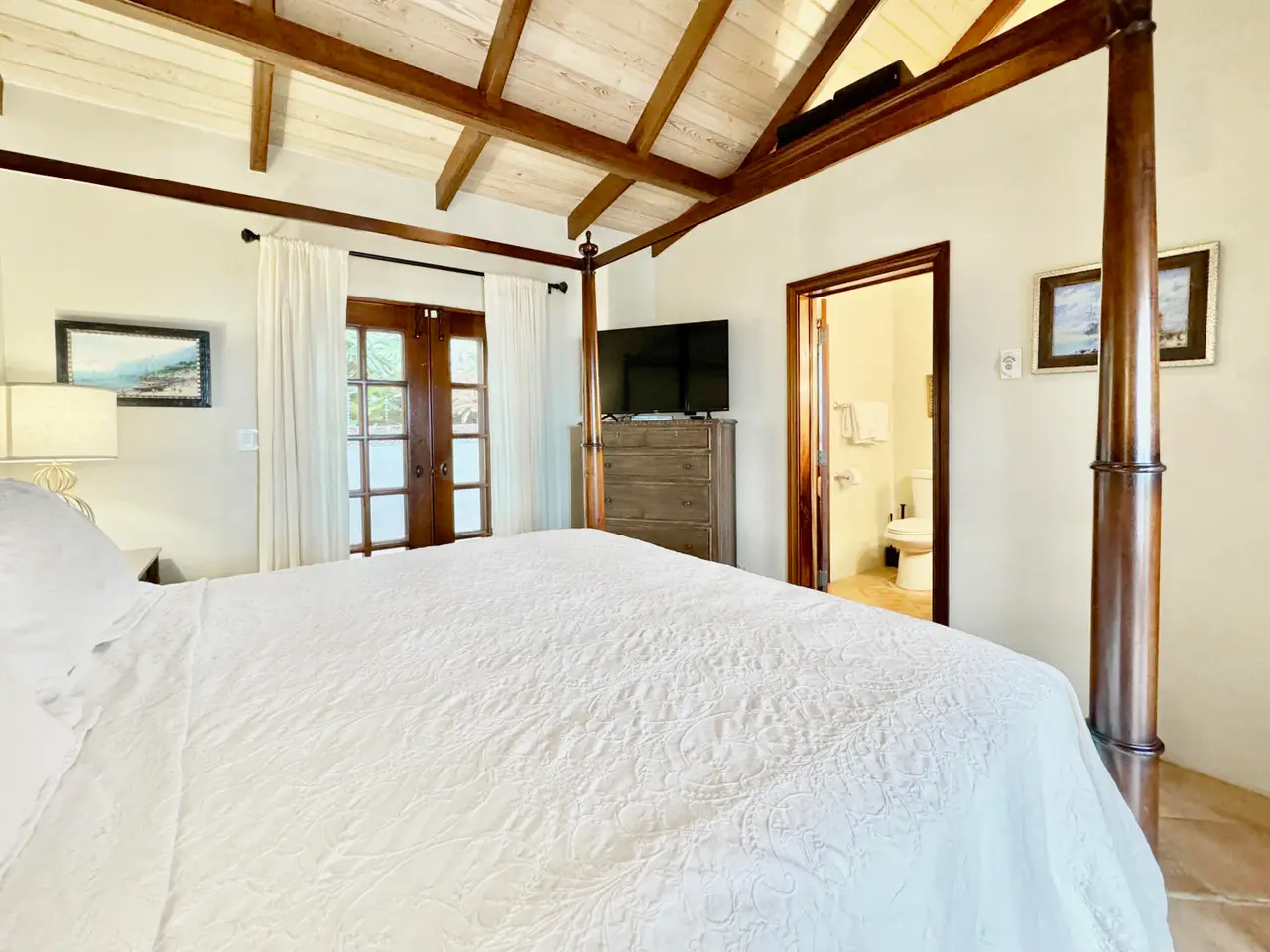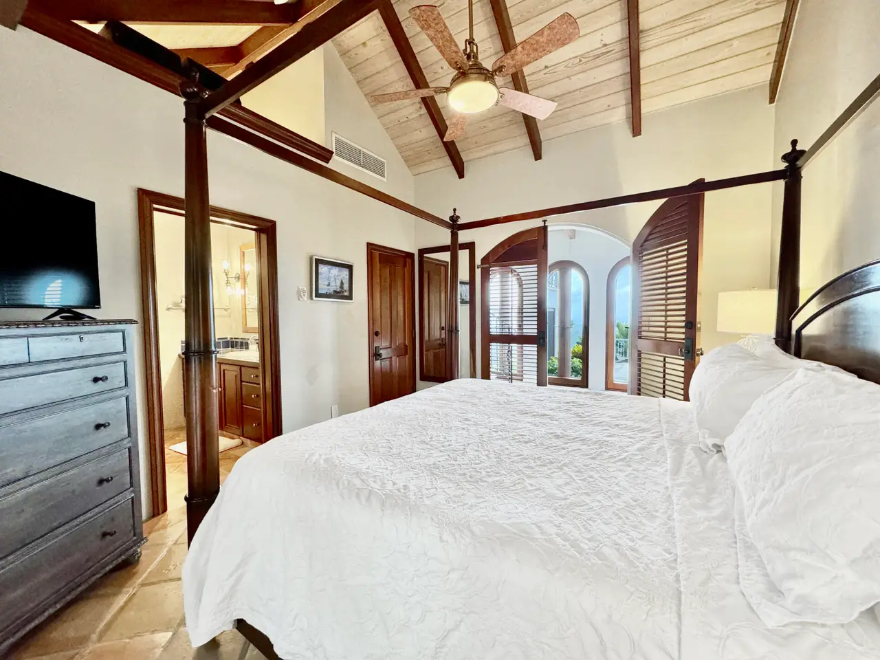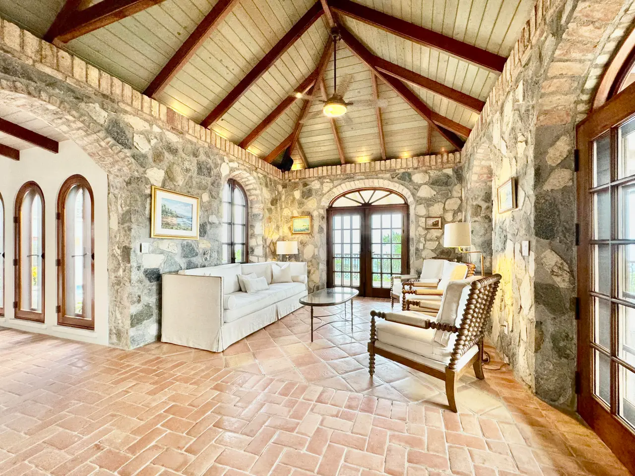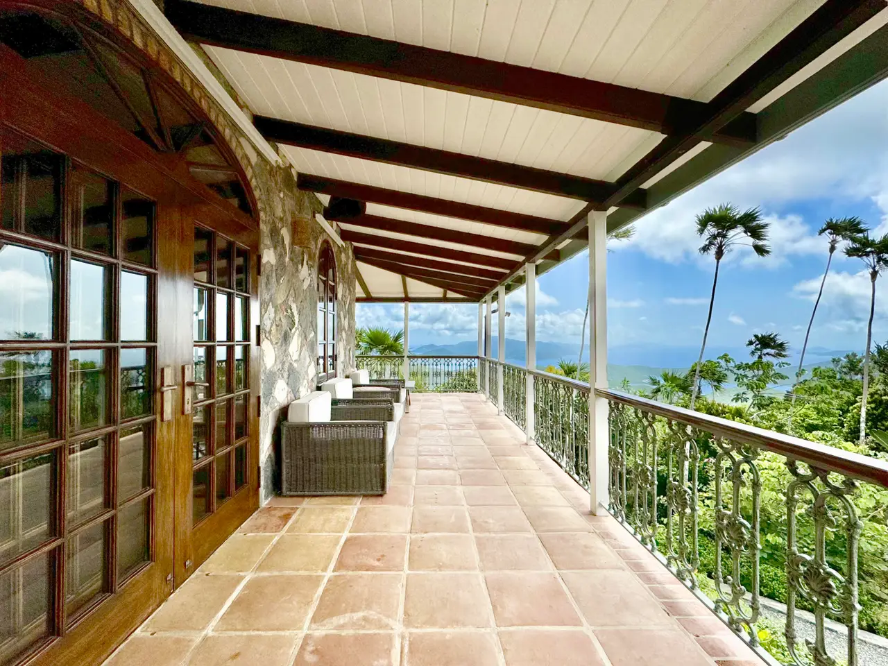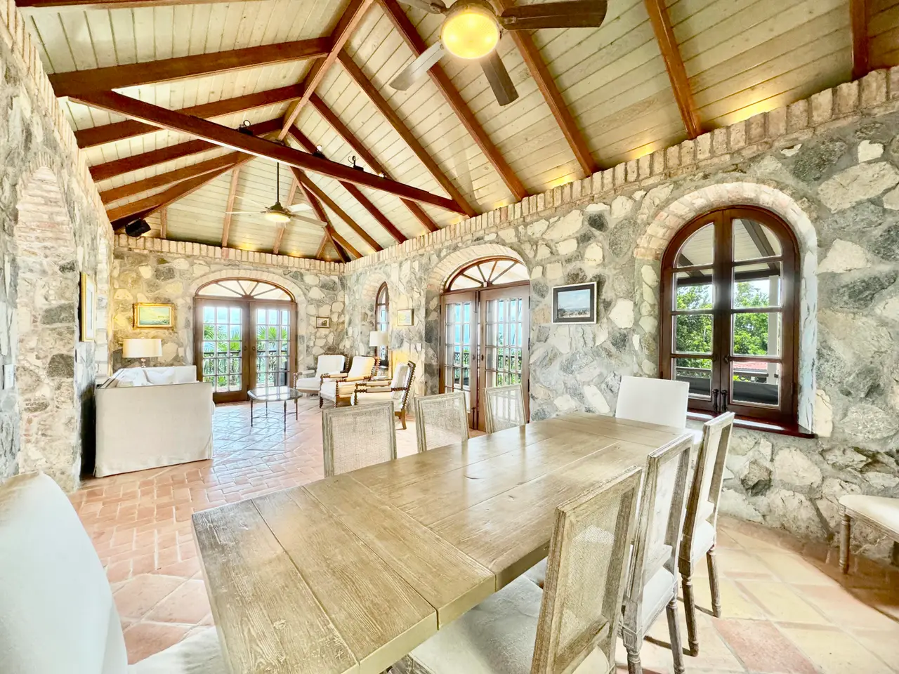 Prepare to be 'wow'ed by this magnificent Bordeaux Mountain villa. This expansive property encompasses a solid masonry home offering three bedrooms and three en suite bathrooms, and a three bedroom, two bathroom cottage. Perfect for large families, this home boasts a fully remodeled kitchen with top of the line stainless steel appliances, a jacuzzi, swimming pool, and a pool entertainment room. The stone work throughout the home is a work of art. The property's serene location offers beautiful views of Coral Bay and down island, while facing east to capture the cooling trade winds. This gated compound features two separate structures, ample parking, and is only seven minutes from Maho Bay, the North Shore Beaches, and the Virgin Islands National Park. Make this villa an investment property or family home!