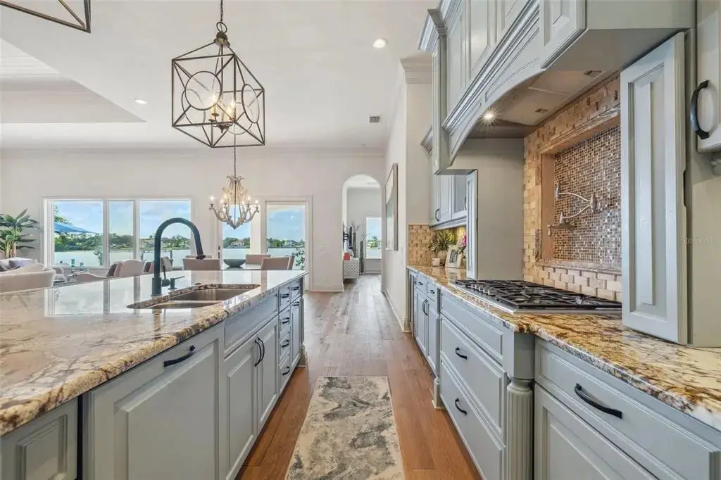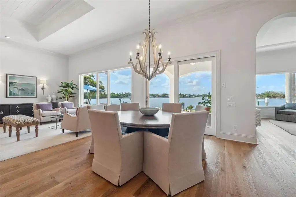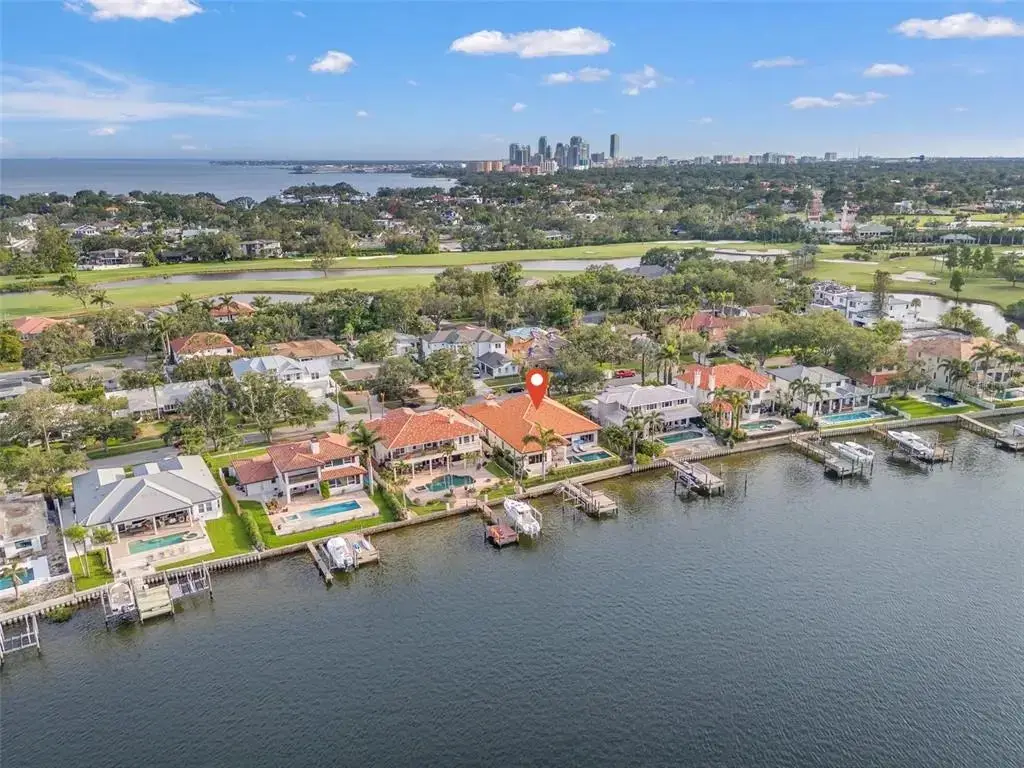Experience coastal elegance and luxury living at its finest at 301 Bayview Drive NE, nestled on the shores of Smacks Bayou in the exclusive Snell Isle neighborhood of St. Petersburg. Elevation is 9.8 and sustained NO WATER INTRUSION in recent storms. Built by Andrew Vecchio in 2015, this exceptional waterfront residence offers superior craftsmanship, timeless finishes, and a flexible floor plan designed for modern Florida living. Enjoy sweeping water views the moment you step inside. Soaring 10–12 ft ceilings throughout the home create an airy, open atmosphere, enhanced by gorgeous engineered hardwood flooring, custom designer lighting, and upscale finishes. The main living space is anchored by a stunning gas fireplace and filled with natural light from oversized windows and glass doors. The chef’s kitchen is a showstopper—featuring top-of-the-line Thermador appliances, a gas cooktop, pot filler, wine refrigerator, pantry, stone countertops, and an oversized island with bar seating—perfect for gathering and entertaining. Enjoy your private waterfront oasis with a heated saltwater pool, spa, covered lanai, outdoor kitchen, and private dock. Whether you're hosting sunset dinners or launching paddleboards from your backyard, this home was built for the Florida lifestyle. The private primary suite is a serene retreat offering panoramic water views, dual walk-in closets, and a spa-inspired en suite bath with dual vanities, a freestanding Jacuzzi soaking tub, and a glass-enclosed walk-in shower. Each guest bedroom includes its own en suite bath, providing comfort and privacy for family and guests. A unique highlight of this home is the separate casita/in-law suite—attached yet completely private with its own entrance, walk-in closet, and full bath. It’s ideal for multi-generational living, a dedicated home office, home gym, or studio. Additional features include a spacious laundry room, 3-car garage with high ceilings for extra storage or lift installation, and a circular brick driveway that enhances curb appeal. Located minutes from vibrant downtown St. Pete, yet tucked away in a peaceful enclave, 301 Bayview Drive offers the best of both worlds—quiet luxury living with world-class dining, culture, and shopping just moments away.