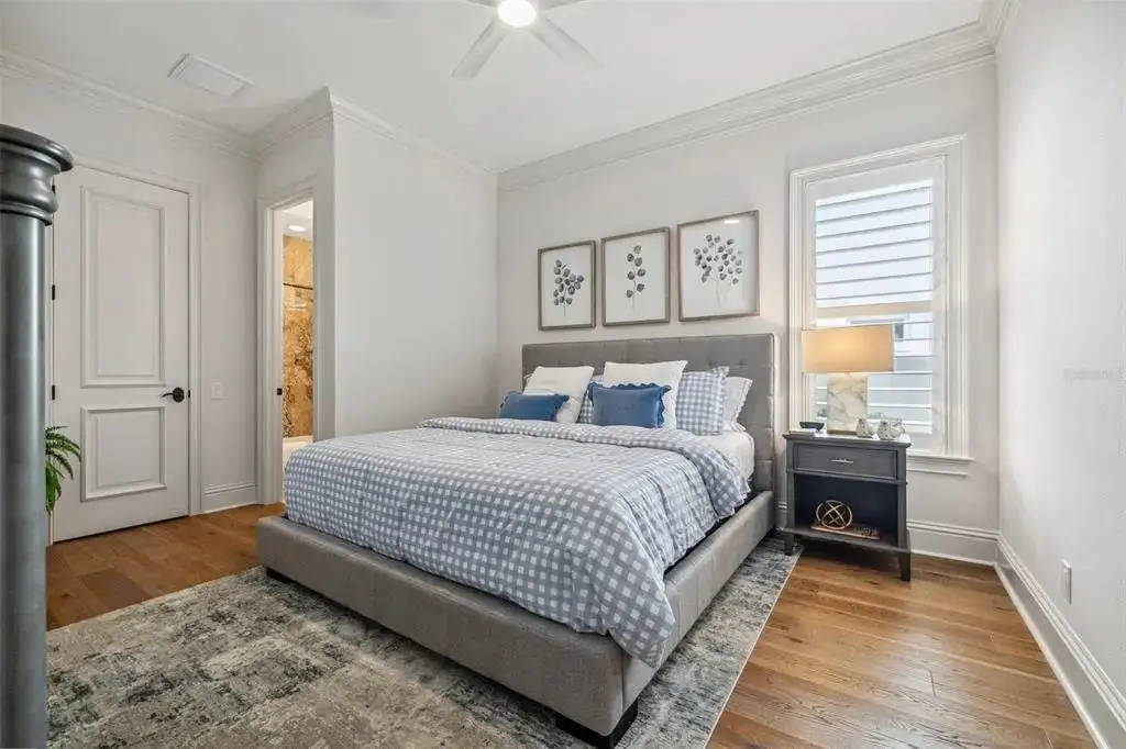 Soaring 10–12 ft ceilings with gorgeous engineered hardwood flooring