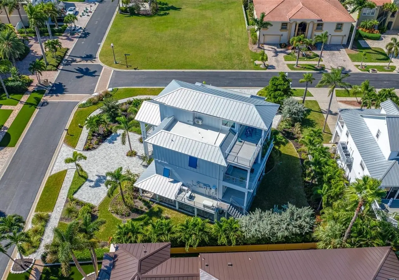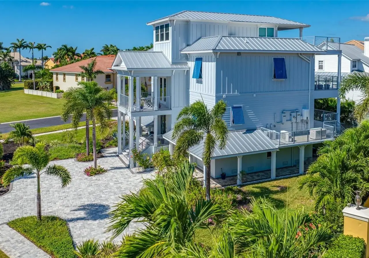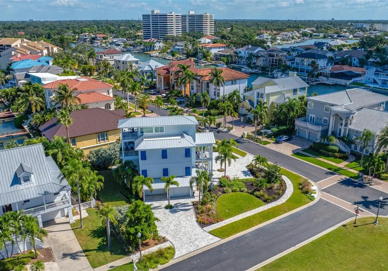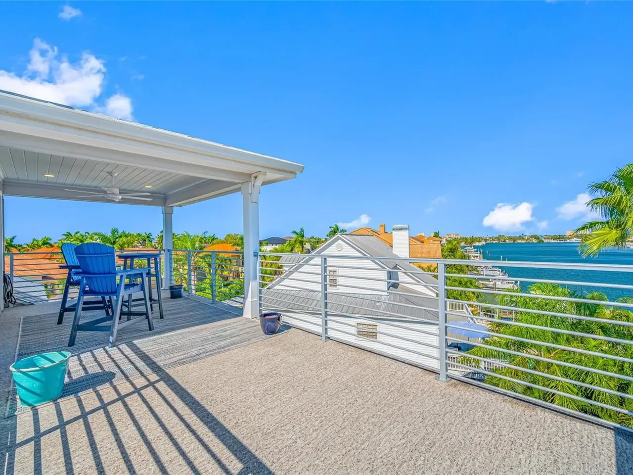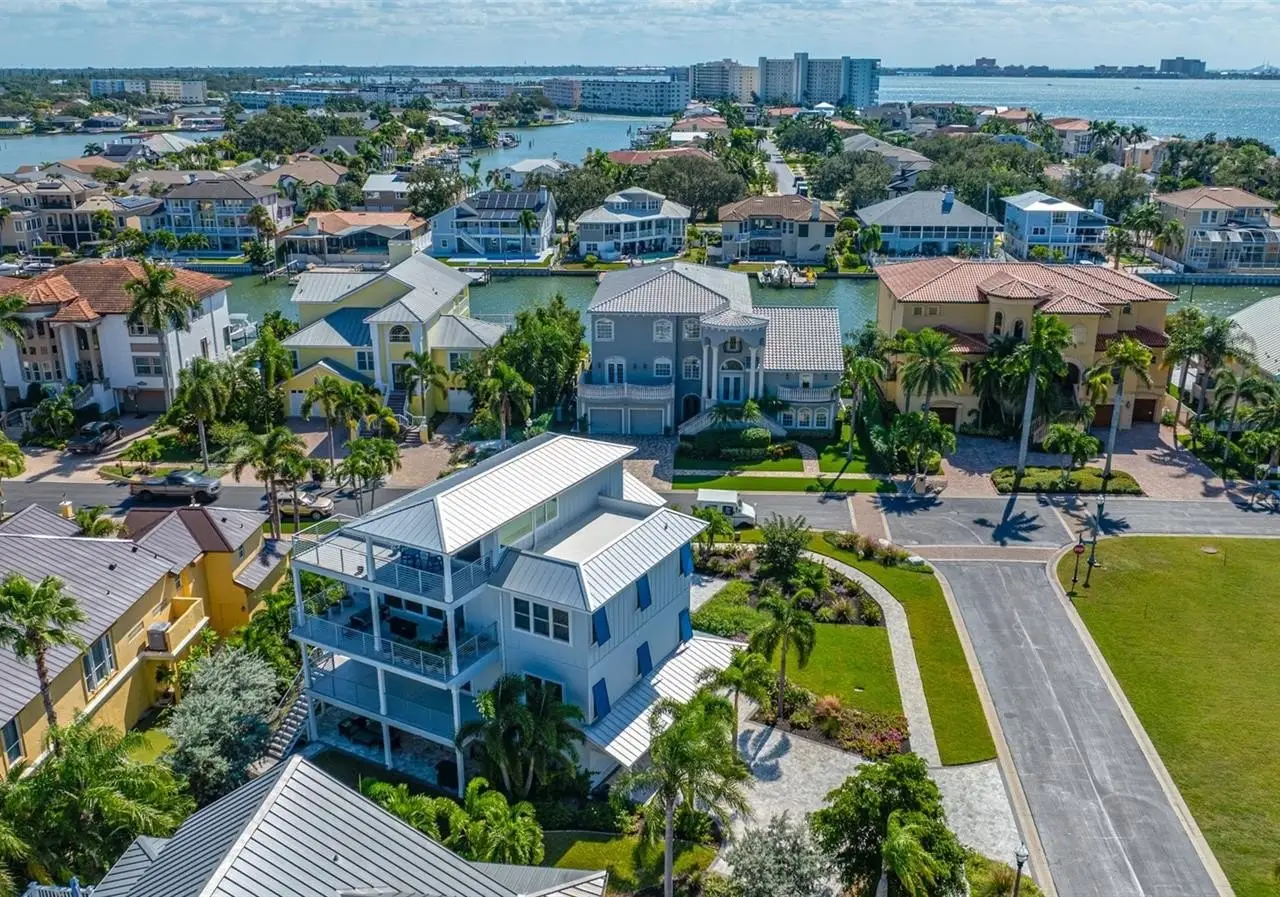 Welcome to this exceptional elevated Key West style 4-bedroom, plus rooftop bonus room, 4-bathroom, 4 car garage custom-built residence with breathtaking views of Boca Ciega Bay, in the prestigious gated Pasadena Yacht & Country Club. The home was completed December 30th 2021 to the highest coastal construction standards and thoughtfully designed to capture the panoramic and coastal views, while offering luxurious living across four levels, which are all serviced by a residential elevator. The grand staircase leads to the main entry with double front doors, setting the tone for the elegance and craftsmanship found throughout. On the first living level, you'll find three spacious bedrooms, including one with its own ensuite, a shared bathroom, a family room or study, and a laundry room. The 2nd living level features a large master suite with ensuite, an open-concept great room with surround sound, dining area, chef’s kitchen with pantry, and a guest bath. Crowning the home is a versatile Cupola on the 3rd level, perfect as an office, guest room, or entertainment area to soak in coastal views, spectacular sunsets, and holiday firework displays. This top-floor retreat is cooled by a dedicated mini-split AC unit. All floors have large balconies. The epoxy-coated garage level accommodates 4 cars plus a golf cart, includes a workshop area, hanging storage shelves, and is pre-wired for EV charging (3 vehicles). This home is packed with high-end features, including but not limited to: York high efficiency, low decibel cooling and heating pump, Lorex security cameras system, all house generator 22kw Generac (propane), 4 level residential elevator, all custom build wood cabinetry with Quartz countertops, automatic rainbird irrigation system via inground well, smart appliances, 250 gl inground propane tank and so much more. The home sustained NO flood damage during the 2024 hurricanes, underscoring its superior construction and resilience. Located within the serene, park-like Pasadena Yacht & Country Club, residents enjoy exclusive access to a world-class golf course, junior Olympic-sized pool, poolside bar/cafe, clubhouse restaurant, fitness center, tennis & pickleball courts, and private marina with boat slips (membership required). The charming coastal town of Gulfport is just a 15-minute walk away, offering boutique shopping, dining, and a popular weekly market. The home also enjoys convenient access to I-275, connecting you quickly to Tampa or Sarasota airports, Fort De Soto National Park, and the pristine beaches of St. Pete, Madeira, and Clearwater. This is more than a home, it's a lifestyle of coastal luxury, comfort, and community, perfect for families, retirees, and anyone seeking the best of Florida living.