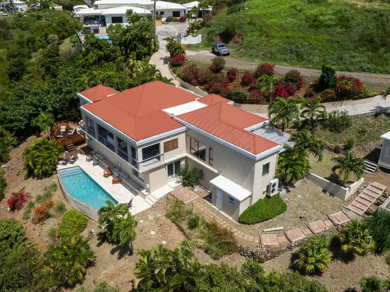 SPECTACULAR VIEW, AMAZING LOCATION! Welcome to your stunning slice of paradise in St. Thomas, where luxury meets island living. Nestled atop a lush hillside, this exquisite 4-bedroom, 3.5-bath residence offers breathtaking panoramic views of the crystal-clear Caribbean Sea. Enjoy dinner and drinks from your covered deck or relax by the pool. This home offers it all. The home also has the option to have one of the bedrooms as a separate apartment/caretaker unit/nanny quarters. Villa Solaris was remodeled in 2020 with gorgeous finishes including a new gourmet kitchen boasting top-of-the-line Thermidor appliances, sleek marble countertops, and custom cabinetry. Conveniently located near the newly opened the Westin Resort, pristine beaches, and the cruise ship dock.