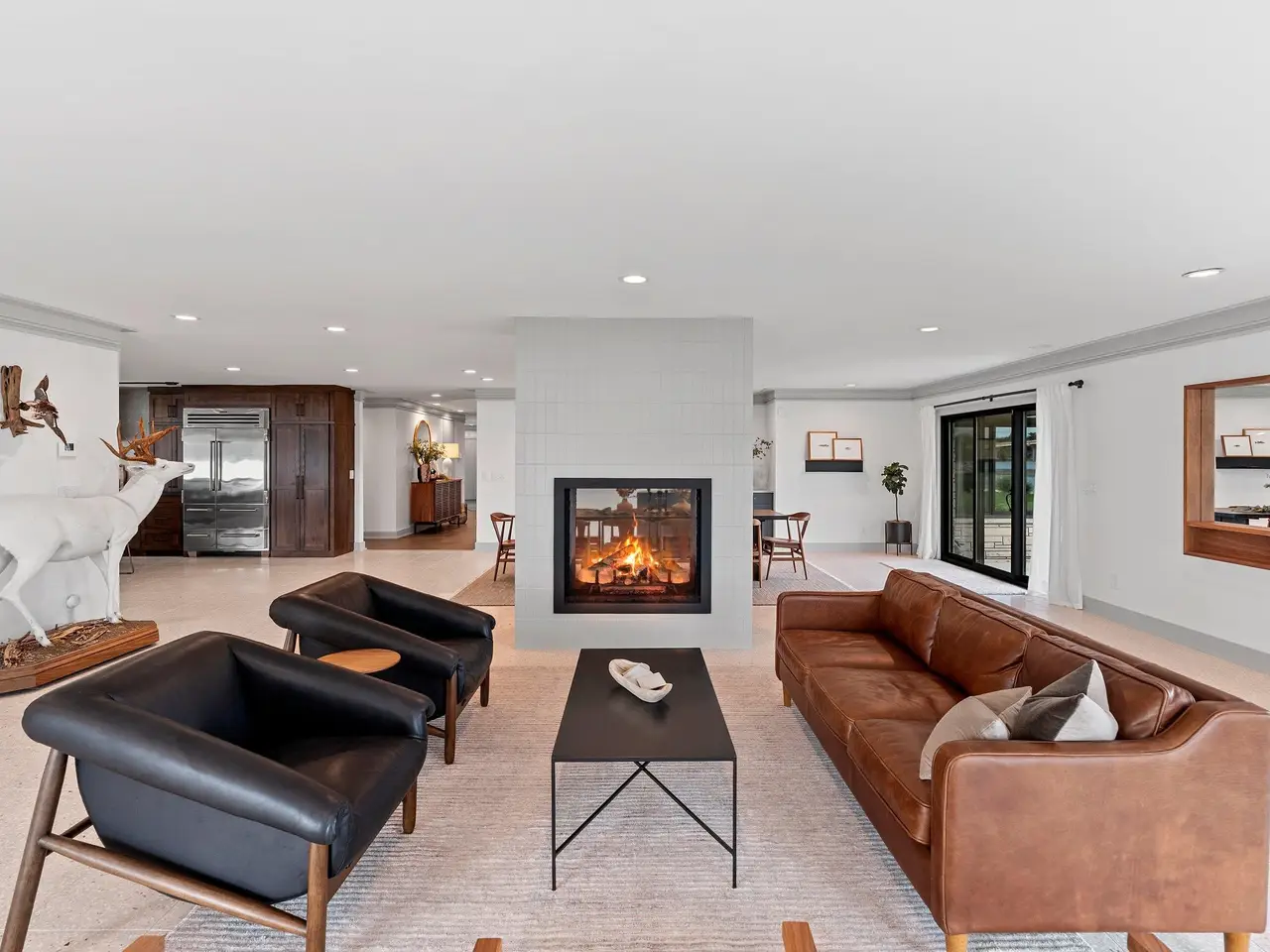 Exceptional waterfront property with nearly 600' of meandering frontage in a park-like setting offering incredible privacy and boating access to both Lake Michigan & the Green Bay. 100' deep water pier with 30/50 amp power & newly engineered seawall offers your own private marina. The 7,500 sq ft architectural gem has been rebuilt from the ground up with the finest details including all natural stone & designer tile surfaces, Gucci wallpaper, slate & hardwood flooring, elevator, and complete home surveillance and smart control system. Primary retreat consist of two walk in closets, coffee bar, and spa-like bathroom. Covered outdoor kitchen and bar with gas grill, kegerator, fireplace and entertainment center. Elegantly furnished/turn-key.