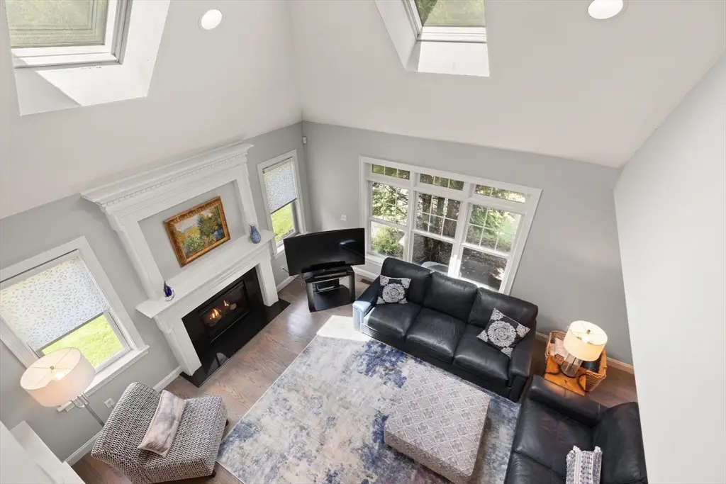 THIS IS A NON AGE RESTRICTED CONDO! SEE MLS#73448492 .Sophisticated, airy & bright end unit condo blending elegance & comfort. Perfectly positioned at the rear of the complex, this stunning 3 bedroom home enjoys tranquil views of conservation land. A soaring vaulted ceiling w/ skylight, gas fireplace, gleaming hardwoods, & refined moldings set the tone for quality throughout. The expansive kitchen features cherry cabinetry, stainless steel appliances, a peninsula, & an inviting eat-in area with sliders to the deck. The formal dining room shines with wainscoting & a custom bar w/ glass-front cherry cabinetry, ideal for entertaining. A 1st floor office w/ tailored built ins provides an inspiring workspace. Upstairs includes 3 spacious bedrooms, including a luxurious primary suite, plus convenient second floor laundry. The finished walk out lower level with full bath expands the living space, perfect for a media room, guest suite, or gym. Two car garage and prime Sudbury location!