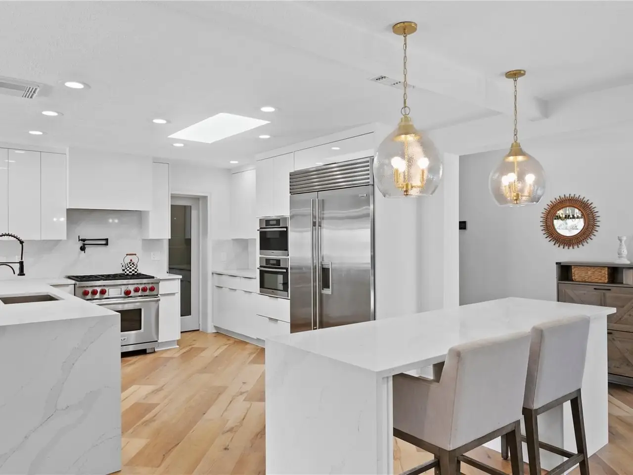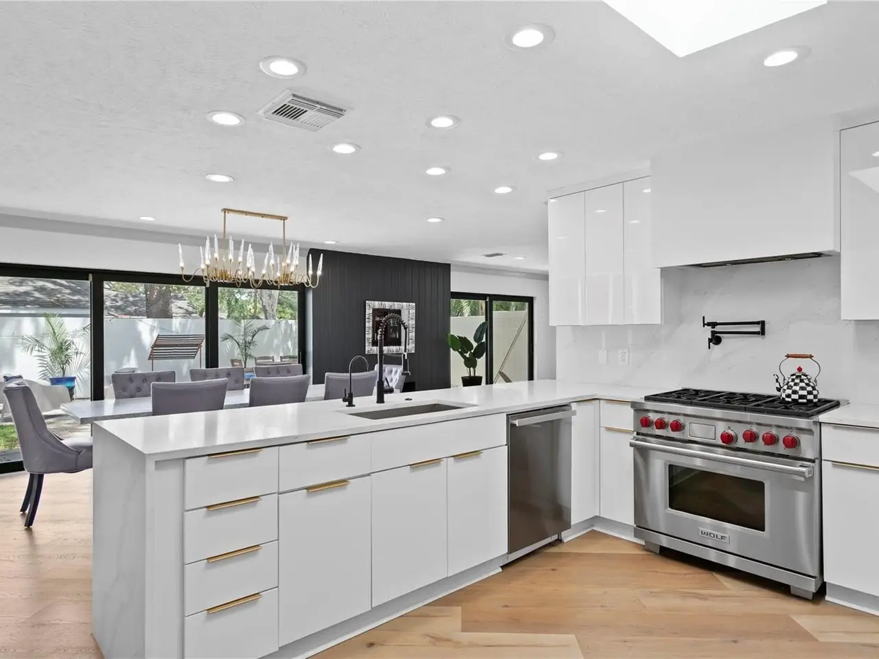 Under contract-accepting backup offers. Welcome to your dream oasis in the coveted BEACH PARK neighborhood of South Tampa! This prime spot puts you just minutes from Tampa International Airport and the vibrant downtown scene, featuring Amalie Arena, the Straz Center, and the Riverwalk. For sports enthusiasts, Raymond James Stadium, home of the Tampa Bay Buccaneers, is also nearby. Plus, the beautiful shores of Clearwater Beach are just a short drive away. This beautifully remodeled SINGLE-STORY pool residence features 5 bedrooms and 4 luxurious bathrooms. Constructed with durable block and elevated at 11 feet, it has experienced NO STORM DAMAGE and sits on an expansive QUARTER-ACRE LOT, ensuring unparalleled privacy. Step inside to elegant luxury flooring and an open living concept filled with natural light from expansive windows sliders and skylights. The inviting main living area boasts a gas fireplace, perfect for cozy gatherings. Culinary enthusiasts will love the chef’s kitchen, equipped with top-of-the-line SUBZERO, WOLF, and Miele appliances, including a six-burner gas range and a butler’s pantry with exquisite QUARTZ countertops. A versatile family room and an additional bedroom that can serve as an office offer added flexibility. The spacious principal suite features stunning courtyard views, vaulted ceilings, and a luxurious bathroom with a custom double vanity, soaking tub, and walk-in shower. The laundry room includes a dedicated dog bathing station for your furry friends.Step outside to the inviting POOL area, complete with a HEATER for year-round enjoyment, and an extensive outdoor space ideal for entertaining. Modern conveniences include SMART HOME FEATURES, a two-car garage EQUIPPED FOR ELECTRIC VEHICLES, and ample parking space. Experience the best of both worlds—serene suburban living and convenient access to the vibrant lifestyle Tampa has to offer!