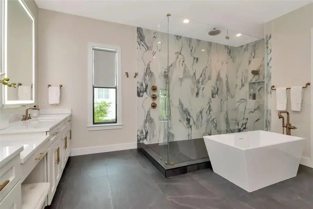 Luxury Living in the Heart of Swann Estates Experience elevated living in this newly constructed 5-bed, 4.5-bath custom home by Momentum Homes, featuring 4,597 sq ft of designer-curated interiors, a sparkling pool + spa, and zoned for A+ schools (Grady, Coleman, Plant). Built with solid block on both levels and outfitted with impact-rated Low E windows, this home blends timeless architecture with modern efficiency. Inside, enjoy wide-plank white oak flooring, custom wood cabinetry, and a chef’s kitchen with Thermador appliances, 48” gas cooktop, quartz island, butler’s pantry, and mudroom. The open-concept layout includes a spacious family room with a statement gas fireplace, private office, and media room. A first-floor guest suite offers en-suite bath and pool access. Upstairs, the luxe primary suite boasts an oversized walk-in closet and spa-style bath with freestanding tub and frameless glass shower. Professionally landscaped with a brick-paver driveway, covered patio that features a grill with skin and refrigerator as well as resort-style backyard—this home is an unmatched opportunity in one of South Tampa’s most prestigious neighborhoods. Please note that this home did not have flood damage from hurricanes in 2024.