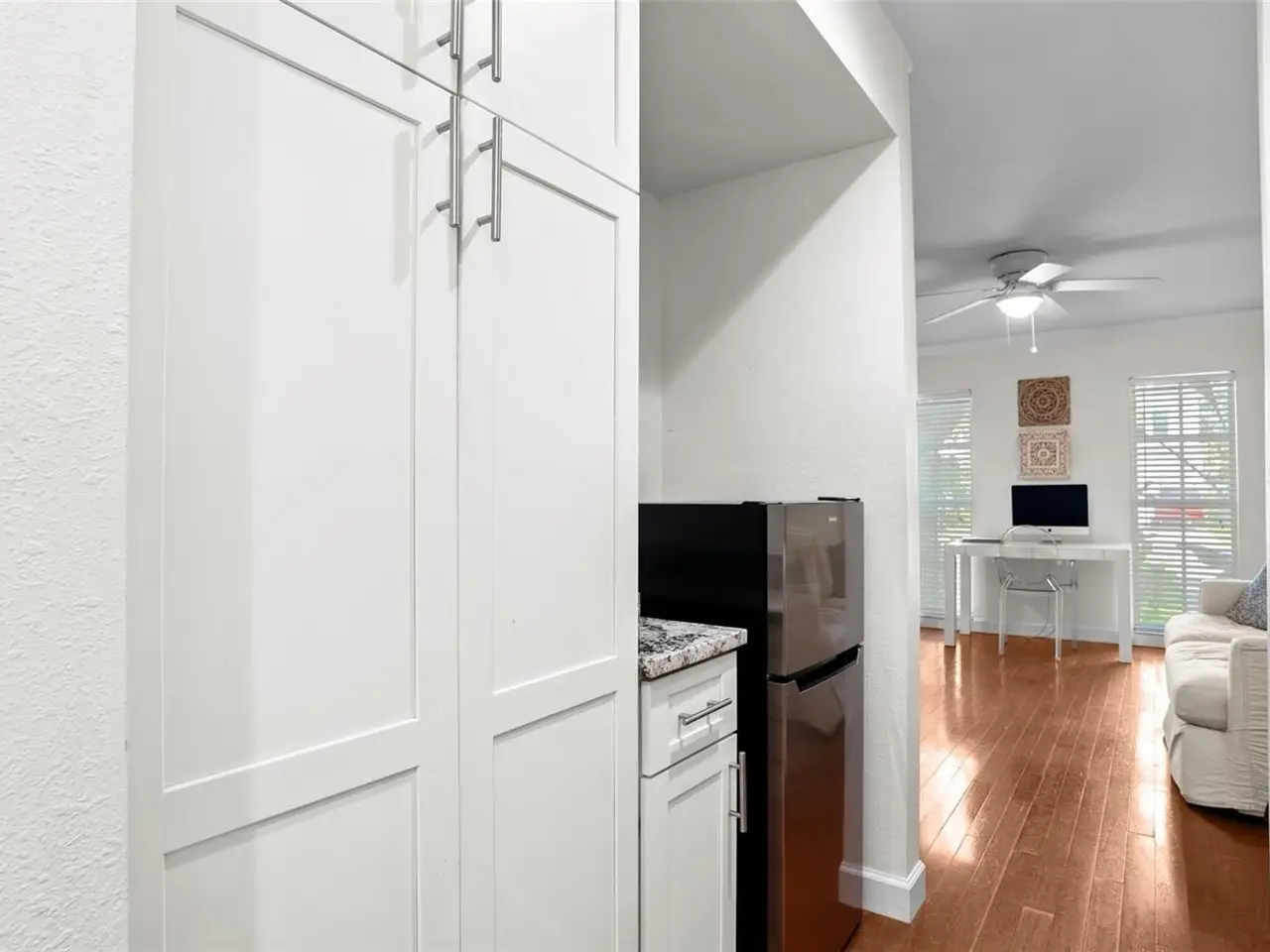 • Updated kitchen with white cabinetry