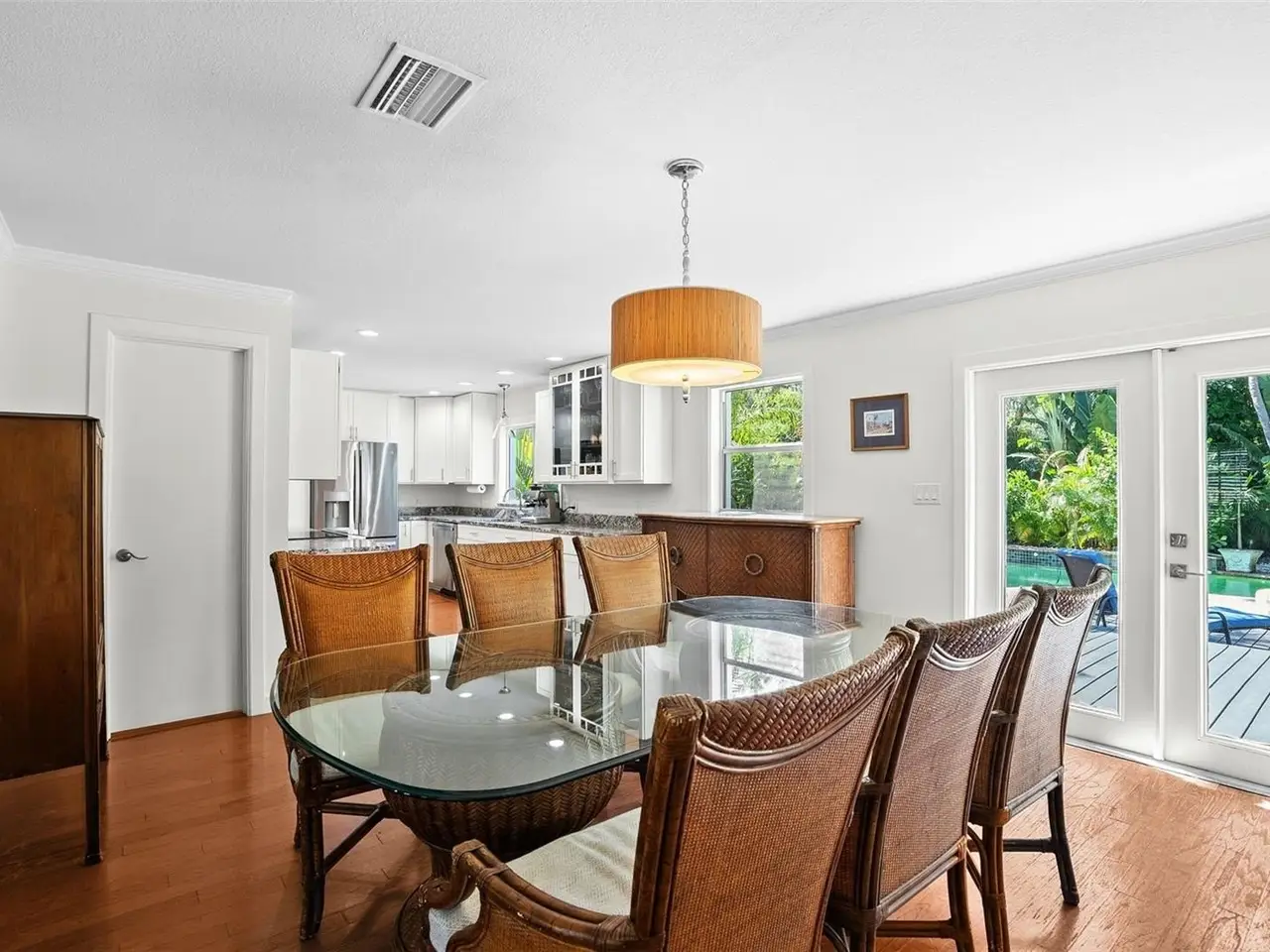 • French doors opening to outdoor living area