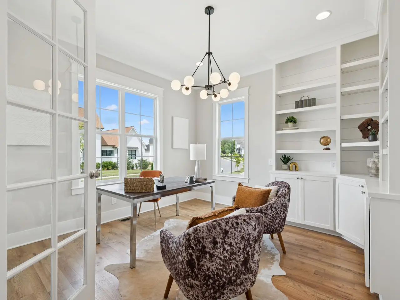 Discover the epitome of southern elegance in this expansive 5,000+ sq ft stunner, boasting 5 bedrooms and 4.5 baths in the heart of Thompson's Station. Perfectly designed for entertainers, the open-concept floor plan seamlessly connects a luxurious chef's kitchen--complete with high-end appliances and custom cabinetry--to the inviting living and hearth rooms, creating an ideal space for gatherings large and small. A grand formal dining room and dedicated home office add versatility, while gleaming finished hardwoods span the entire main level. Tastefully-selected fixtures and finishes exude timeless southern charm throughout!Step through the stately four-panel sliding glass doors from the main living area to your private outdoor oasis, featuring a cozy fireplace for al fresco evenings. Inside, two additional fireplaces provide warmth and ambiance. The fully fenced backyard offers ample space for play or relaxation, backing onto a serene common area lined with mature trees for added privacy.Conveniently located just a short stroll from Sarah Benson Park, Company Distilling, and Circa restaurant, this home combines luxury living with unbeatable accessibility. Don't miss your chance to own this stunning retreat--schedule a showing today!