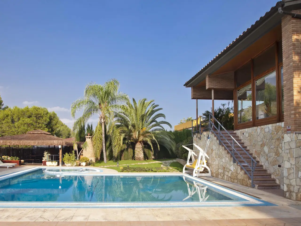 This unique property is located in Santa Apolonia, one of Valencia's most prestigious residential areas. The complex has 24hr. security and an exceptional social club with a pool and restaurant. The villa was built by one of Spain's most prominent construction companies using solid cement and unbeatable handwork. Even the finishes of the property are of premium quality. It's important to highlight the excellent indoor and outdoor carpentry as well as the underfloor heating system. Set on a 2.000 square-meter plot, this house comes with a beautiful garden, a huge pool and an outdoor dining area. Inside, there is a large kitchen, a huge living room, a spacious dining area, six bedrooms and seven bathrooms between the main house and guest/personnel apartment. The master bedroom is a stand-out feature of the property and occupies an entire floor with a terrace that provides spectacular views. It's also key to highlight the size and practicality of the kitchen, sufficient to cater for an entire family. The lift also allows the house to feel cosy and comfortable to live in despite it's imposing size. The basement consists of parking spaces, storage areas and a guest/personnel apartment. There is also an impressive 200m2 rustic and traditional style wine cellar, the perfect area to spend time with family and friends. The complex has a social club, 24 hour security and access to public transport links. It can be found just 20 kilometres away from the city of Valencia, a kilometre away from the city of Torrent and close to a variety of amenities such as schools and leisure facilities.
