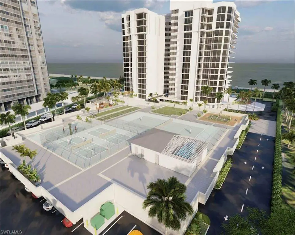 Experience Unparalleled Beachfront Luxury. Discover the ultimate coastal retreat in this stunning 10th-floor end unit at La Mer, located in the prestigious Park Shore community. This light-filled 2-bedroom, 2-bath condominium boasts breathtaking panoramic Gulf views, an open-concept design, and a seamless blend of comfort and elegance. Offered turnkey, this residence is your opportunity to embrace the beachfront lifestyle you've always dreamed of. This thoughtfully designed home features floor-to-ceiling windows and an oversized balcony, inviting natural light and endless vistas into every corner. The spacious living area is perfect for entertaining or relaxing to the sound of soothing waves. The gourmet kitchen showcases stainless steel appliances, quartz countertops, a glass backsplash, a breakfast bar, and abundant counter space for culinary creations. The luxurious master suite offers a private retreat with breathtaking views, a walk-in closet with custom cabinetry, a frameless glass shower, and a separate soaking tub. For added convenience and peace of mind, the unit is equipped with electric hurricane shutters, ensuring effortless lock-and-go living. La Mer has recently completed an impressive building renovation, elevating its appeal and offering unmatched amenities. Residents enjoy a beachfront pool and spa deck with all-day sun thanks to its south-facing orientation, a rooftop sunset deck (under renovation), a fitness center, tennis courts (under renovation), grilling stations, and a private walking path along the beach edge. Pickleball courts are coming soon, as highlighted in the stunning renovation renderings, making this property even more appealing. Unique to La Mer are its three exceptional guest suites available to residents: a luxurious rooftop suite, a comfortable hotel-style suite, and a spacious 2-bedroom guest suite perfect for hosting family and friends in style. Additional conveniences include an extra storage room conveniently located near the elevators. Nestled in the heart of Park Shore, this home is steps away from the pristine sands of the Gulf of Mexico and across the street from the fine dining and boutique shopping of Venetian Village. Enjoy proximity to cultural hotspots like Artis Naples, Waterside Shops, Mercato, and 5th Avenue South. This is your chance to secure a sought-after Park Shore address and enjoy luxurious coastal living at its finest. Move in today and savor the upcoming unveiling of La Mer's beautifully reimagined spaces.
