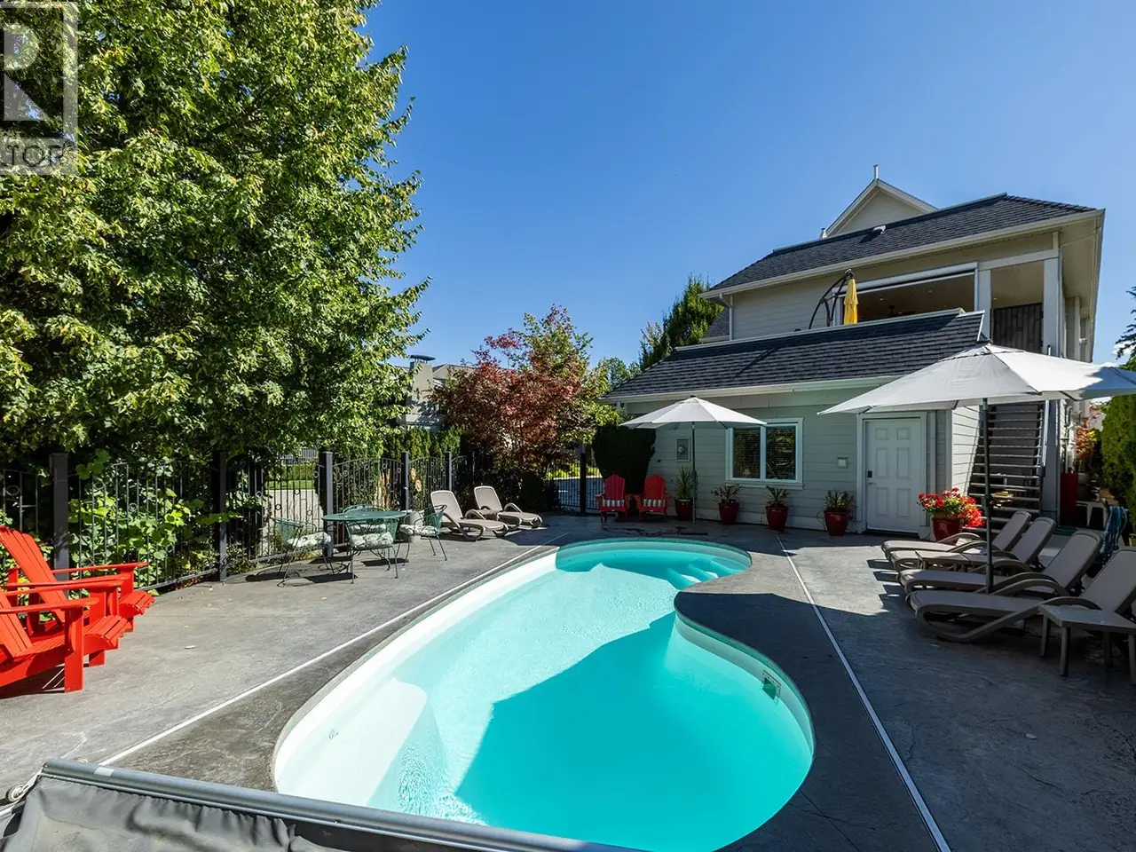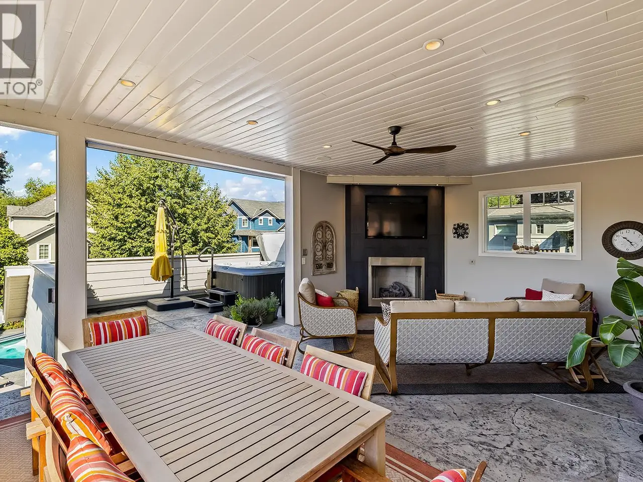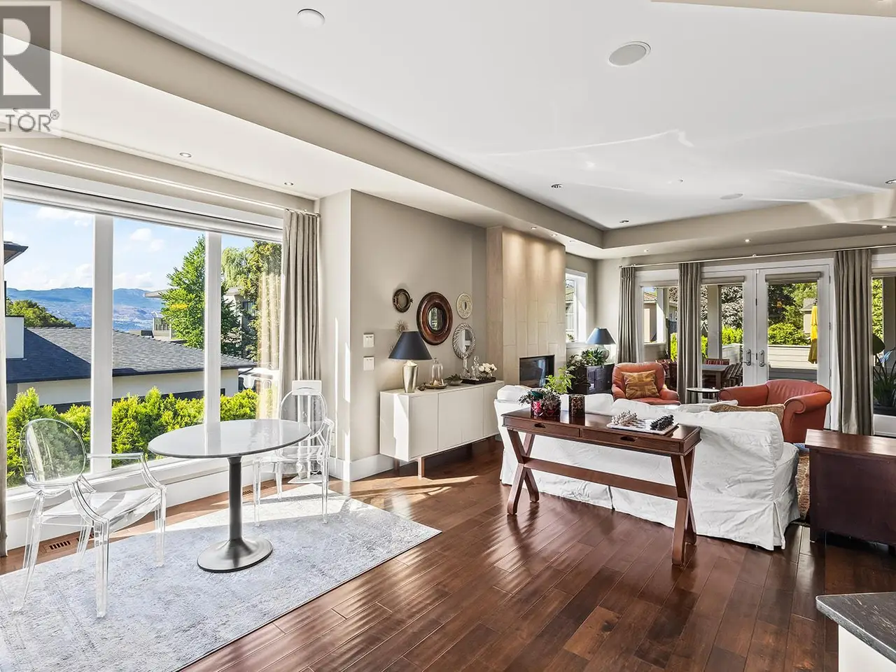 Welcome to luxury living on highly desirable Abbott Street! Combining timeless elegance with modern functionality, a spacious layout and impeccable finishes throughout. The grand double-storey foyer, embraces you with under-floor heated tile, soaring vaulted ceilings, and an abundance of natural light. An elevator, enhances accessibility and convenience. The ground level is perfect for guests or multi-generational living, featuring a private suite with kitchenette, sitting room and garden courtyard access, ideal for in-laws or Airbnb. An office, home theatre, laundry, and pool bathroom round out this level. The main floor chef’s kitchen with premium appliances and pantry, a great room with gas fireplace, two bedrooms with a shared bathroom, powder room, dining area, and a full wet bar with a dishwasher, wine and beverage fridges is an entertainer’s dream. Step outside to a stunning lounge and dining area with gas fireplace, TV, phantom screens, and hot tub. The top floor is an indulgent primary retreat with a spa-inspired marble bathroom, dressing room with laundry, private sitting area with fireplace, and a serene sun deck. Enjoy your secluded oasis with a UV pool, auto cover, and ample lounging space. A heated triple garage with additional storage completes this exquisite home. This freehold, bare land strata with private beach access has a low monthly strata $30 covering insurance for the common road. Ideally located near Pandosy Village, KGH, and the lake.
