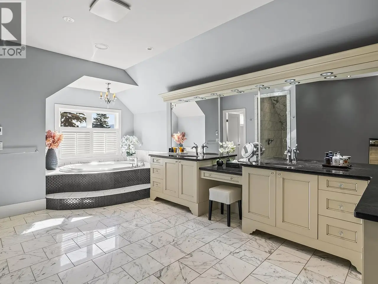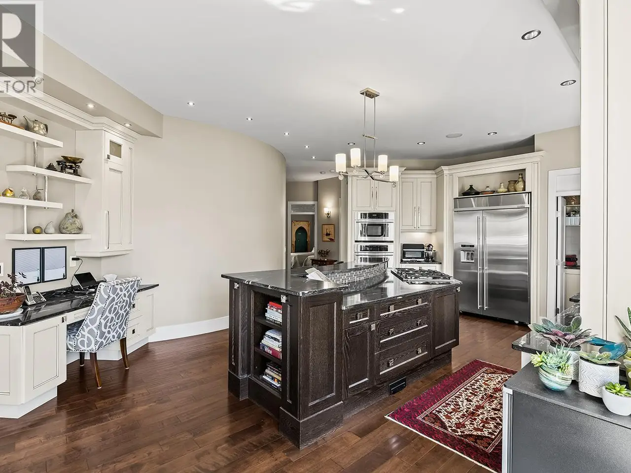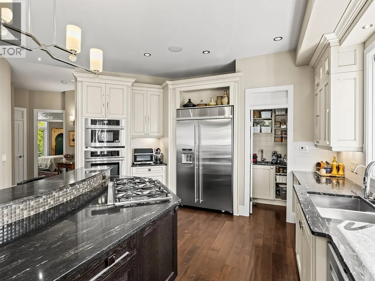 Welcome to luxury living on highly desirable Abbott Street! Combining timeless elegance with modern functionality, a spacious layout and impeccable finishes throughout. The grand double-storey foyer, embraces you with under-floor heated tile, soaring vaulted ceilings, and an abundance of natural light. An elevator, enhances accessibility and convenience. The ground level is perfect for guests or multi-generational living, featuring a private suite with kitchenette, sitting room and garden courtyard access, ideal for in-laws or Airbnb. An office, home theatre, laundry, and pool bathroom round out this level. The main floor chef’s kitchen with premium appliances and pantry, a great room with gas fireplace, two bedrooms with a shared bathroom, powder room, dining area, and a full wet bar with a dishwasher, wine and beverage fridges is an entertainer’s dream. Step outside to a stunning lounge and dining area with gas fireplace, TV, phantom screens, and hot tub. The top floor is an indulgent primary retreat with a spa-inspired marble bathroom, dressing room with laundry, private sitting area with fireplace, and a serene sun deck. Enjoy your secluded oasis with a UV pool, auto cover, and ample lounging space. A heated triple garage with additional storage completes this exquisite home. This freehold, bare land strata with private beach access has a low monthly strata $30 covering insurance for the common road. Ideally located near Pandosy Village, KGH, and the lake.