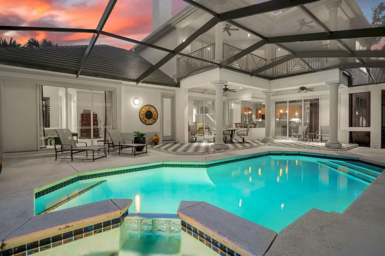 Beautiful custom home overlooking the lake in exclusive gated golf community of Regatta Bay. Featuring a BRAND NEW ROOF, this Sugar Beach Interiors designed home is also being offered furnished, minus a few small exclusions. It's also been very lightly used as it's been a second home for the last 17 years. Upon entering the home you will immediately notice the soaring 22 foot ceilings in the great room offering tons of natural light and the large enclosed lanai encompassing the private pool. The main level of the home features all three bedrooms, private office with built-in bookcases and French doors, formal den with gas fireplace, another living room off the kitchen, and the kitchen features a new GE Profile refrigerator, new dishwasher, and recently replaced oven. The kitchen also offers a large breakfast bar with pendant lighting, two sinks, a large walk in pantry, and a breakfast area overlooking the pool. The primary suite overlooks the pool and the primary bathroom offers a jacuzzi tub, large walk-in shower, and two walk-in closets. Also on the main level is a gorgeous formal dining room with custom cabinetry, wine fridge, and an ice maker. The pool and lanai are easily accessible through stacking glass pocket doors off the living room, formal den, as well as the primary suite. The attractive staircase with custom stainless steel railing takes you to the upstairs bonus loft with it's own full bathroom, as well as large balcony overlooking the pool and lake. Other features of this home include built-in surround sound, central vacuum, attractive landscape lighting, centrally monitored alarm system, floored attic space over the garage for extra storage, oversized garage with plenty of room for two cars plus a golf cart, and the home's exterior was completely repainted in the last several years. The home is located in Flood Zone X so flood insurance is not required. The golf cart is also included in the sale. Regatta Bay is Destin luxury living at its finest. Some of it's amenities include a 6,894-yard, par-72 course named one of Golf Digest's Top Places to Play in North America, clubhouse offers first-class dining, tennis courts, community pool, playground, and walking paths. There is a private gated entrance on the North side offering easy access by golf cart or car to the Destin Middle School, as well as Legendary Marine and Yacht Club! The Destin Commons Shopping Center as well as Whole Foods are easily accessible by golf cart without every having to get on Highway 98. And don't forget, the beach on Scenic Hwy 98 is just a mile away and is also accessible by golf cart! Buyer to please verify all information contained herein.