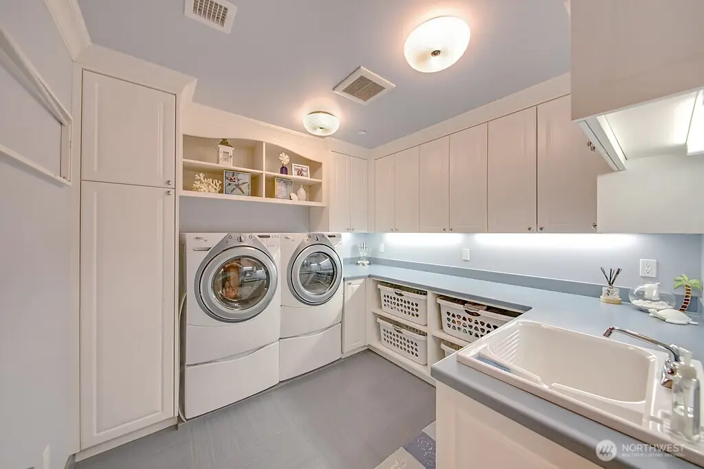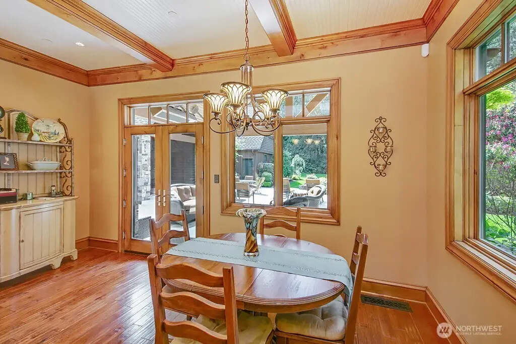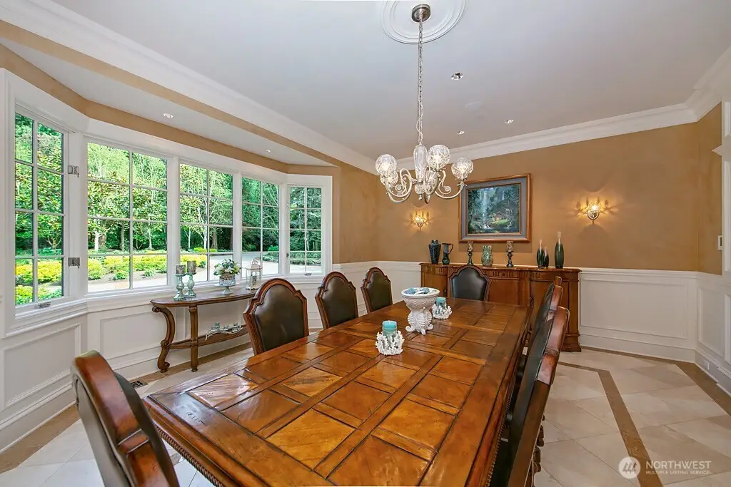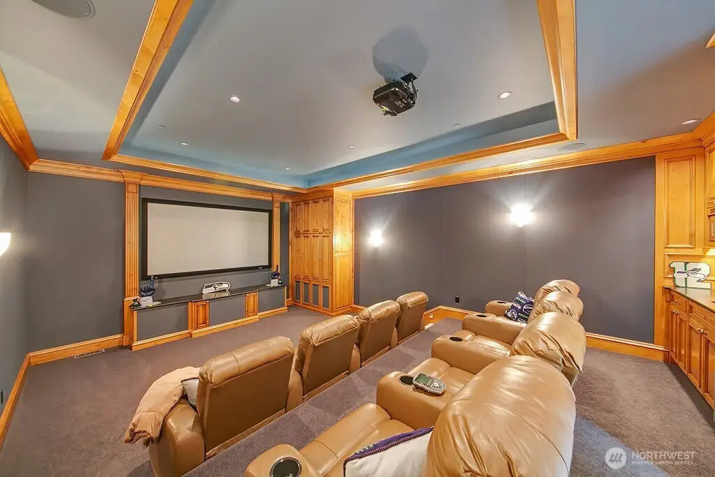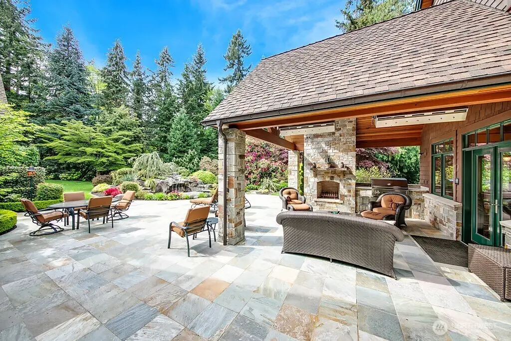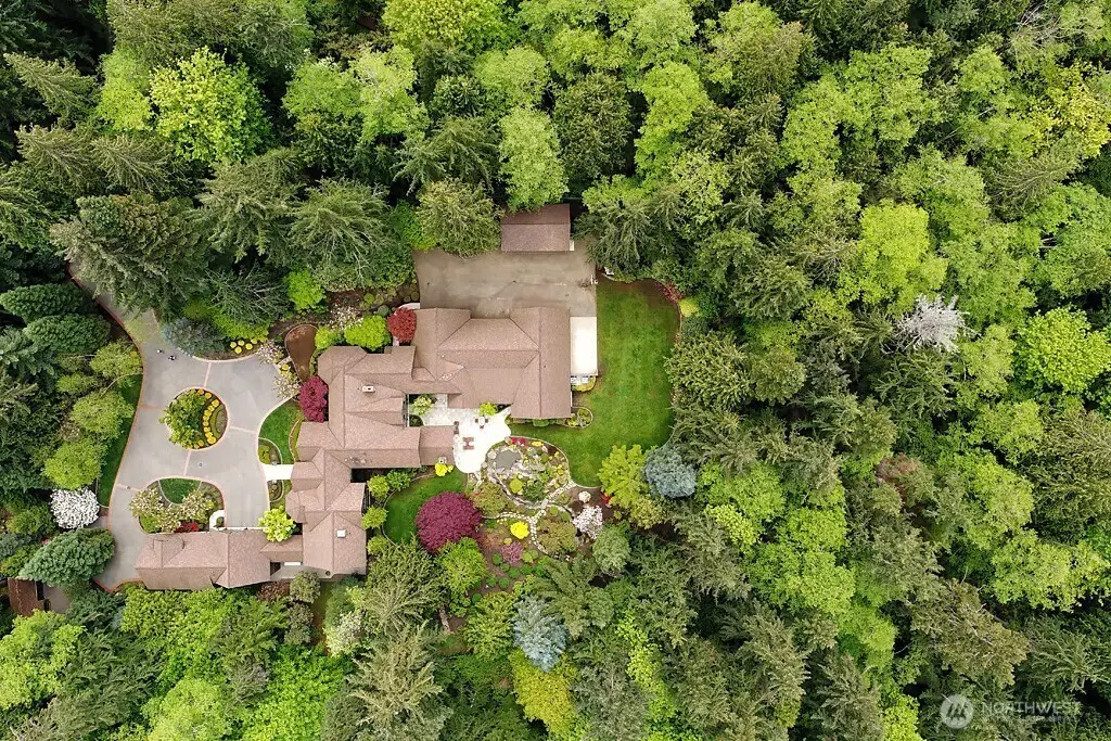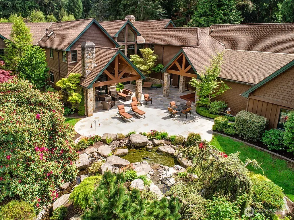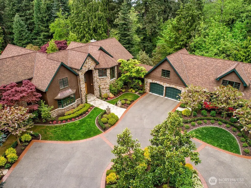Auto enthusiasts will be captivated by the world-class collector's garage, featuring 14 bays and an impressive showroom - just the beginning of the unmatched luxury this private gated estate offers. Set on 2.79 acres, the home seamlessly blends distinctive European architecture with the natural splendor of the Northwest. Meticulously crafted interiors showcase soaring cathedral ceilings and rich wood and stonework, echoing the region's rugged beauty. Step outside to a covered heated patio designed for year-round enjoyment, with a stone fireplace, hot tub and tranquil waterfall - complemented by a nearby steam room. Entertain in style with a billiards parlor, bar and home theater. Minutes from waterfront parks, I-5, downtown Edmonds and Seattle.