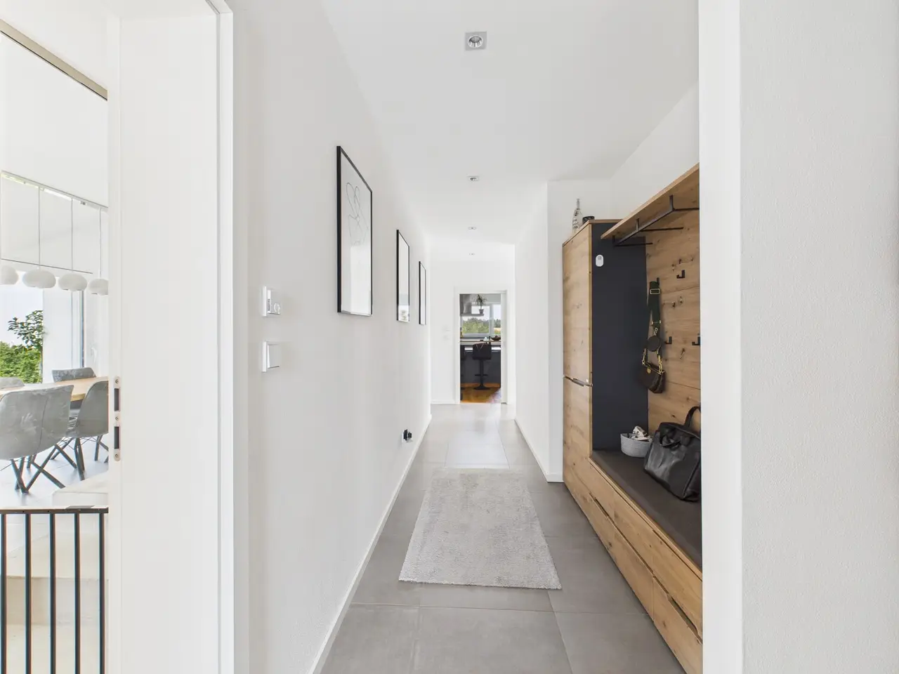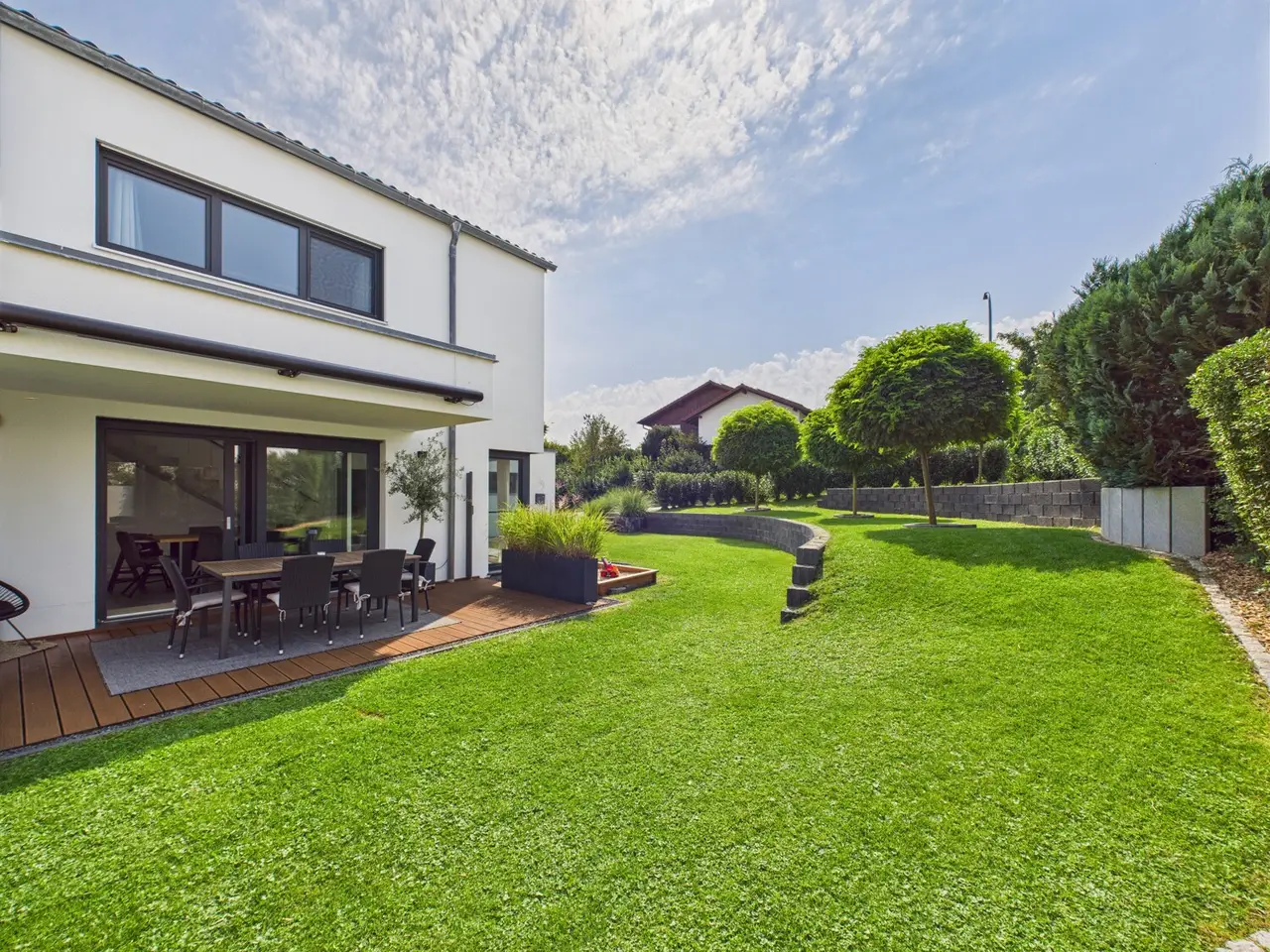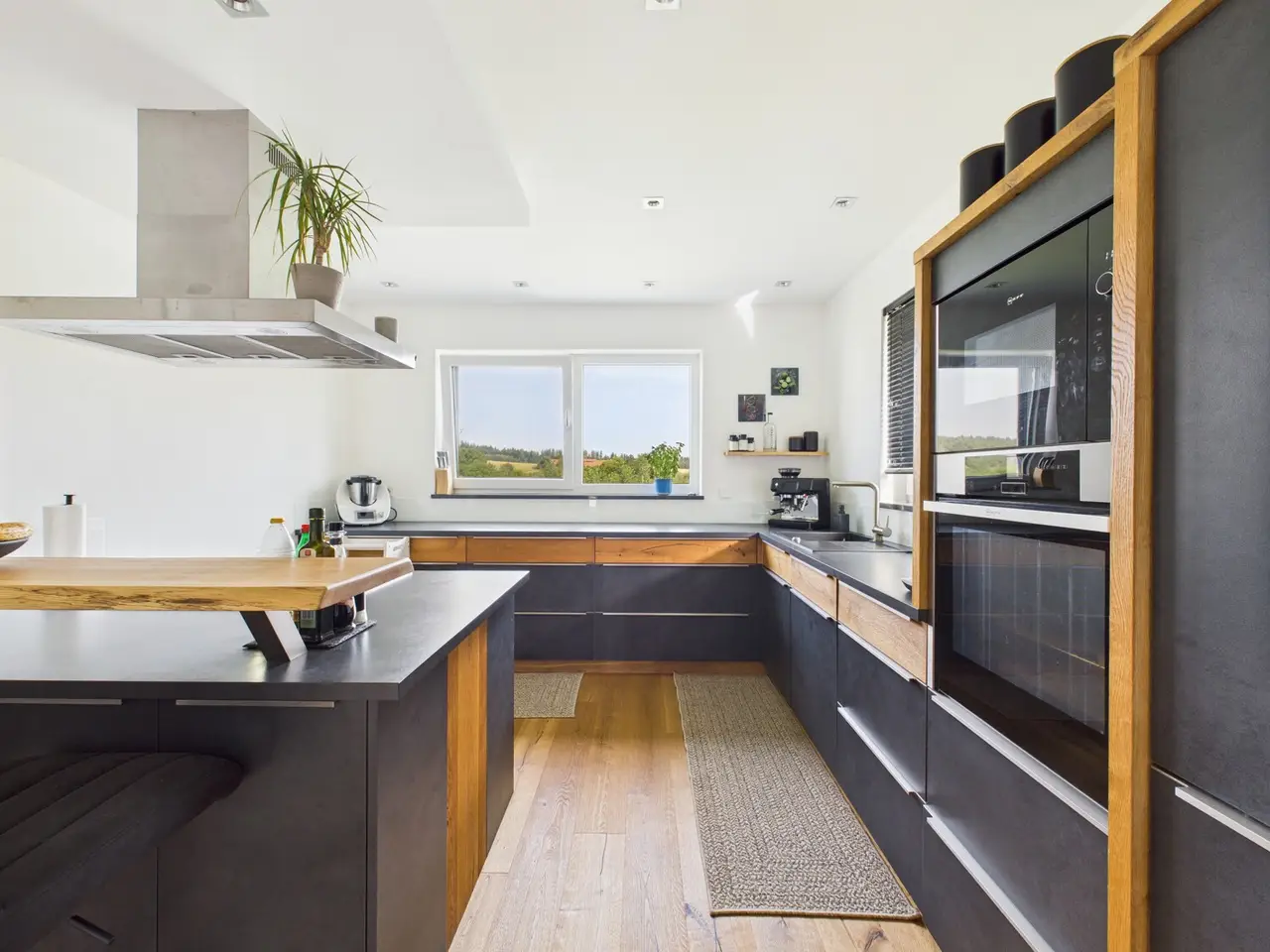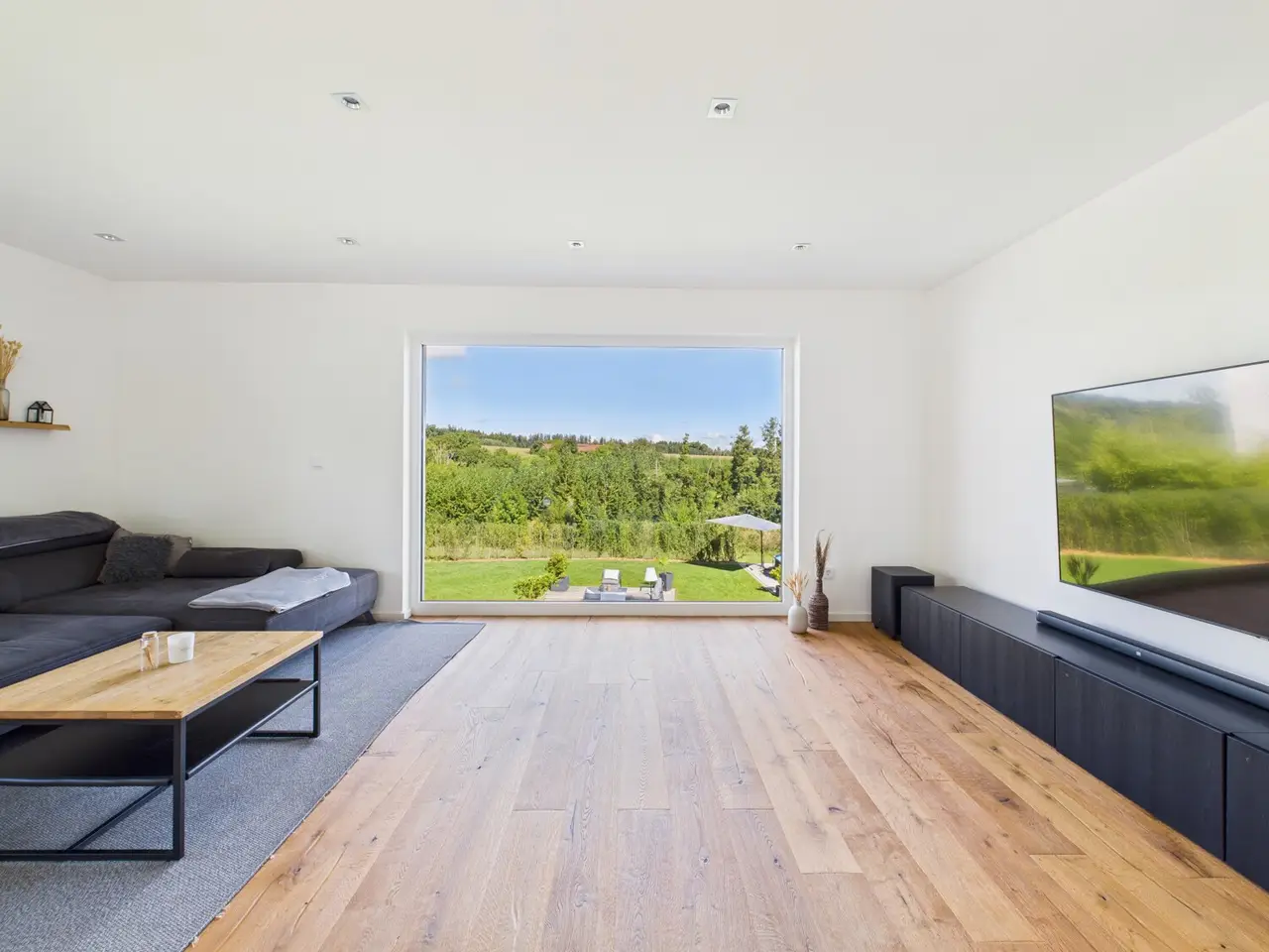 Modern living on the edge of the village - architecture meets nature On the idyllic edge of the village of Oberviehbach, this detached house built in 2020 is a real gem for sophisticated living. Nestled in a quiet, exposed neighborhood and surrounded by greenery, it combines modern living comfort with a quality of life close to nature. The living space of around 215 m² extends over three floors and offers space for the whole family. With 6 rooms, including 4 bedrooms, a guest WC and a stylish bathroom, the house meets the highest living standards. Large, floor-to-ceiling windows let in plenty of natural light and open up views of the spacious garden with over 1,028 m² of land. The fittings are impressive with their clear, high-quality architecture: an elegant fitted kitchen, a fireplace for cozy hours, modern bathrooms and triple glazing ensure upscale living. The house has a partial basement and offers plenty of storage space. It is heated sustainably using geothermal energy supplemented by wood - the energy certificate confirms the excellent efficiency class A+ with a final energy requirement of just 23.6 kWh/(m²a). The outdoor areas invite you to relax: Two sunny terraces and a stylishly landscaped garden with seating lounge make the outdoor area a real highlight. There are 2 garages and 2 outdoor parking spaces available for vehicles. This house combines modern architecture with a feel-good atmosphere and at the same time offers privacy, closeness to nature and a valuable neighborhood. An ideal home for families or couples who are looking for stylish living in a quiet location - and yet appreciate the proximity to Landshut and the main transport routes.