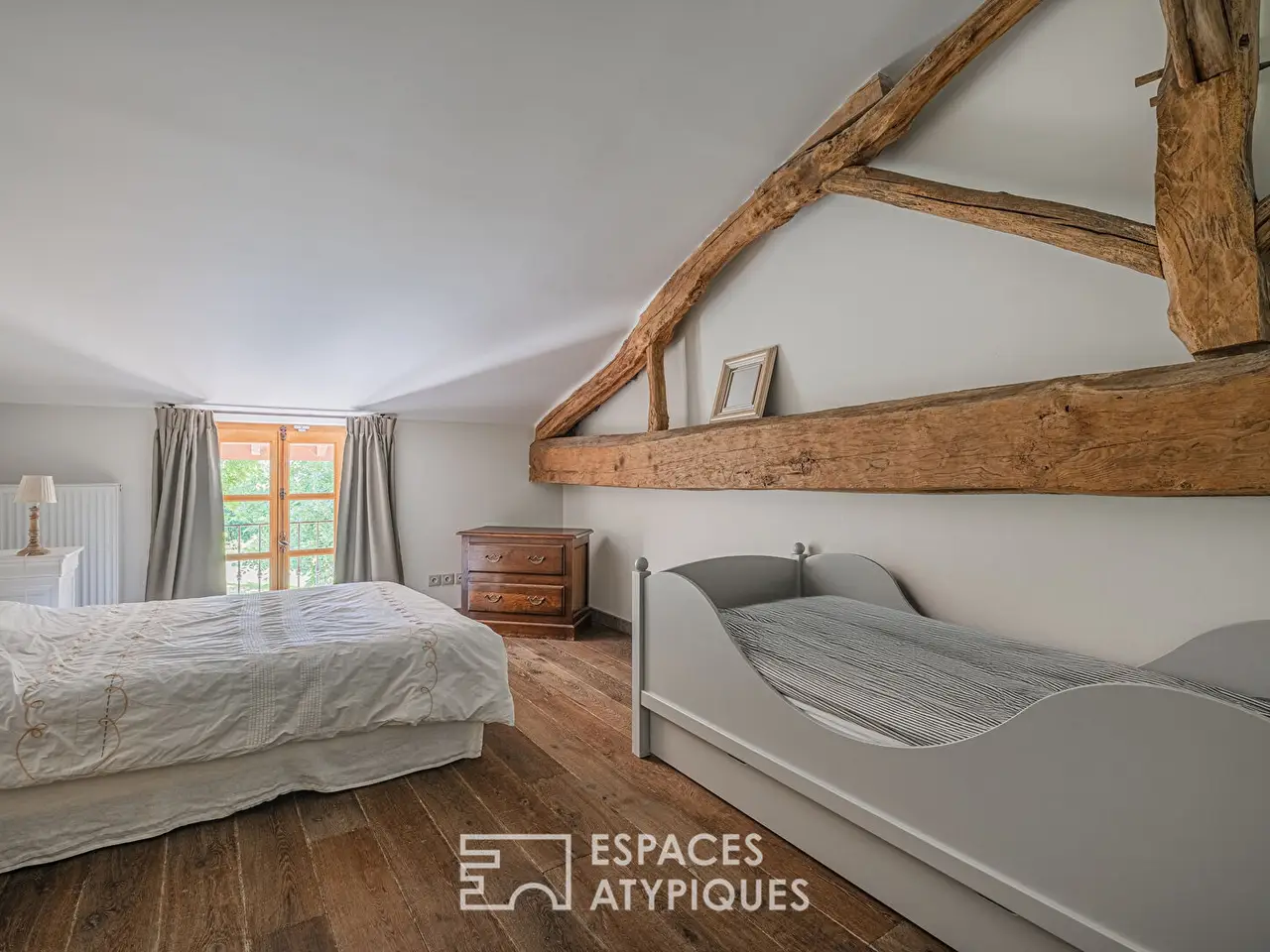 In Vourey, nestled on the heights near Charnecles, in the heart of a wooded and confidential environment, stands this old fortified farm from the beginning of the 19th century. A testament to the local heritage, enhanced by a recent complete restoration of very good quality, in a wooded and flat park of 3,400 sqm, this exceptional residence deploys 330 sqm of living space.Offering spectacular volumes and undeniable comfort, it perfectly combines authenticity and the art of living. A living space thought out down to the smallest detail, built with first-rate materials by outstanding professionals, complemented by magnificent exteriors and a beautiful 5 x 15 m swimming pool, this building offers a sober and refined habitat with harmonious colors in a privileged and natural setting.From the entrance, the majestic kitchen and its generous central island, with its double-height ceiling and its passageway in the background, stand out as the heart of the house. On either side, there is a reception room with a large glass roof overlooking the garden, and a cozy and intimate living room around the double-sided fireplace. Continuing on, the back kitchen, the semi-buried cellar, the technical areas and the toilets complete this level. The upper floor offers a first bedroom, an adjoining shower room and separate toilets, and connected by the elegant glass walkway, two other bedrooms as well as a future space to be imagined. The top level is dedicated to a spectacular master suite, open to the entire floor and revealing the traditional framework and its wooden planks. Bedroom, custom-made dressing room, office, shower room and toilet, skillfully distributed, make up this exceptional ensemble.Not to be outdone, the park and its two majestic trees watch over the property and provide the necessary shade to the large paved terrace. The heated swimming pool, slightly set back, blends into the landscape, offering views of the valley and inviting relaxation and contemplation. The parking lot, discreetly hidden by vegetation and enclosed by a pebble wall, allows parking.Combining historical character, impeccable restoration, and architectural harmony, this rare residence will seduce aesthetes in search of a unique property. Ideally located, between nature and proximity, proud and majestic in the center of its park, it will be an inevitable favorite.Information on the risks to which this property is exposed is available on the Georisques website: www.georisques.gouv.frREF. 1077EAGAdditional information* 7 rooms* 4 bedrooms* 2 shower rooms* Outdoor space : 3400 SQM* Parking : 4 parking spacesEnergy Performance CertificatePrimary energy consumptionc : 138 kWh/m2.yearHigh performance housing*A*B*138kWh/m2.year21*kg CO2/m2.yearC*D*E*F*GExtremely poor housing performance* Of which greenhouse gas emissionsc : 21 kg CO2/m2.yearLow CO2 emissions*A*B*21kg CO2/m2.yearC*D*E*F*GVery high CO2 emissionsEstimated average annual energy costs for standard use, indexed to specific years 2021, 2022, 2023 : between 3100 € and 4280 € Subscription IncludedAgency feesThe fees include VAT and are payable by the vendorMediatorMediation Franchise-Consommateurswww.mediation-franchise.com29 Boulevard de Courcelles 75008 ParisInformation on the risks to which this property is exposed is available on the Geohazards website : www.georisques.gouv.fr