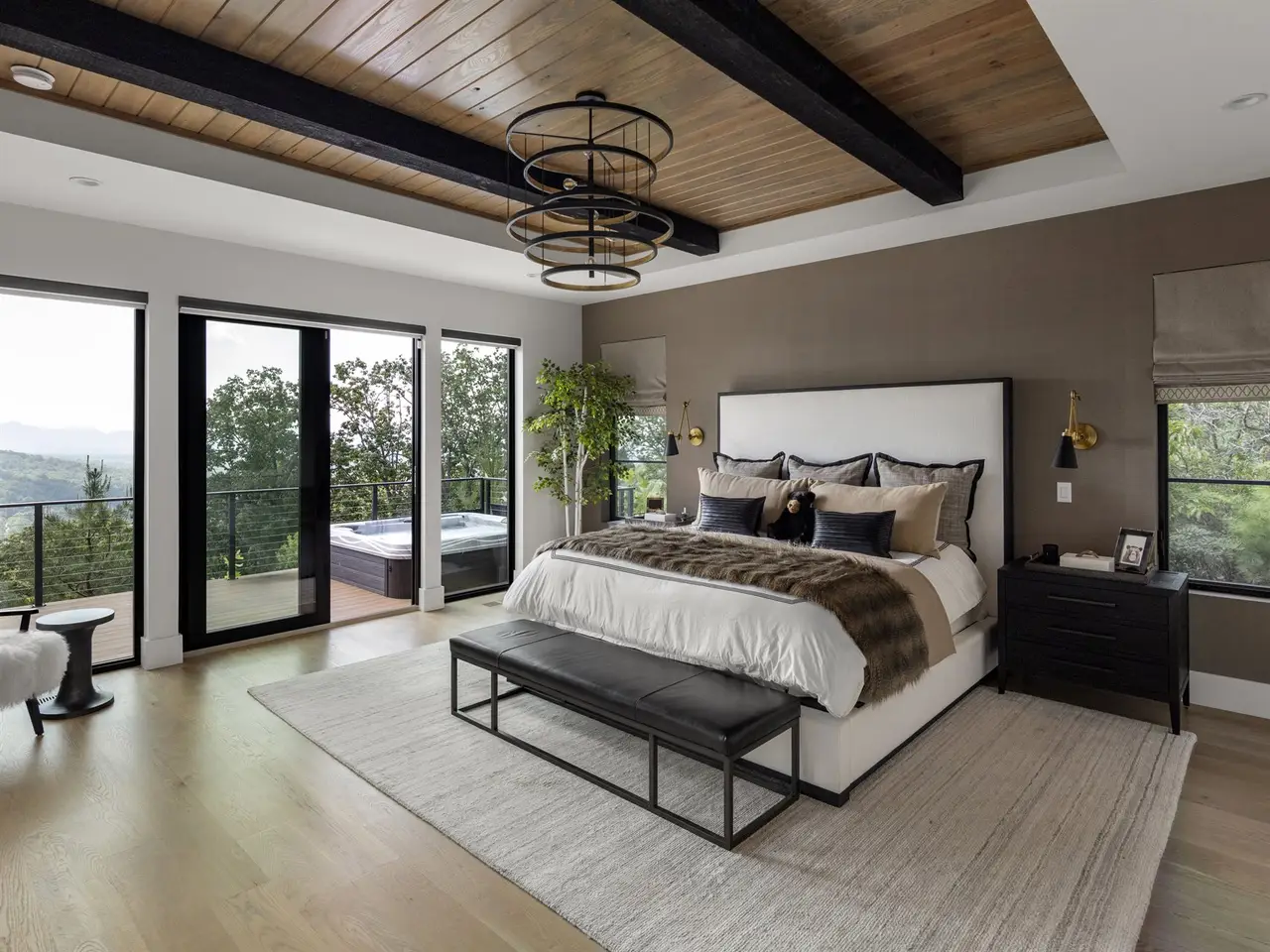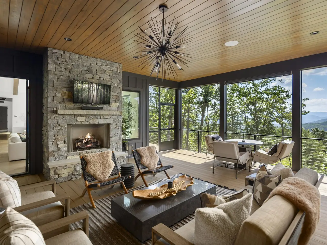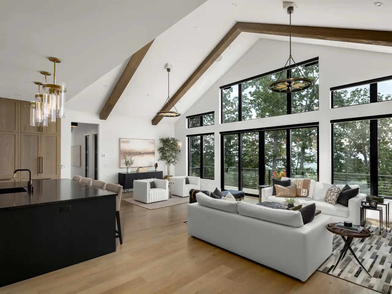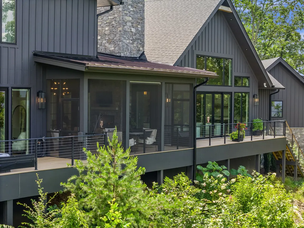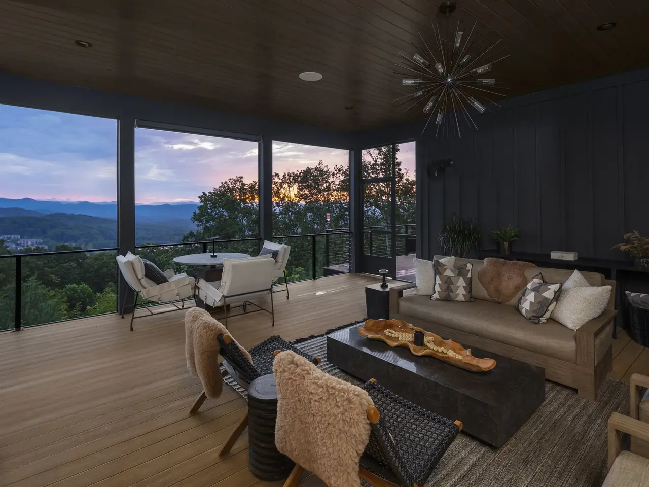 Set on over two private and gated acres, this mountain modern residence defines refined luxury. Built by an award-winning Parade of Homes builder and perfectly sited to capture long-range views of South Asheville and the Blue Ridge Mountains, the home offers complete privacy while just two miles from groceries, fitness, and conveniences. Featuring main-level living and green-built efficiency, it's an ideal primary residence or effortless second home. Floor-to-ceiling windows fill the interiors with natural light and frame breathtaking mountain views. Open living areas flow seamlessly to outdoor spaces for entertaining or a quiet retreat. With three bedrooms and three-and-a-half baths, this home blends craftsmanship, comfort, and style while creating a private, sustainable, and elegant mountain sanctuary.