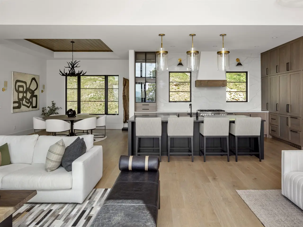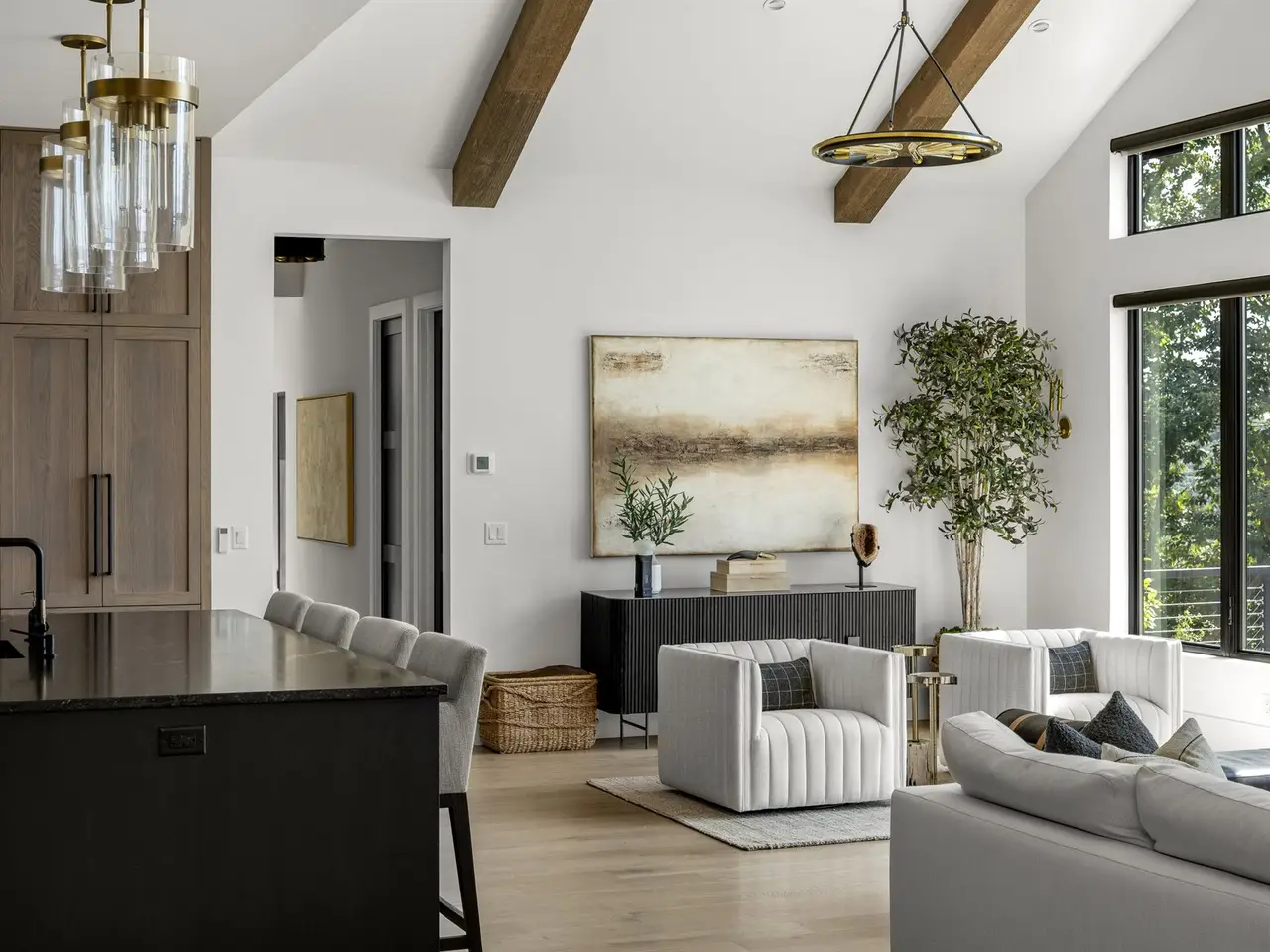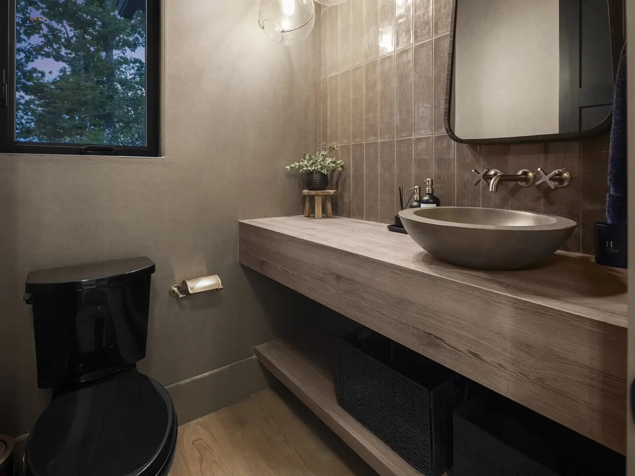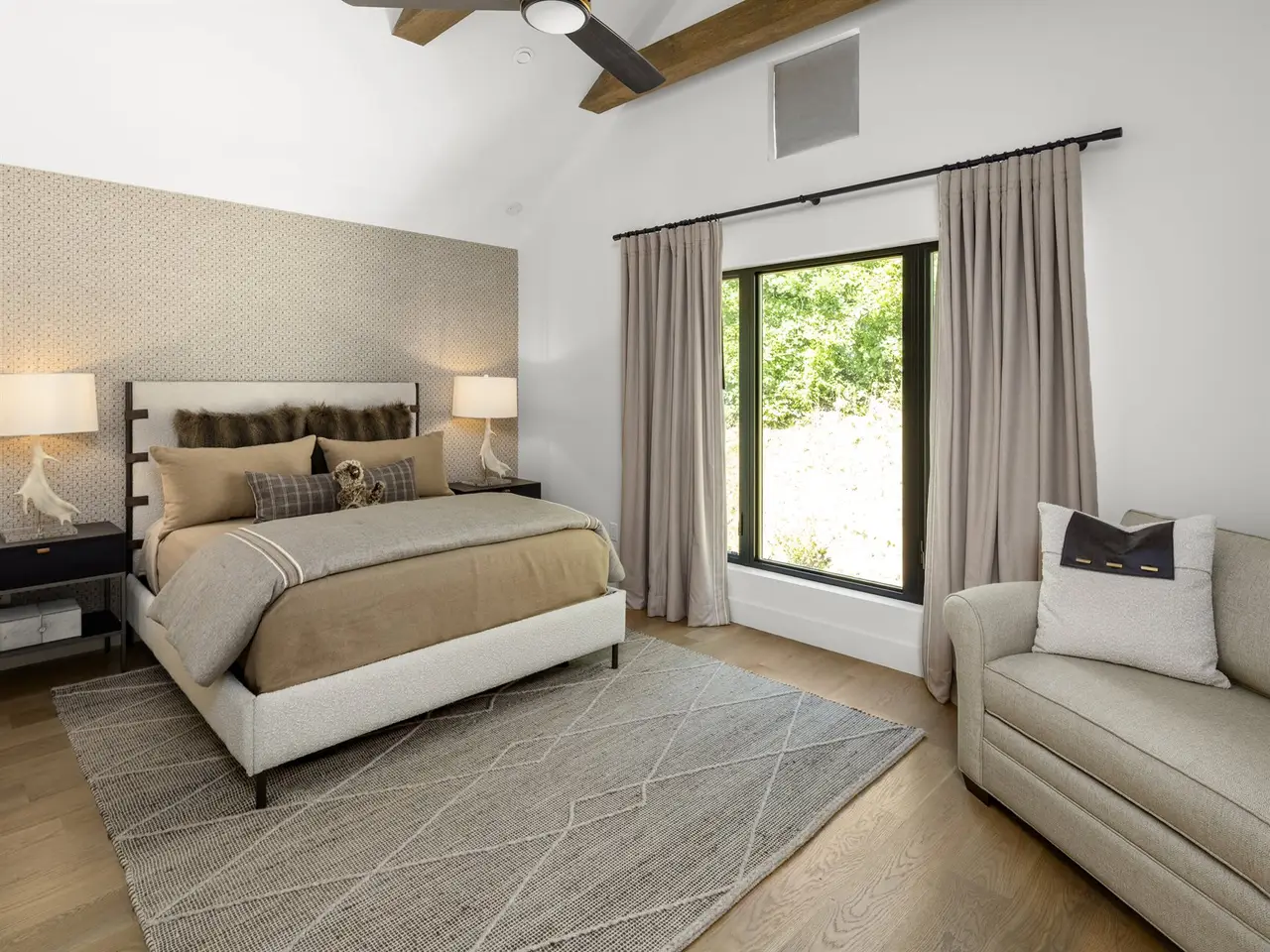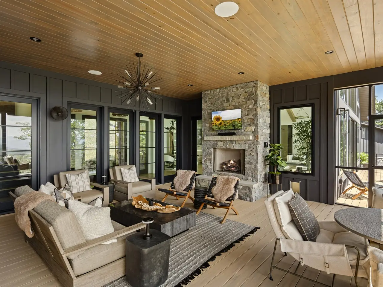 Set on over two private and gated acres, this mountain modern residence defines refined luxury. Built by an award-winning Parade of Homes builder and perfectly sited to capture long-range views of South Asheville and the Blue Ridge Mountains, the home offers complete privacy while just two miles from groceries, fitness, and conveniences. Featuring main-level living and green-built efficiency, it's an ideal primary residence or effortless second home. Floor-to-ceiling windows fill the interiors with natural light and frame breathtaking mountain views. Open living areas flow seamlessly to outdoor spaces for entertaining or a quiet retreat. With three bedrooms and three-and-a-half baths, this home blends craftsmanship, comfort, and style while creating a private, sustainable, and elegant mountain sanctuary.