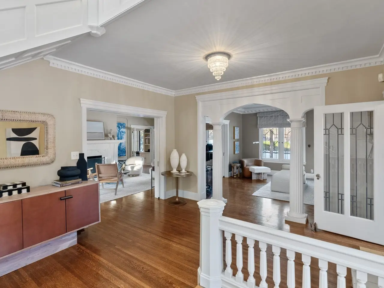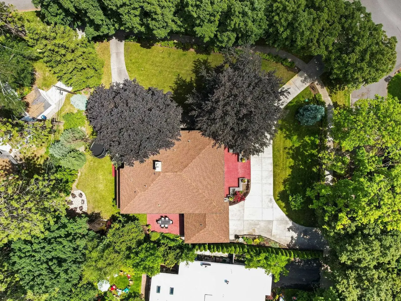 When it comes to location, this home has it, in the most coveted area of Rockwood/Hutton School. With luxury home architecture, this home is far from cookie-cutter & this home's uniqueness adds to the property value in spades. The manicured yard w/2 half circle driveways. The gorgeous entry, hand carved wood staircase, extensive molding, high ceilings & leaded glass windows. The woodwork in this house is art in of itself. Large den leads you into the living area through solid wood pocket doors. Living Room w/marble fireplace, custom drapery, wood floors & dental molding. The heart of the home, the Chef's kitchen w/high end appliances, granite & stone floors, adjoins the dining & family room. Outside is your backyard oasis, south facing paradise w/stretched patio. 2 staircases. Light & bright upstairs, w/wide halls & 5 huge bedrooms & 2 baths, Primary has en-suite bath w/walk-in closet. Basement has storage, rec room, updated laundry & bathroom with new floor, paint & light fixtures. This home is one of a kind!
