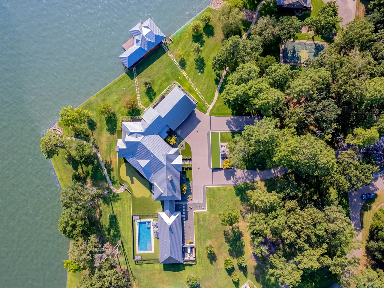THE CROWN JEWEL of LAKE CYPRESS SPRINGS in EAST TEXAS! 23, 25, 27 W Eagle Point Drive, this exclusive property on the lake, offers 360 degrees of STUNNING VIEWS! It includes 3 beautiful homes, 14995 SF air conditioned living, 9.21 acres, 1240.21 ft of water front! TEXT AGENT for 100 PLUS PICS, SF, room sizes, acres for each home! Enjoy every modern amenity, beautiful sunsets, & amazing lake access in this private, gated compound! The main house,8268 SF, was built in 2018 and the white house,3649 SF, in 2016. The brown house,3078 SF, was renovated in 2019! Perfect for gathering family & friends, entertainment abounds with a gorgeous pool & cabana, fire pit on the point, playground, sport pickleball court, putting green, gym, media room, large game room, 3 boat houses with jet ski & paddle board storage! The breathtaking grounds & properties are meticulously maintained! Panoramic views of the lake may be seen from the main house & pool cabana with an inviting living area, full kitchen & bar. The main houses gracious family room open to a great bar & an expansive kitchen & dining area, a large walk-in storage & pantry, a serene downstairs primary suite, 2 secondary bedrooms, a gym, media room, & game room, plus smart AV. The stunning open concept white house has the kitchen open to the dining & family rooms. It features a primary bedroom suite downstairs, 3 wonderful secondary bedrooms upstairs, & flexible bonus game, guest or exercise room, as well as an inviting deck to entertain expanding the full width of the property. The charming brown house was thoughtfully reimagined in 2019 with an open living room, eat in kitchen, & bar, as well as 3 spacious guest rooms. The largest guest room also doubles as a play or TV room, complete with a loft with twin bedding & desk area! An upstairs primary suite & a large back porch lined with rocking chairs complete the home! 3 car garage in the main house & 2 car garages other homes! Make this your own Private Lake Paradise today!