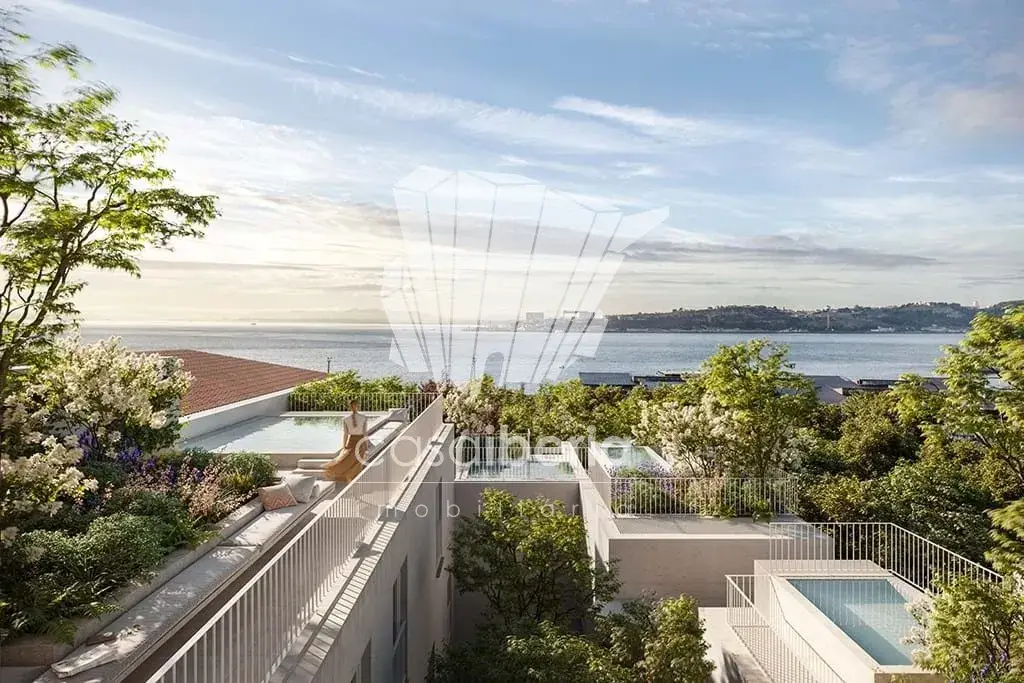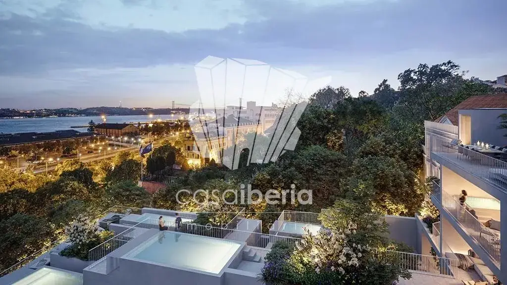 In the prestigious Santos-o-Velho neighborhood, among Embassies and old palaces, we find this fantastic development, a project designed to enjoy the view over the Tejo River, always having as main objective the quality, tranquility and comfort of the residents. Located in Estrela, next to the French Embassy, in a quiet street, but close to the cosmopolitan and traditional life of this neighborhood, this new luxury development is composed of only 8 exclusive apartments, of a contemporary design, with typologies from T1 to T5, 6 of which have large terraces with private pool and unique views of the river, as well as south-facing rooms, which gives them plenty of light. The finishings are excellent, the kitchens are fully equipped and open onto the spacious living rooms, and the bedrooms are all en-suite. Located in a privileged area of Lisbon, well served by several transports such as buses, Cascais line train and streetcars, residents will have easy access to a wide range of activities. Access to leisure and cultural activities, schools and universities, but also to all kinds of commerce and services, as well as great restaurants and bars and riverside walks is guaranteed. Art and Design characterize this neighborhood, with design stores, the art school IADE, galleries, museums, and artist collectives that make this a very dynamic and attractive place. Santos also has a lively nightlife and is within walking distance of important neighborhoods like Lapa, Alcantara, Cais do Sodre, Chiado, and Bairro Alto. Without a doubt, living in this condominium is for those who seek peace and exclusivity, close to everything!- 8 Exclusive Apartments- Luxury Development- Equipped kitchens- Located in a privileged area of Lisbon- Swimming pool Property Type: Apartment Typology: 2 Bedrooms Objective: Sell Condition: Projected Price: 990 000 € Year of Construction: 2024 Country: Portugal District: Lisboa County: Lisboa Parish: Estrela Zone: Santos
