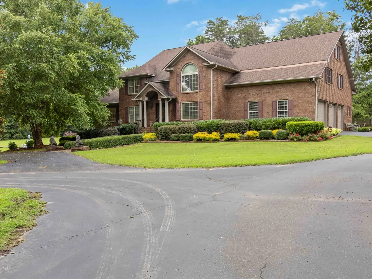 Nestled on 10+ scenic acres in desirable Clover, this stunning 3-level home offers space, comfort, and flexibility. The main-level primary suite boasts a spa-like bath with a soaking tub, dual vanities, and 2 walk-in closets. The gourmet kitchen features an island, breakfast bar, ample cabinetry, and a bay-window breakfast area. A two-story great room with exposed beams and a brick fireplace exudes charm, complemented by a formal dining room and office/study. Upstairs offers 5 bedrooms and 3 full baths. The fully finished walk-out basement includes a full kitchen, living/recreation area with brick fireplace, bedroom, and storage - ideal for guests or multi-gen living. Enjoy a private outdoor oasis with a large deck, in-ground pool, and spacious patio area around the pool. There are also attached and detached 3-car garages (shop has a half bath). No HOA, Clover schools, and close to Lake Wylie - true Carolina living at its finest!