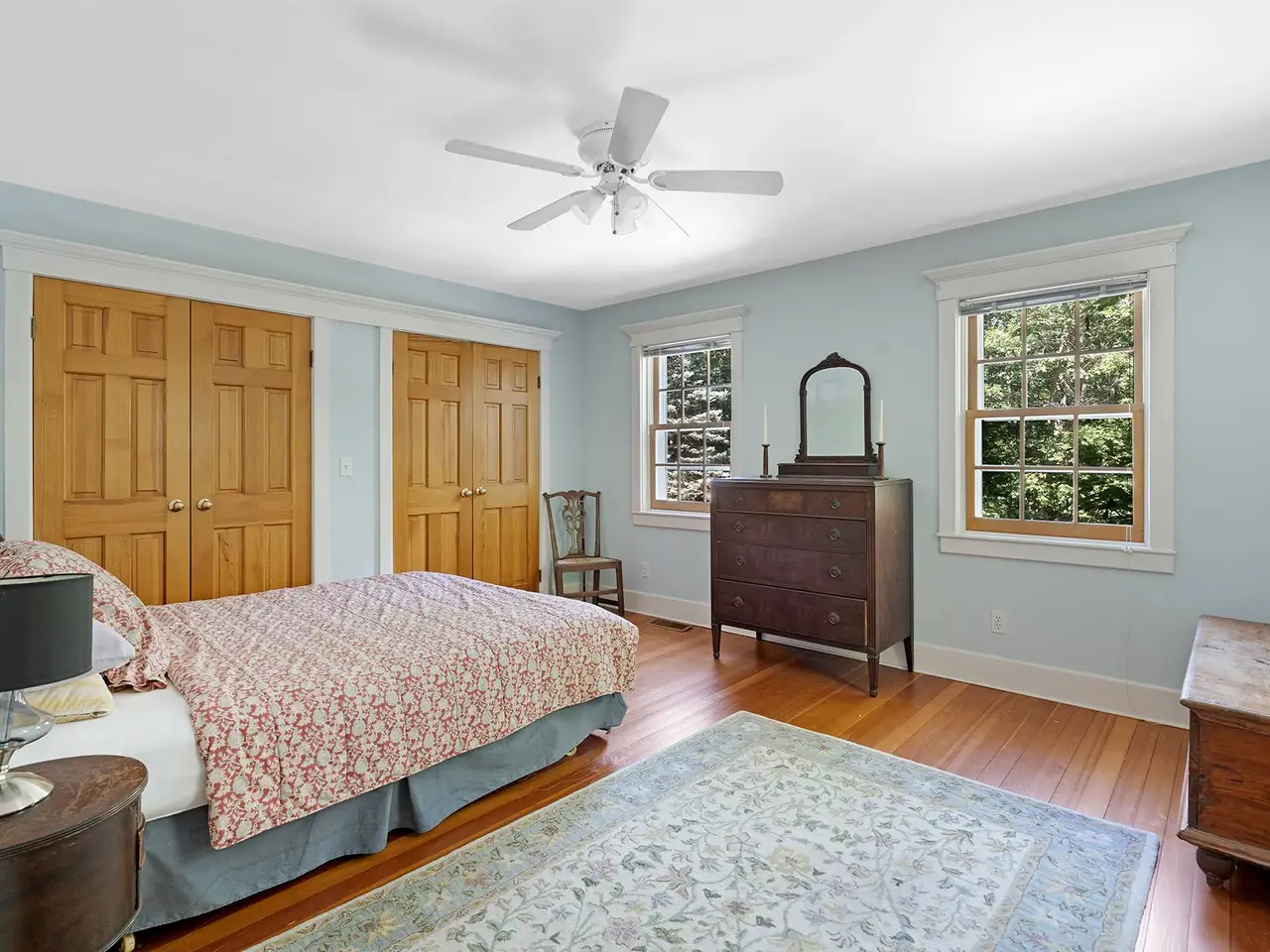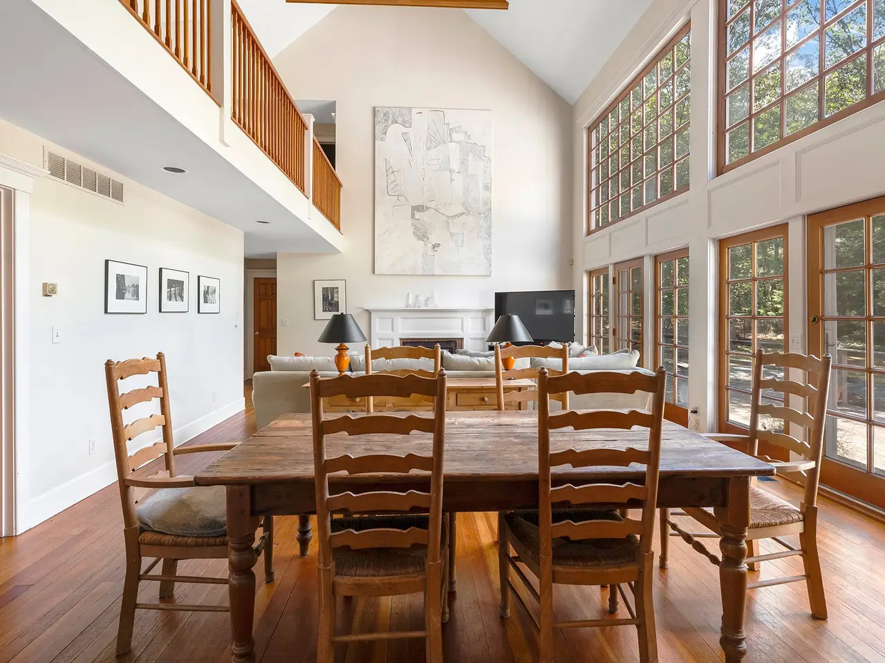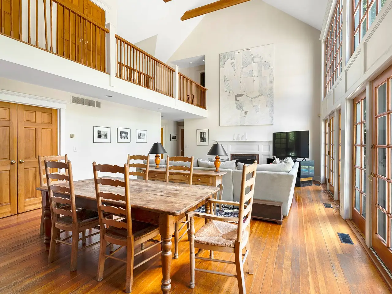 An Exceptional Opportunity in East Hampton's Northwest Woods Set on 3 private, parklike acres in the sought-after Grassy Hollow Estates, this stately post-modern offers over 3,000 square feet of soaring architecture, abundant light, and gracious living space-all just moments from Sammy's Beach, Cedar Point Park, East Hampton Village, and world-class ocean beaches. The dramatic double-height entry foyer makes a striking first impression, leading to a sun-filled great room with a grand fireplace, walls of glass, and floor-to-ceiling doors that open to the expansive backyard and 20' x 40' in-ground pool. Designed with entertaining in mind, the open-concept kitchen overlooks the formal dining and living areas, allowing for seamless flow indoors and out. The spacious main-level primary suite includes a newly renovated marble bath with soaking tub and shower, a large walk-in closet, a private boudoir with vanity, and the second of the home's three fireplaces. Just off the great room, a charming windowed den with the third fireplace provides a quiet retreat or ideal office space. A full bath and powder room complete the main level. Upstairs, two oversized guest bedrooms offer walk-in closets and share a full bathroom (ensuite to one), while a bonus room above the garage provides flexible space for a gym, home office, or additional guest accommodations. A 1,754+/- sq. ft. lower level offers untapped potential-ideal for finishing and expanding the home's living area to nearly 4,700+/- square feet. With a lot of this size and privacy, there's ample room to add your own tennis and pickleball courts-an increasingly rare feature in today's East Hampton market. 2 Old Hollow Lane is being offered as is, presenting an incredible opportunity to update or reimagine a home with excellent bones, dramatic volume, and true architectural presence-all on a generous lot in one of East Hampton's most desirable neighborhoods. This is a must-see for buyers seeking privacy, scale, and upside potential in the heart of the Northwest Woods. Listing ID: 919708