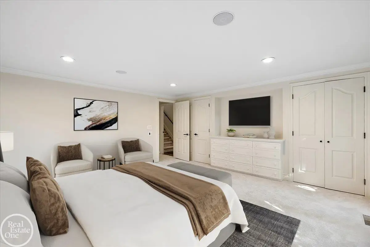 Prime location for this updated architectural home in Grosse Pointe. Very private lot with built-in swimming pool and private patio areas with free standing sauna. This one-of-a-kind home has been recently updated over past couple years. Awesome gourmet kitchen with vaulted ceilings, fireplace and open staircase leading up to large bonus room. Large 1st floor primary suite with old world luxury bath, built in cabinetry, door wall leading to private backyard. 2-large bedrooms upstairs with private bathrooms; Wide open great room overlooking private yard. Finished basement has open entertaining area, 4th full bath, 2nd laundry room. Gated entrance with gas light posts welcome you to a brick paver driveway with oversized 2.5-car garage with attached storage room. Extensive landscaping. Immediate possession!