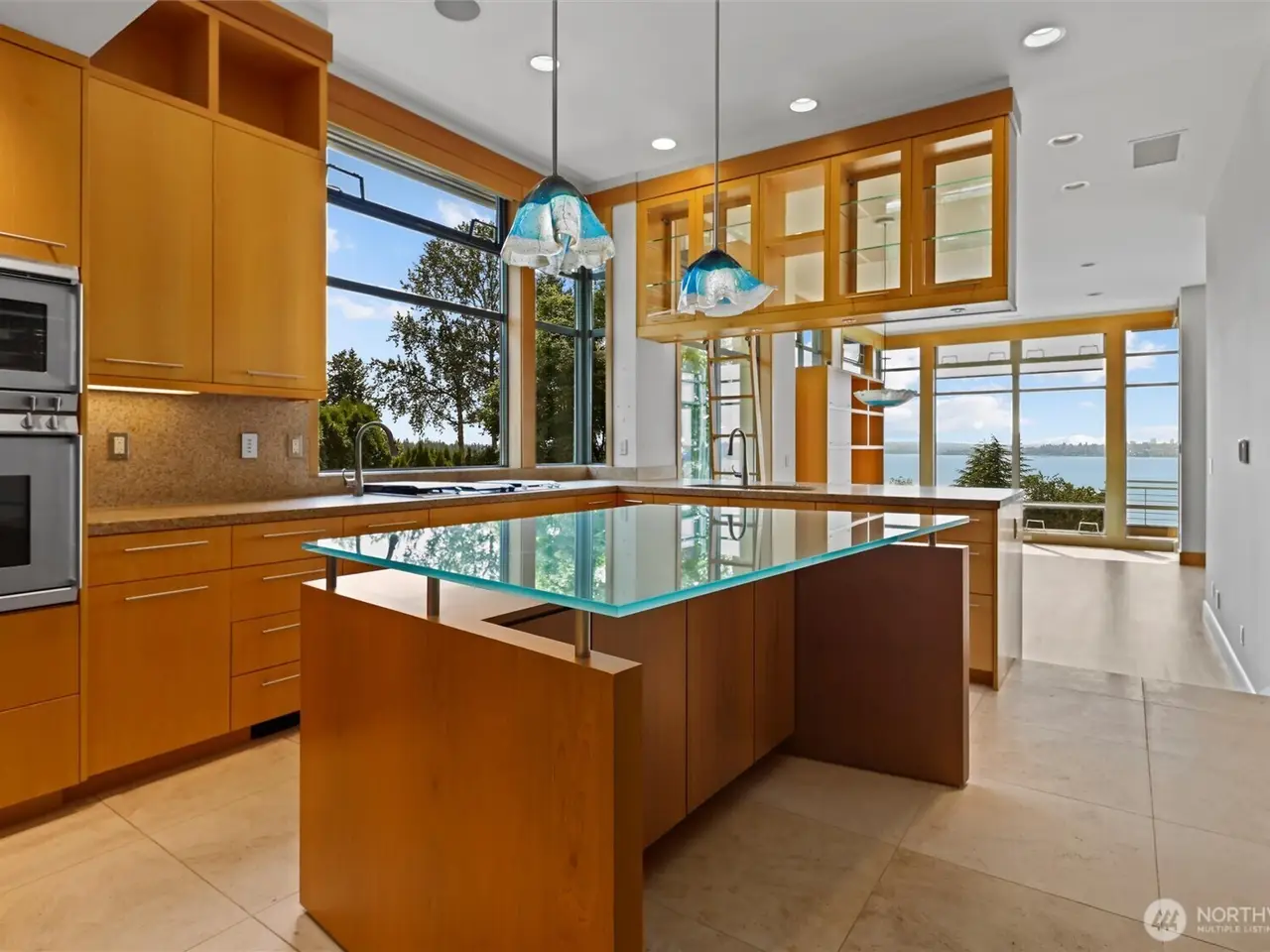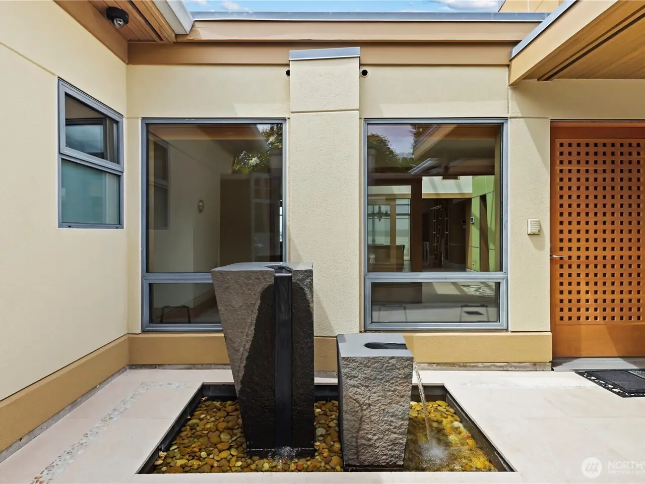 This luxury home boasts a rare bluff setting w/ one of Kirkland’s best views. Designed by Robert Reed, it blends modern PNW architecture w/ Mexican designs inspired by Luis Barragán & Ricardo Legorreta. Built by Bender Chaffey, it features 36” thick angled stucco/metal walls. The 6 BD, 5.5 BA, 5,500 SF home includes an entry w/ a fountain, indoor courtyard w/ fireplace, real stucco, natural stones, & doors like modern Mexican homes. It offers high ceilings, large windows, built-ins, multiple courtyards, a living room w/ fireplace, formal dining, nook, exquisite kitchen w/ views, deck, primary bedroom w/ spa-like bath, 2 offices, rec room w/ kitchenette opening to patio, study/library, craft room, beautiful gardens, & a 3-car garage.