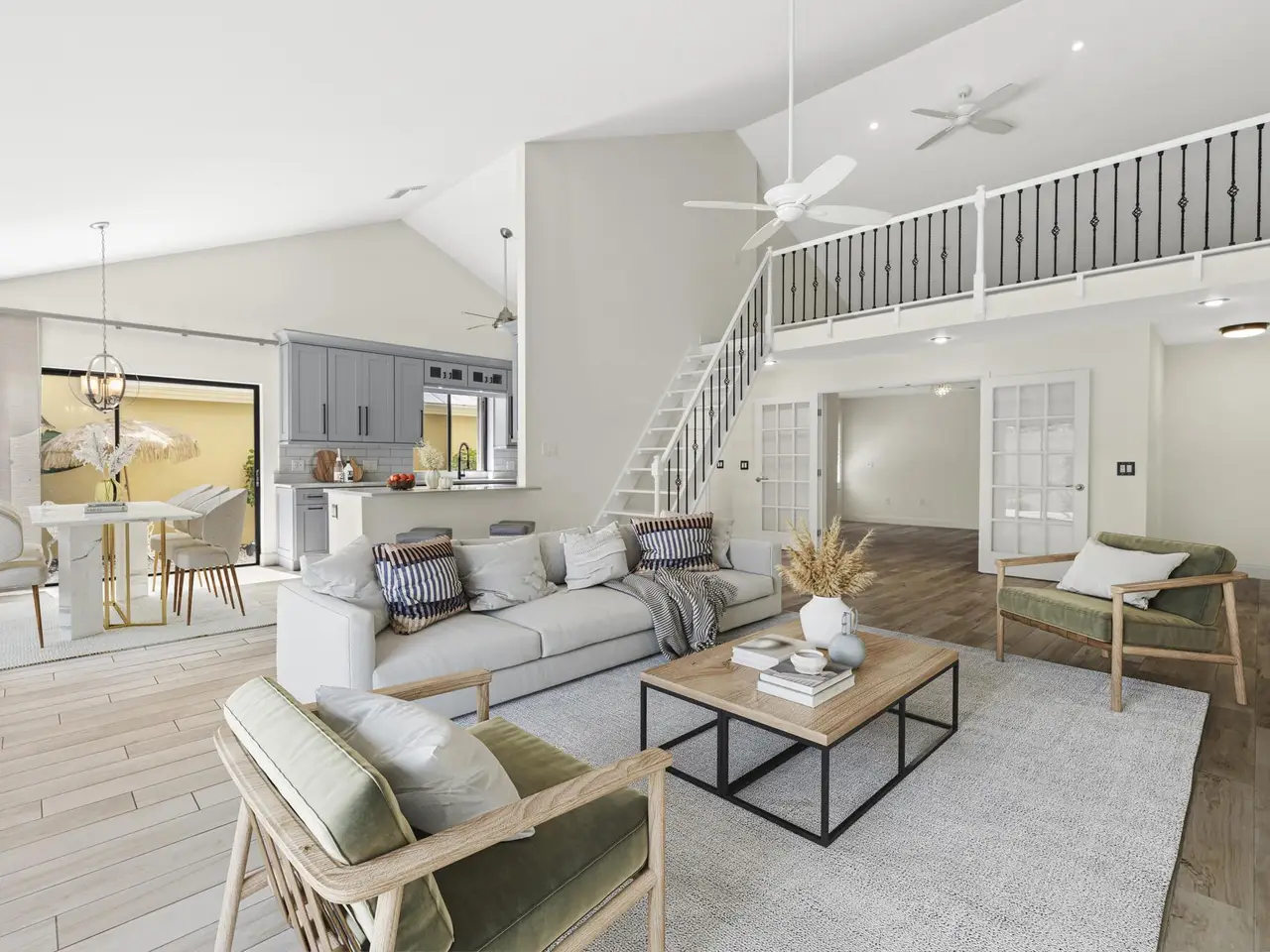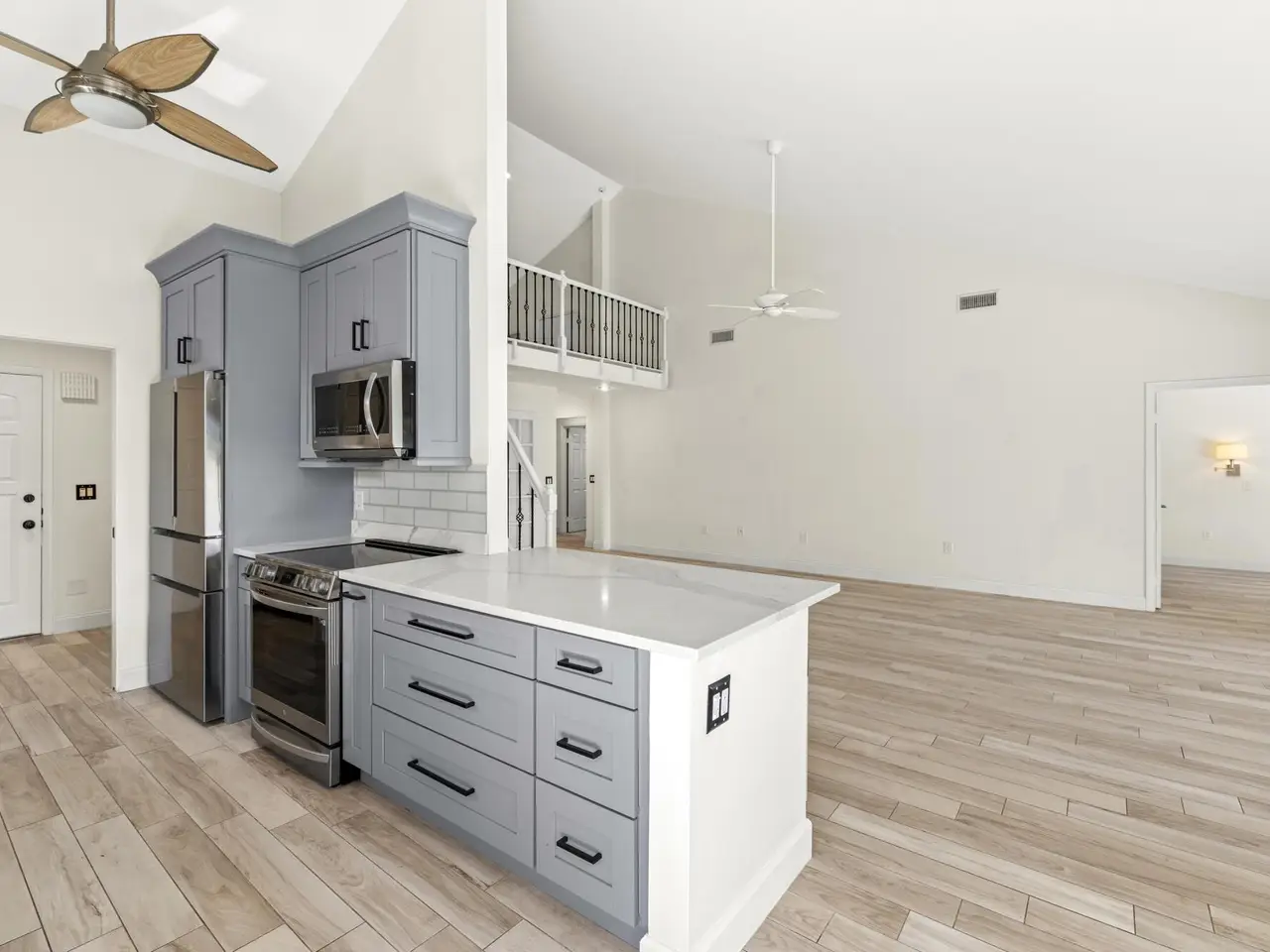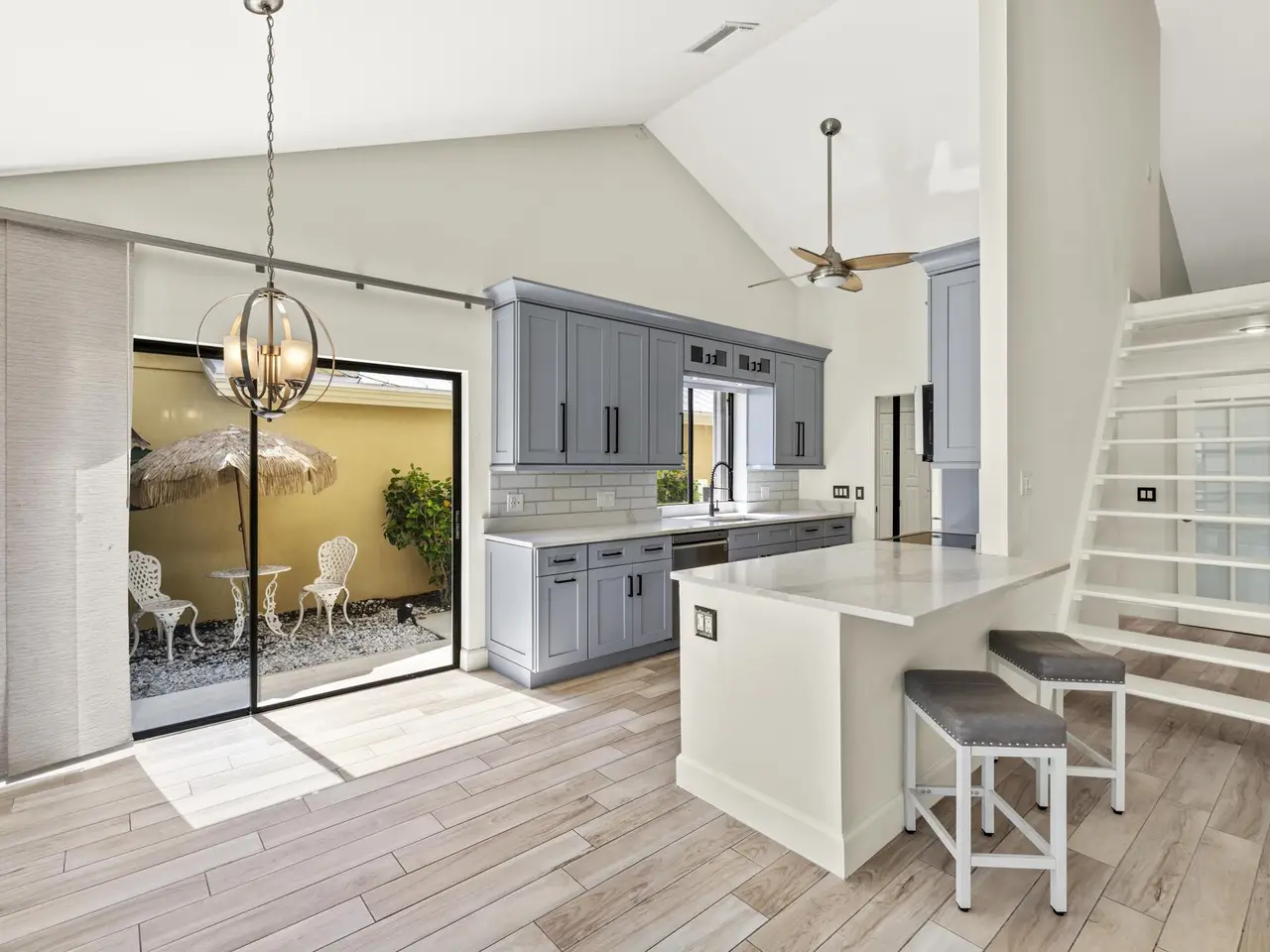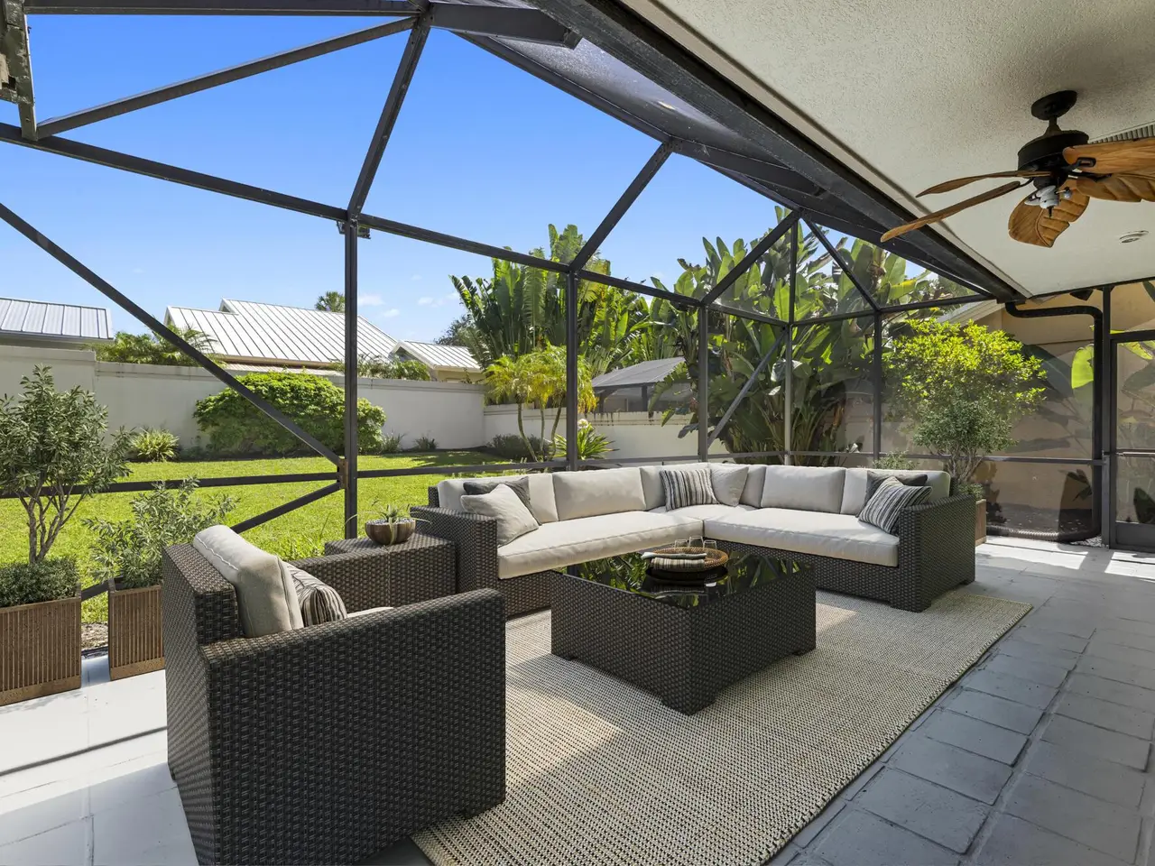 Move in ready! Model coastal contemporary renovated charming 3 bedroom, 2 bath plus loft in desirable community of Ridge at the Bluffs. The Bluffs is a quaint seaside community. Open kitchen concept w/quartz countertops, sleek cabinetry, breakfast bar, stainless steel appliances. Volume vaulted ceilings. Wine Bar. Porcelain tile light wood-look flooring throughout. Luxurious brand new baths! Hunter Douglas window treatments. Desirable Eastern exposure. One of the largest private rear yards in the community perfect for family fun and entertaining. Screened in patio. Close to upscale community amenities including tennis and pickleball courts, basketball, resort-style heated pool and spa, playground and bike trails. Top A rated Jupiter school district. Minutes to fine dining, shopping, golf.