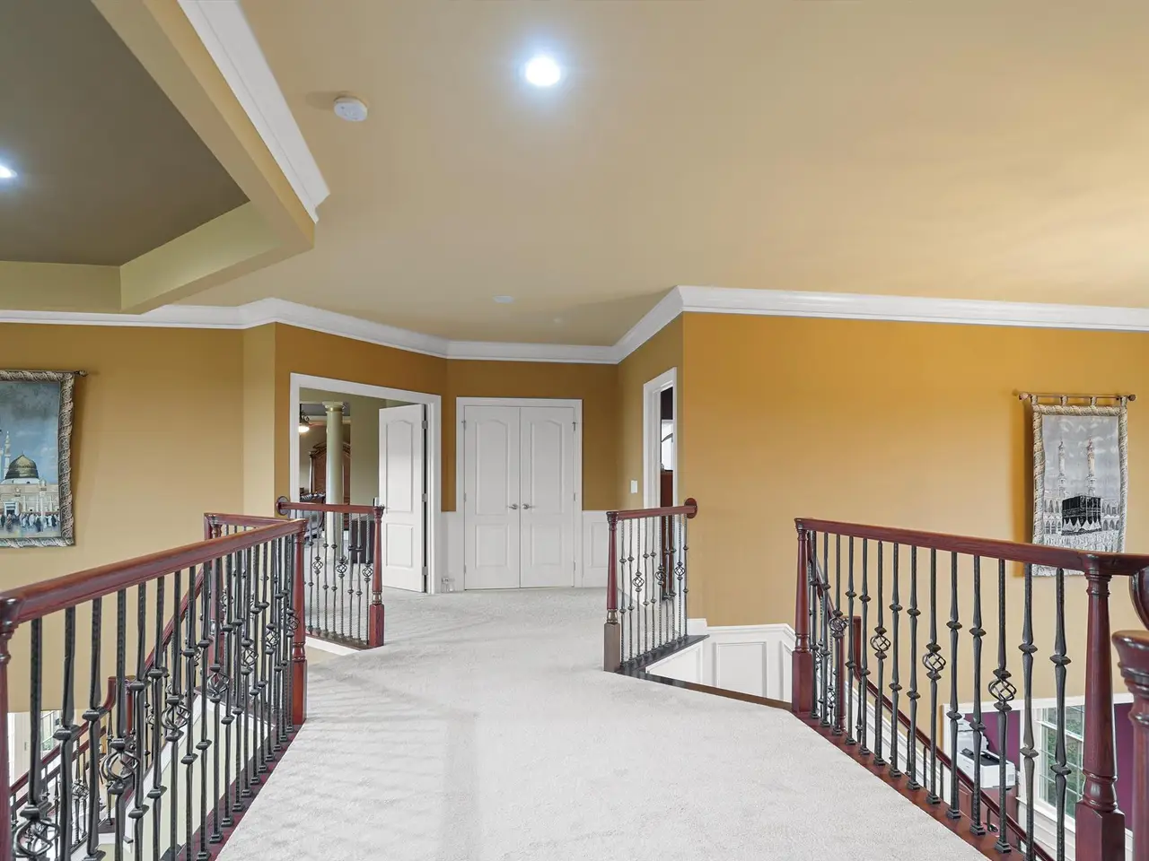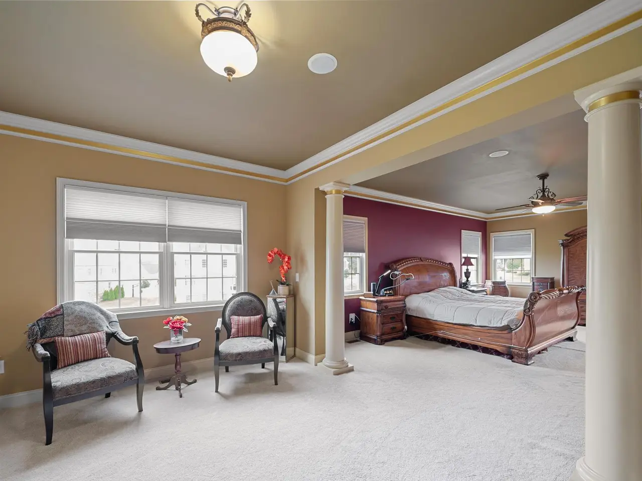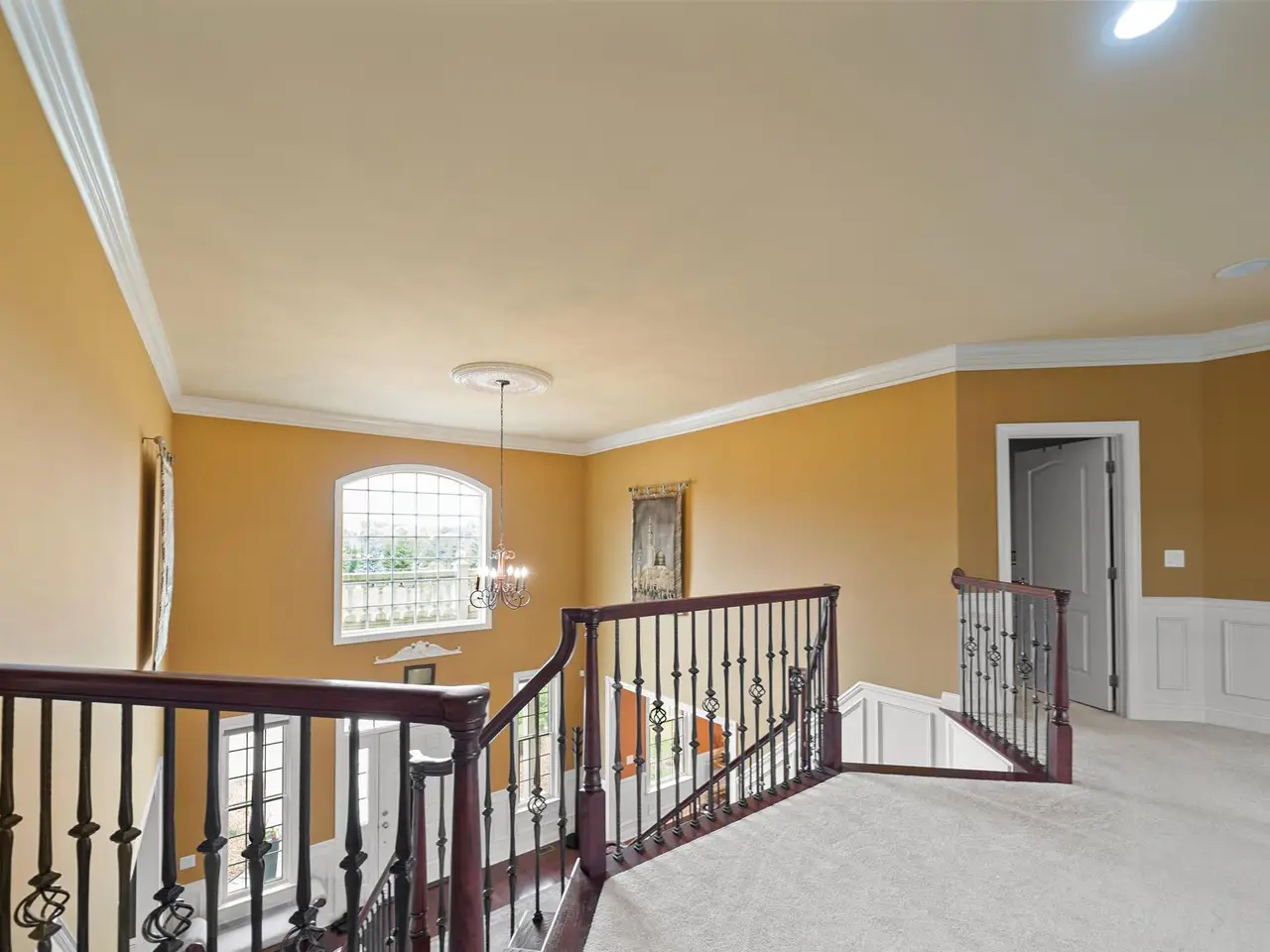 Experience one of Steeplechase’s crown jewels a masterpiece of timeless elegance and modern luxury. This extraordinary 5-bedroom, 5-bathroom estate sits proudly on one of the community’s largest lots, commanding attention with its striking brick-and-stone facade, lush professional landscaping, and undeniable curb appeal. Step through custom double doors into a dramatic two-story foyer with a sweeping staircase adorned with iron spindles, setting the stage for grandeur. The main level is thoughtfully designed with rich hardwood floors, a formal dining room with tray ceiling, and a versatile study with French doors perfect for a home office or private guest suite. The great room is a showstopper, featuring soaring ceilings, sun-soaked windows, and a floor-to-ceiling stone fireplace. Entertain in style with a chef’s kitchen boasting custom cabinetry, granite countertops, a gas cooktop with a custom hood, stainless steel appliances, and a generous island. Additional highlights include a formal living room, bright library, and an expansive conservatory that’s ideal for hosting gatherings. Practical luxury abounds with 10-foot ceilings, a spacious mudroom, and a well-appointed laundry room. Upstairs, a bridge hallway overlooks the great room and leads to a serene owner’s suite complete with a private sitting area, spa-inspired bath with soaking tub, dual granite vanities, and a massive walk-in closet. Each additional bedroom features its own private bath and sitting area for ultimate comfort and privacy. The 3,300 sq. ft. walkout lower level with 9-foot ceilings offers endless possibilities for customization. Outside, enjoy tranquil views from the Trex deck while taking in the beauty of the meticulously landscaped backyard. This is more than a home it’s a rare opportunity to own one of Steeplechase’s finest estates, where timeless architecture meets modern sophistication in one of the area’s most coveted communities.