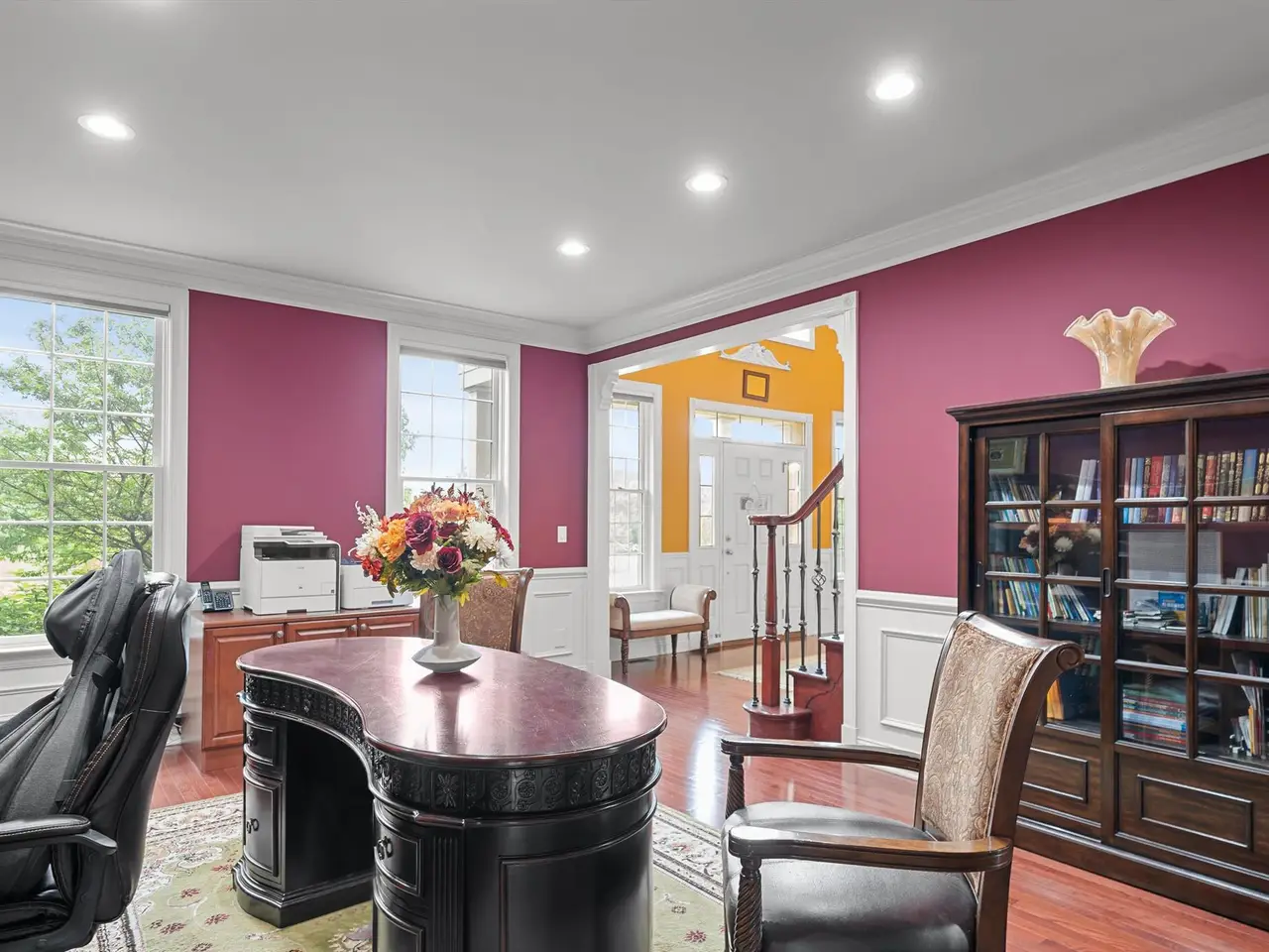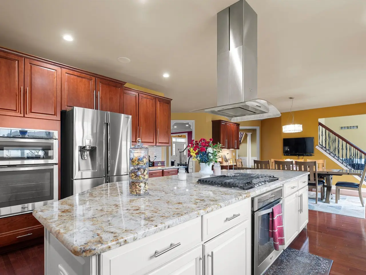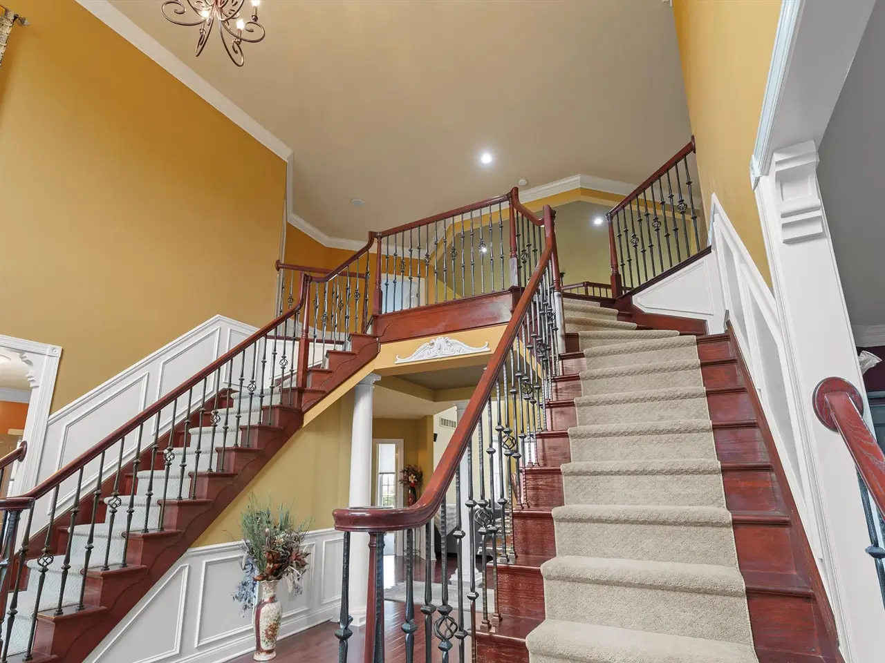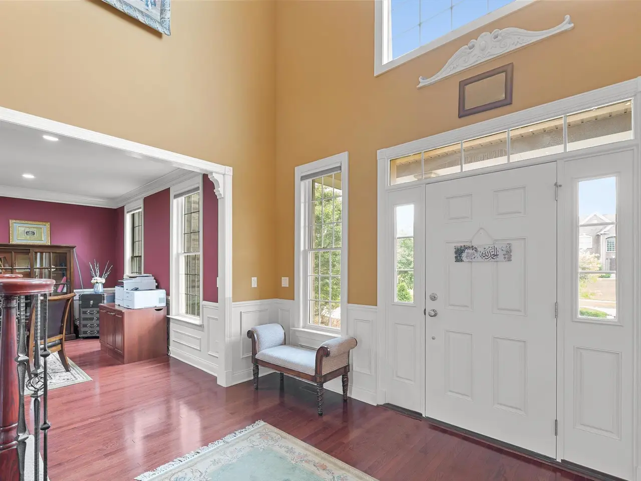 Experience one of Steeplechase’s crown jewels a masterpiece of timeless elegance and modern luxury. This extraordinary 5-bedroom, 5-bathroom estate sits proudly on one of the community’s largest lots, commanding attention with its striking brick-and-stone facade, lush professional landscaping, and undeniable curb appeal. Step through custom double doors into a dramatic two-story foyer with a sweeping staircase adorned with iron spindles, setting the stage for grandeur. The main level is thoughtfully designed with rich hardwood floors, a formal dining room with tray ceiling, and a versatile study with French doors perfect for a home office or private guest suite. The great room is a showstopper, featuring soaring ceilings, sun-soaked windows, and a floor-to-ceiling stone fireplace. Entertain in style with a chef’s kitchen boasting custom cabinetry, granite countertops, a gas cooktop with a custom hood, stainless steel appliances, and a generous island. Additional highlights include a formal living room, bright library, and an expansive conservatory that’s ideal for hosting gatherings. Practical luxury abounds with 10-foot ceilings, a spacious mudroom, and a well-appointed laundry room. Upstairs, a bridge hallway overlooks the great room and leads to a serene owner’s suite complete with a private sitting area, spa-inspired bath with soaking tub, dual granite vanities, and a massive walk-in closet. Each additional bedroom features its own private bath and sitting area for ultimate comfort and privacy. The 3,300 sq. ft. walkout lower level with 9-foot ceilings offers endless possibilities for customization. Outside, enjoy tranquil views from the Trex deck while taking in the beauty of the meticulously landscaped backyard. This is more than a home it’s a rare opportunity to own one of Steeplechase’s finest estates, where timeless architecture meets modern sophistication in one of the area’s most coveted communities.