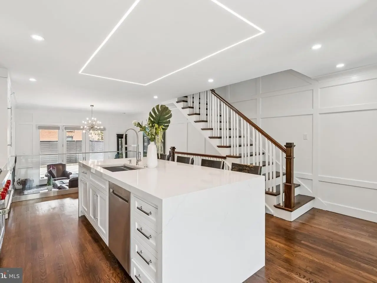 Stunning Fully Renovated Townhouse with Panoramic Rooftop Views This colonial-style townhouse has been completely reimagined through a meticulous two-year, full stud-out renovation, blending timeless architecture with today's modern luxury. From the herringbone floors and silver-leaf ceiling in the entry to the breathtaking 500 sq. ft. rooftop deck, no detail has been overlooked. The main level showcases a thoughtfully expanded kitchen, featuring a quartz waterfall island, custom cabinetry with integrated Sub-Zero panels, hidden outlets, and a Wolf range. The open floor plan continues into the living room with custom paneled walls, a gas fireplace framed by a seamless 5x12 ft Calcutta ultra quartz slab, and bespoke seating with embossed leather accents. French doors lead to a blue stone patio, perfect for indoor-outdoor living. The lower level offers a private guest suite with egress window, full bath, custom closet, and laundry. Upstairs, the primary bedroom suite features a spa-like marble bath with heated floors, floating European fixtures, and mirrored custom closets. An additional renovated full bath and bedroom complete the third floor. The top level is an entertainer's dream with a built-in bar, half bath, washer/dryer, and expanded waterfront views through oversized custom Pella windows. French doors open to a Brazilian Ipe hardwood landing with outdoor sauna, leading up to the reconceptualized roof deck. The roof deck provides unobstructed 365-degree views of the Potomac River, Old Town Alexandria, Woodrow Wilson Bridge, and even the U.S. Capitol. Additional highlights include a garage and additional deeded parking space, all new 36x80 Pella windows and doors, a modern glass-paneled garage door, new HVAC system, and custom wire fencing. Every inch of this home has been crafted to create a one-of-a-kind residence that combines sophistication, comfort, and unparalleled views.
